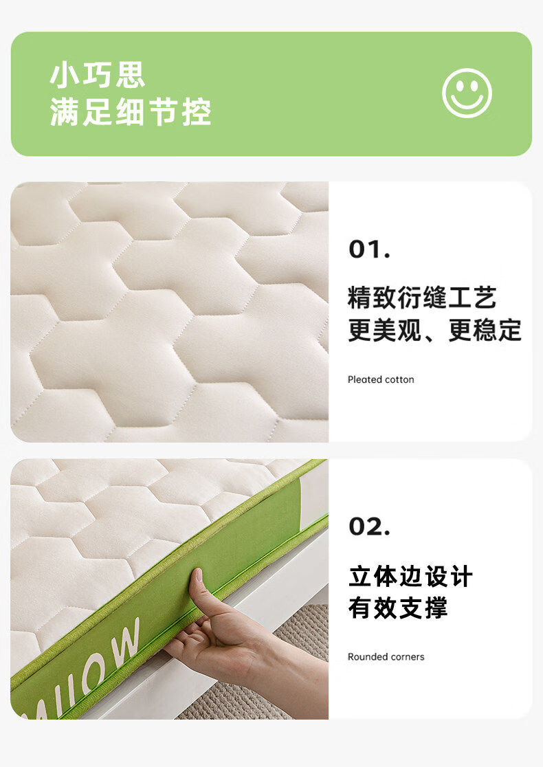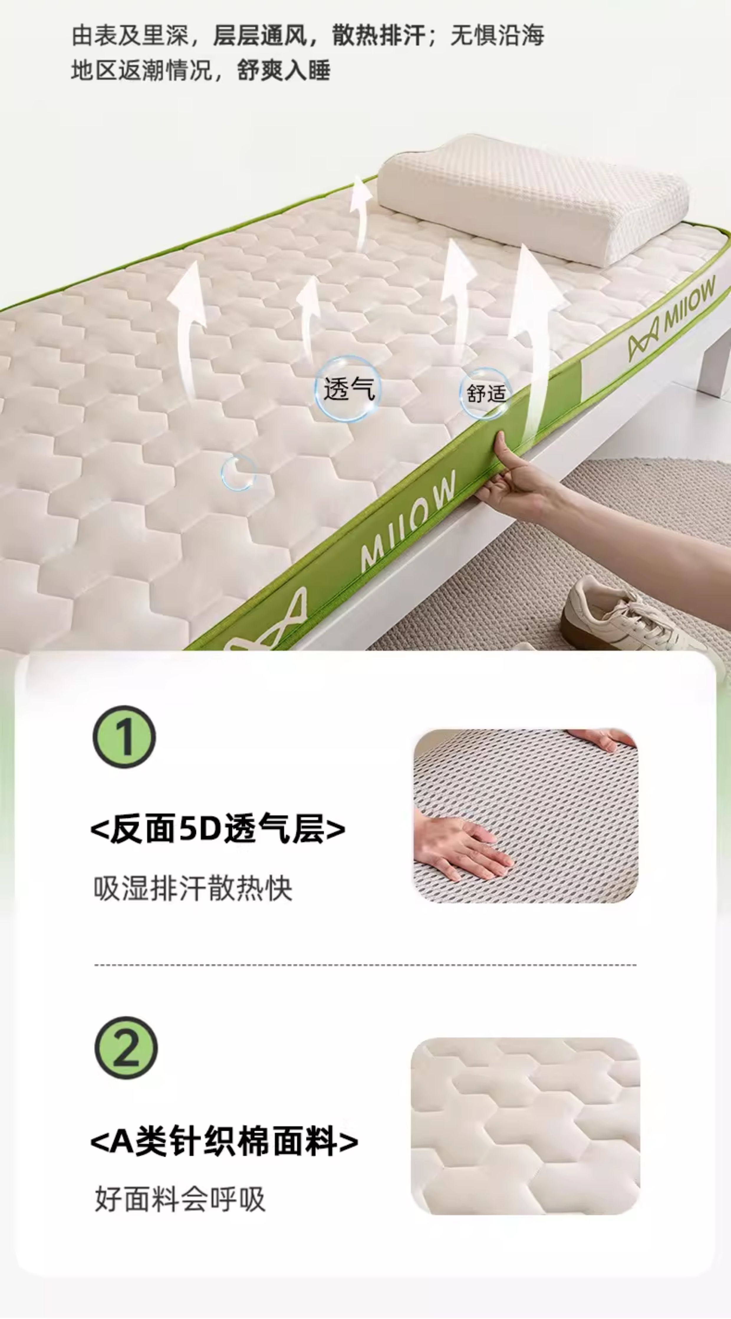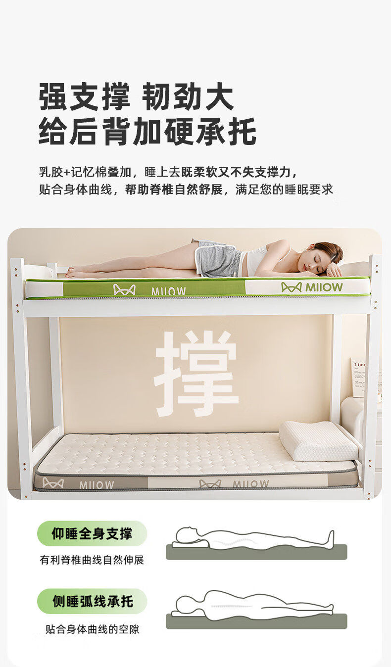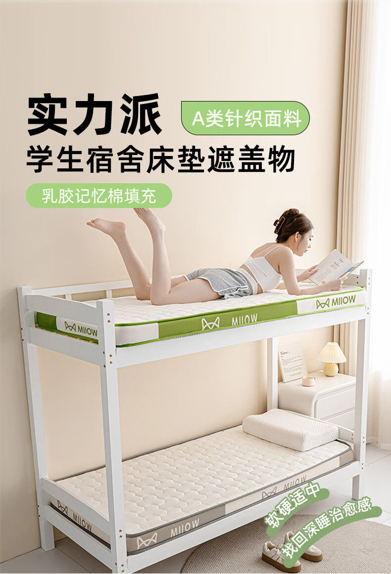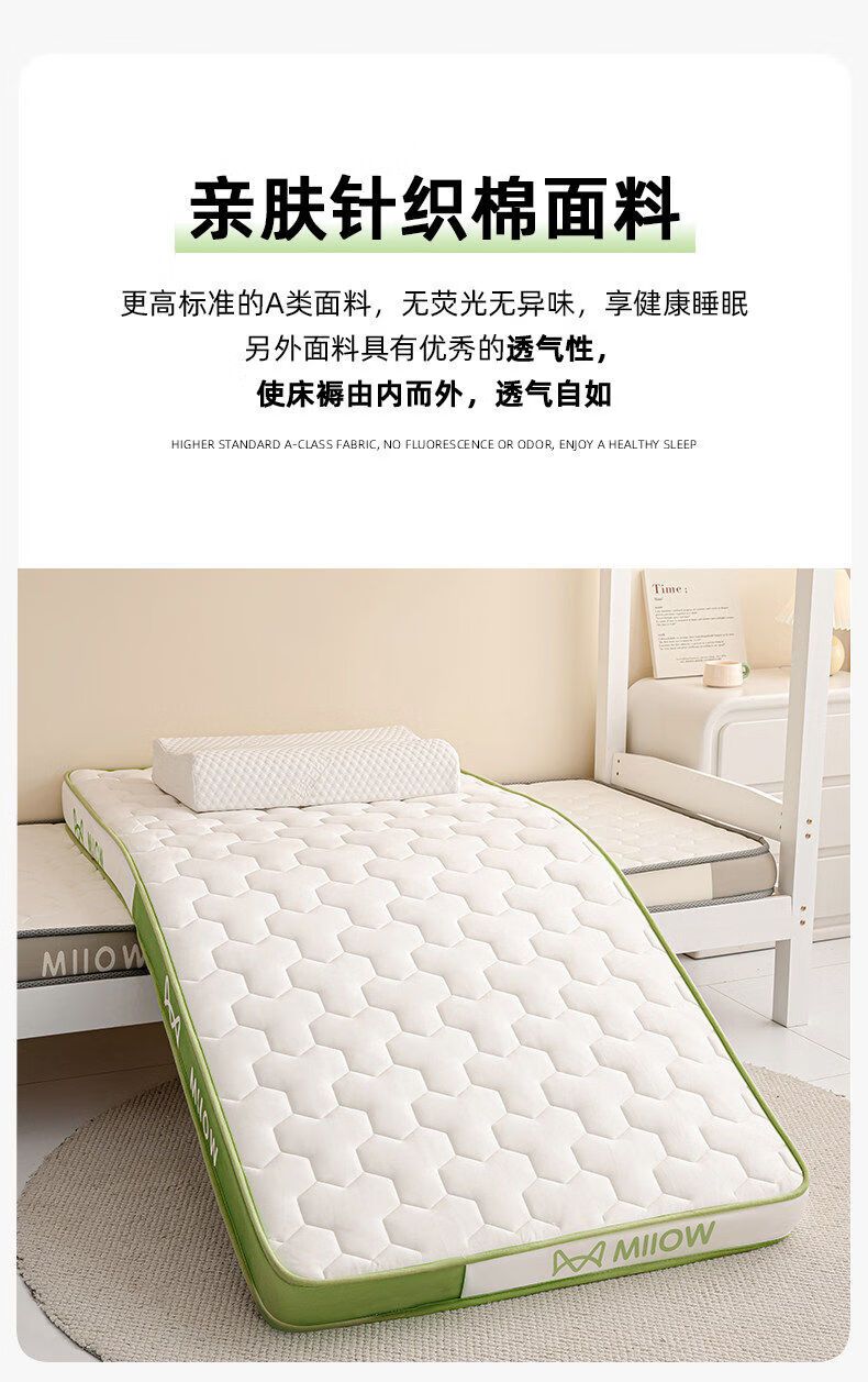 猫人(MiiOW)学生宿舍乳胶床垫遮盖物0.9米x1.9米床褥子单人记忆棉软垫子铺床 MIIOW清新绿【泰国乳胶+零压记忆棉】厚约6cm 90x190cm-学生床【抗菌抑菌 零压深睡】