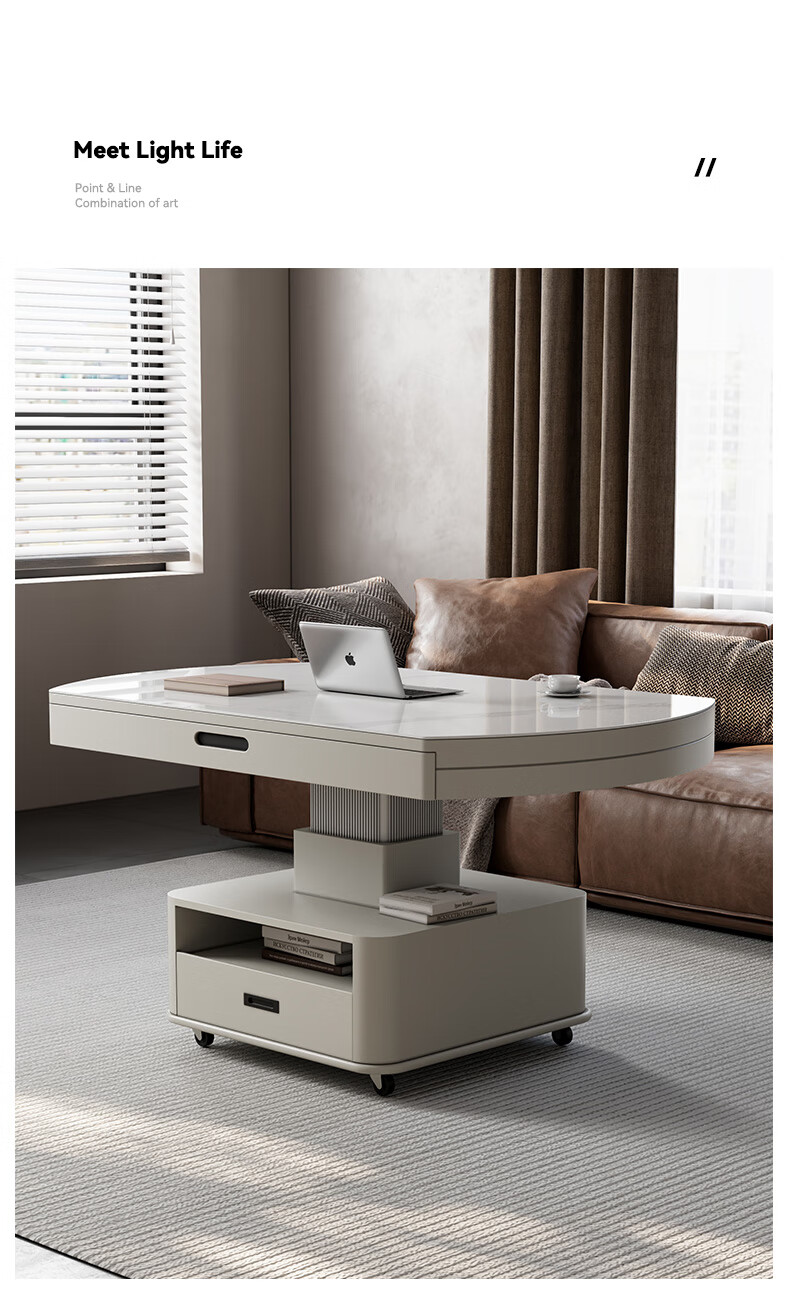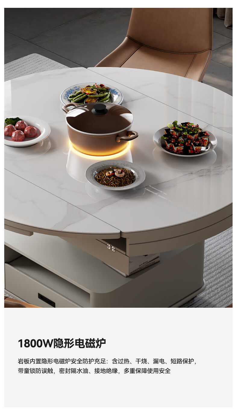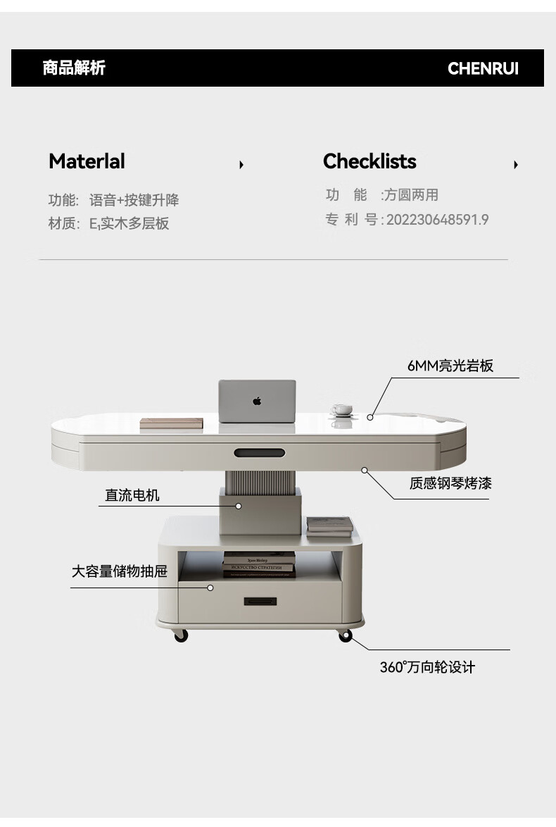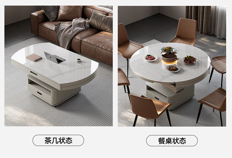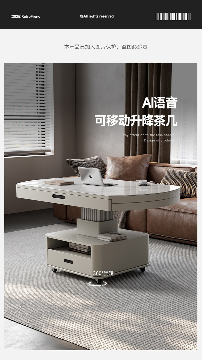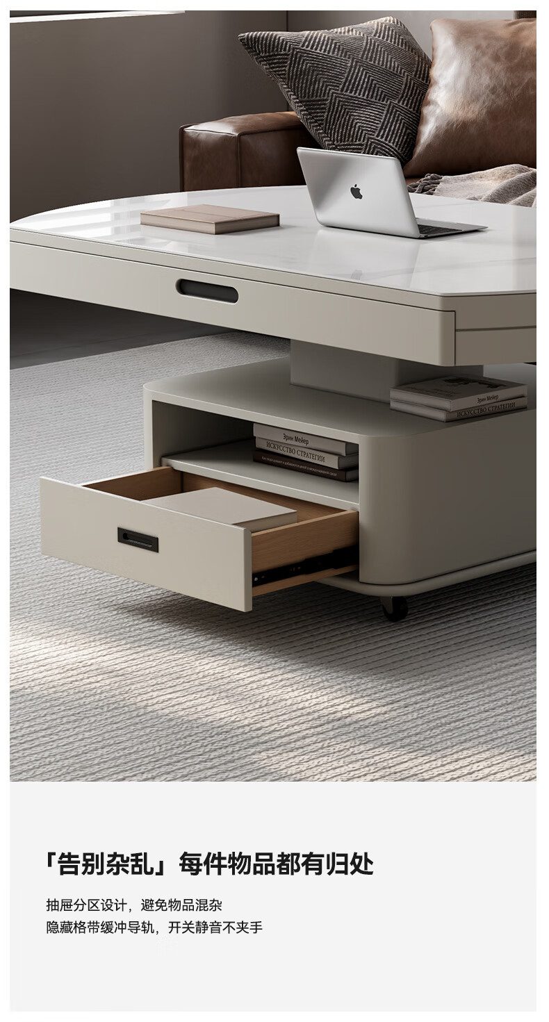 梵木领秀轻奢智能升降茶几餐桌两用客厅小户型现代多功能岩板折叠茶几c828 【实木层板】语音+按键升降 1.3米