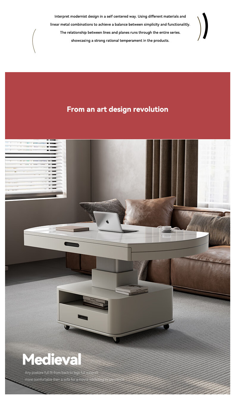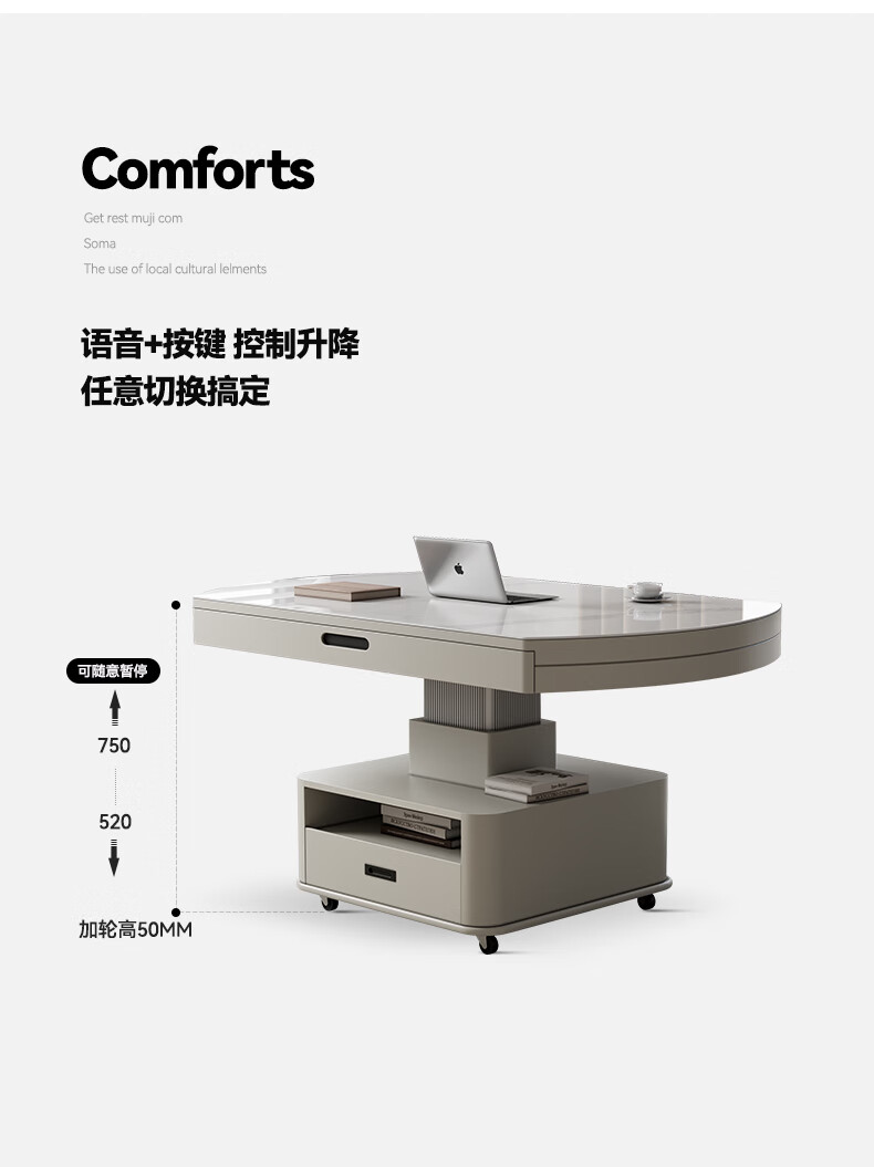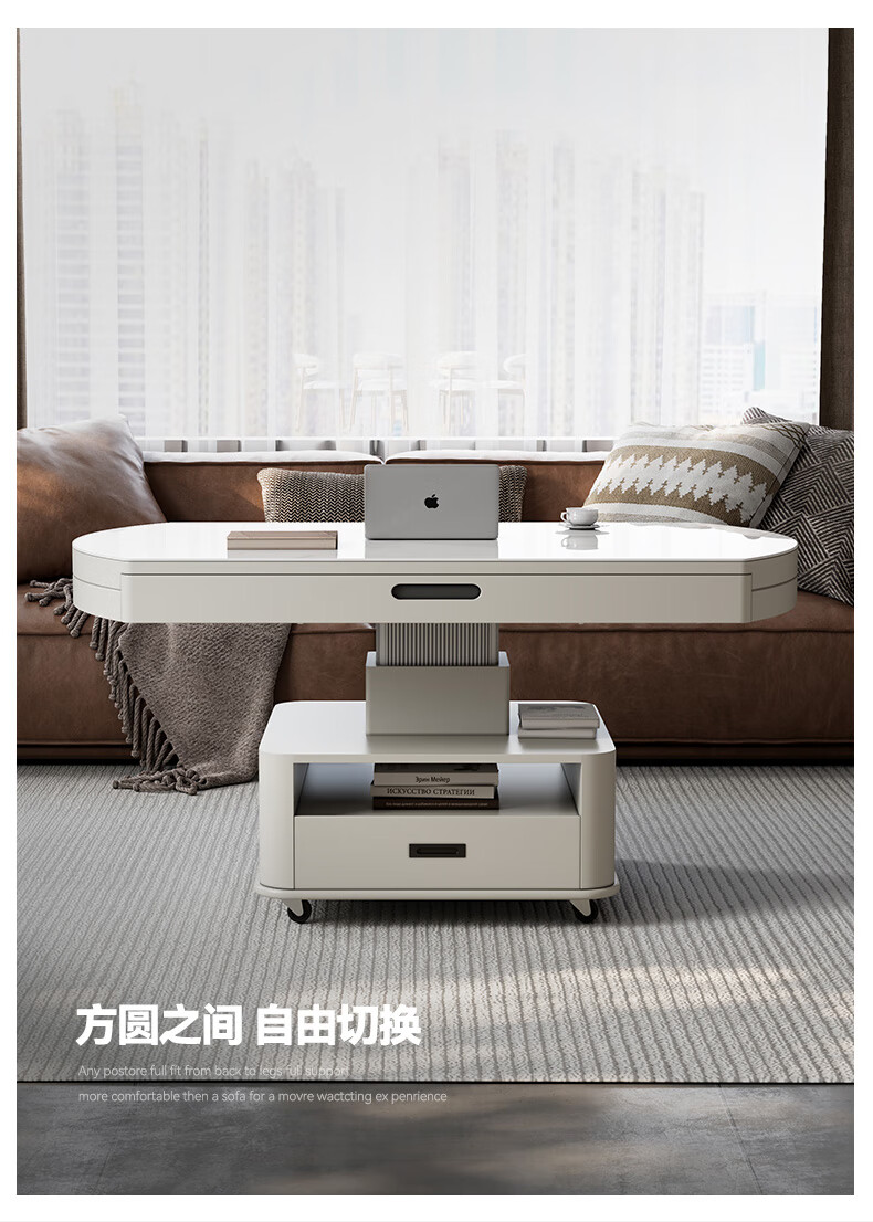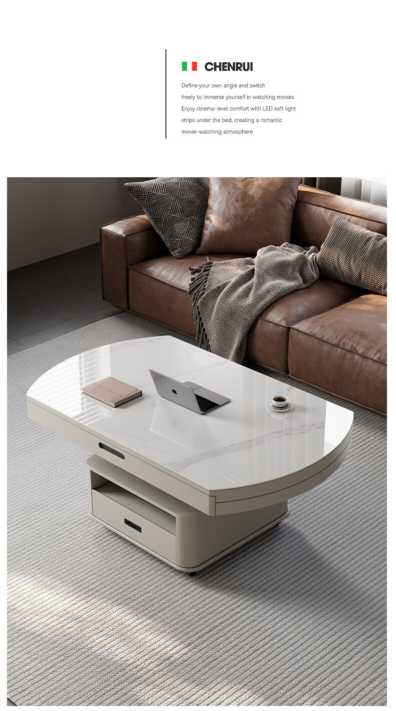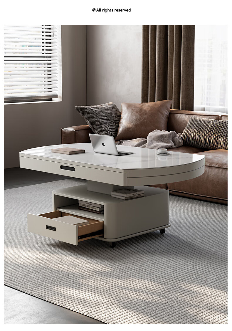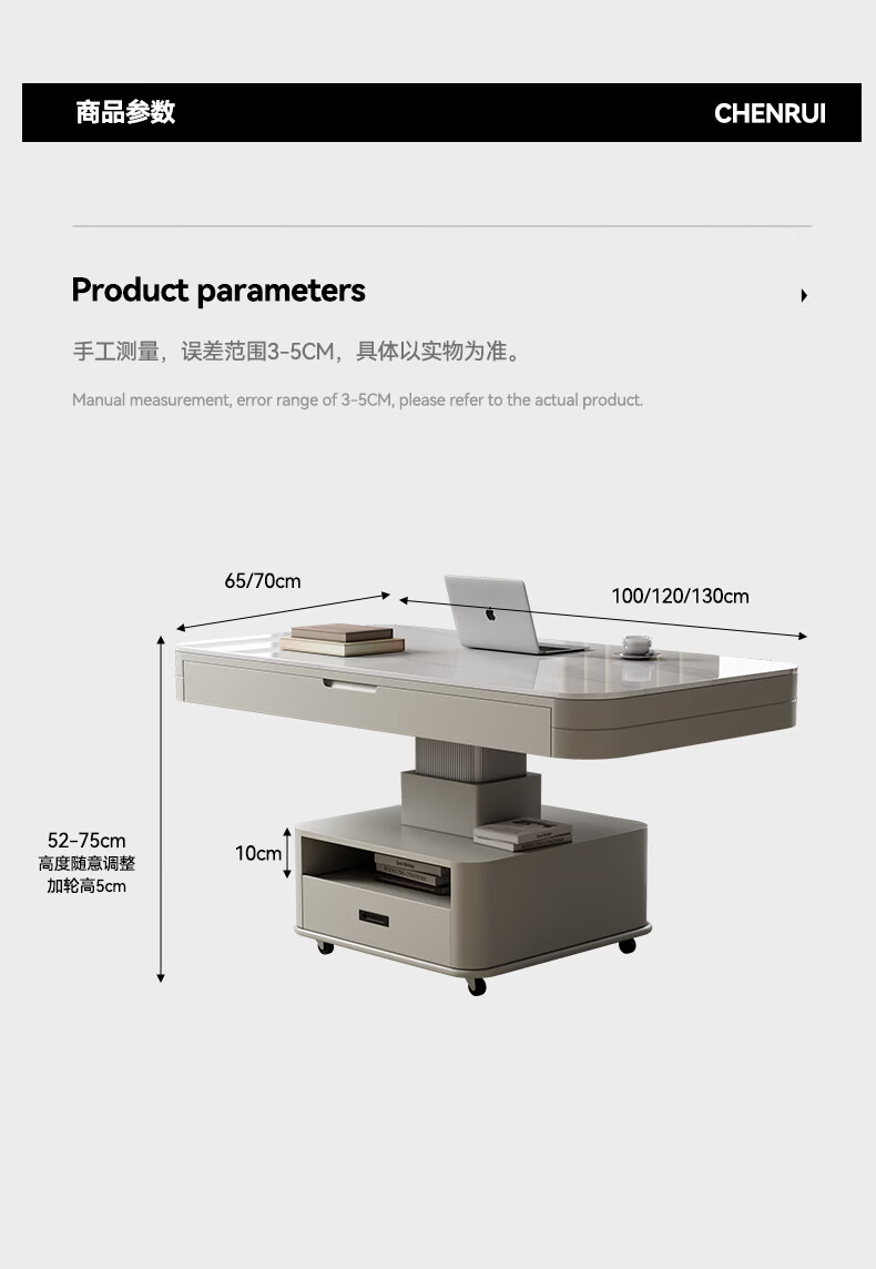 梵木领秀轻奢智能升降茶几餐桌两用客厅小户型现代多功能岩板折叠茶几c828 【实木层板】语音+按键升降 1.3米