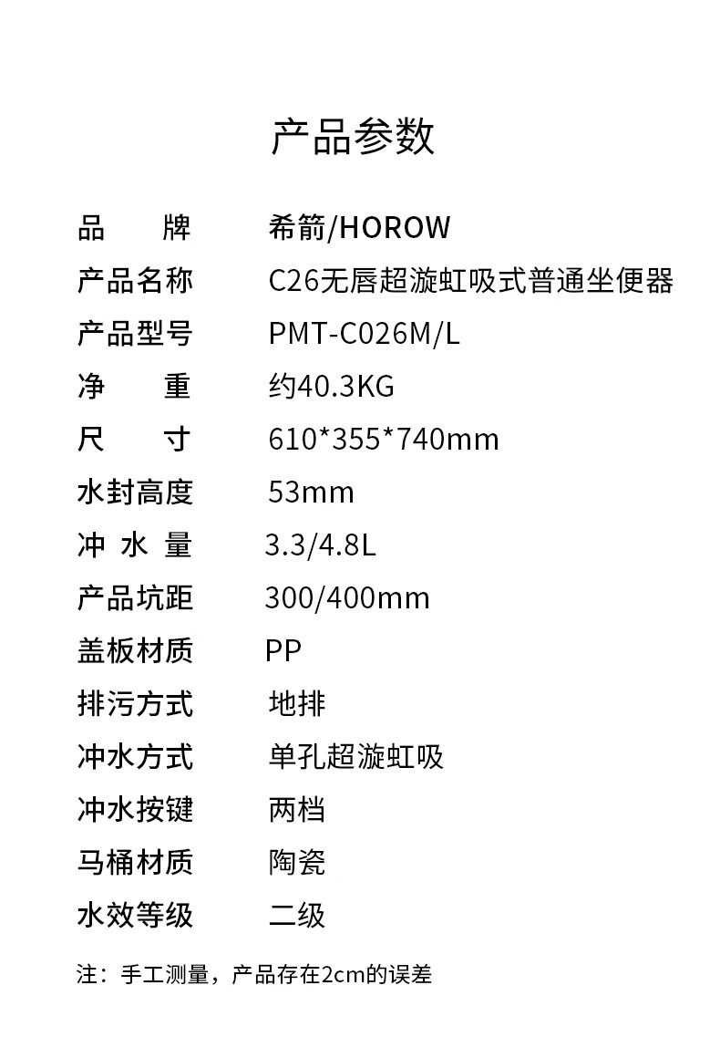 HOROWC26灵巧普通坐便器 C26 305/300mm