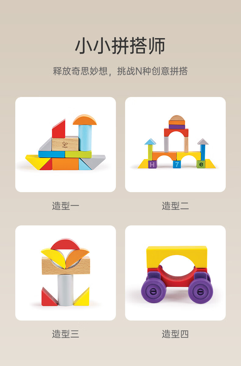 Hape(德国)婴幼儿童拼搭木质积木玩具40粒彩虹积木宝宝生日礼物E8321