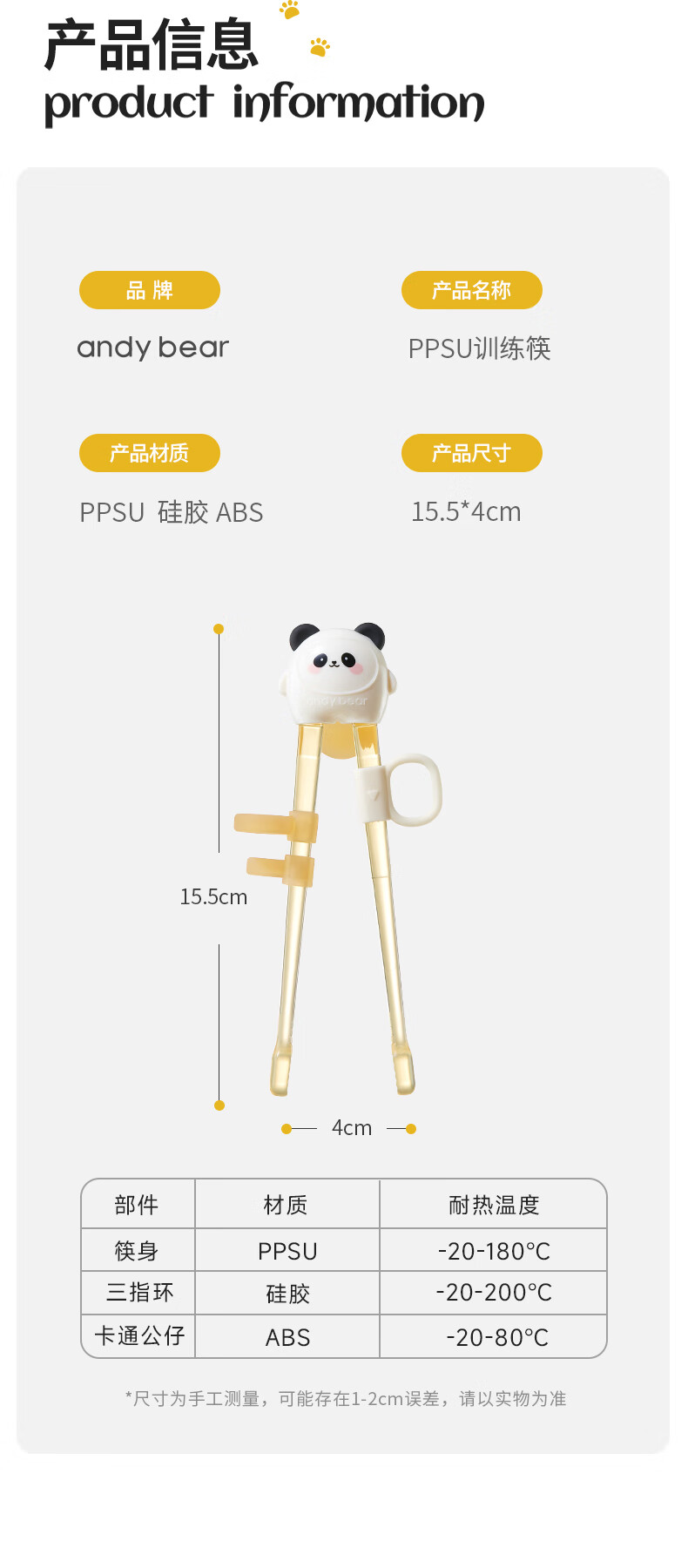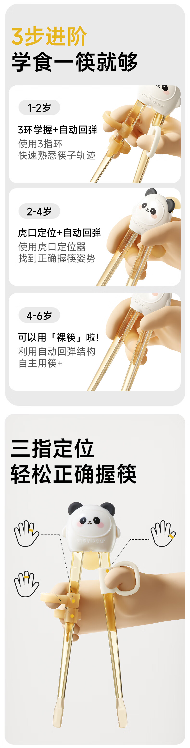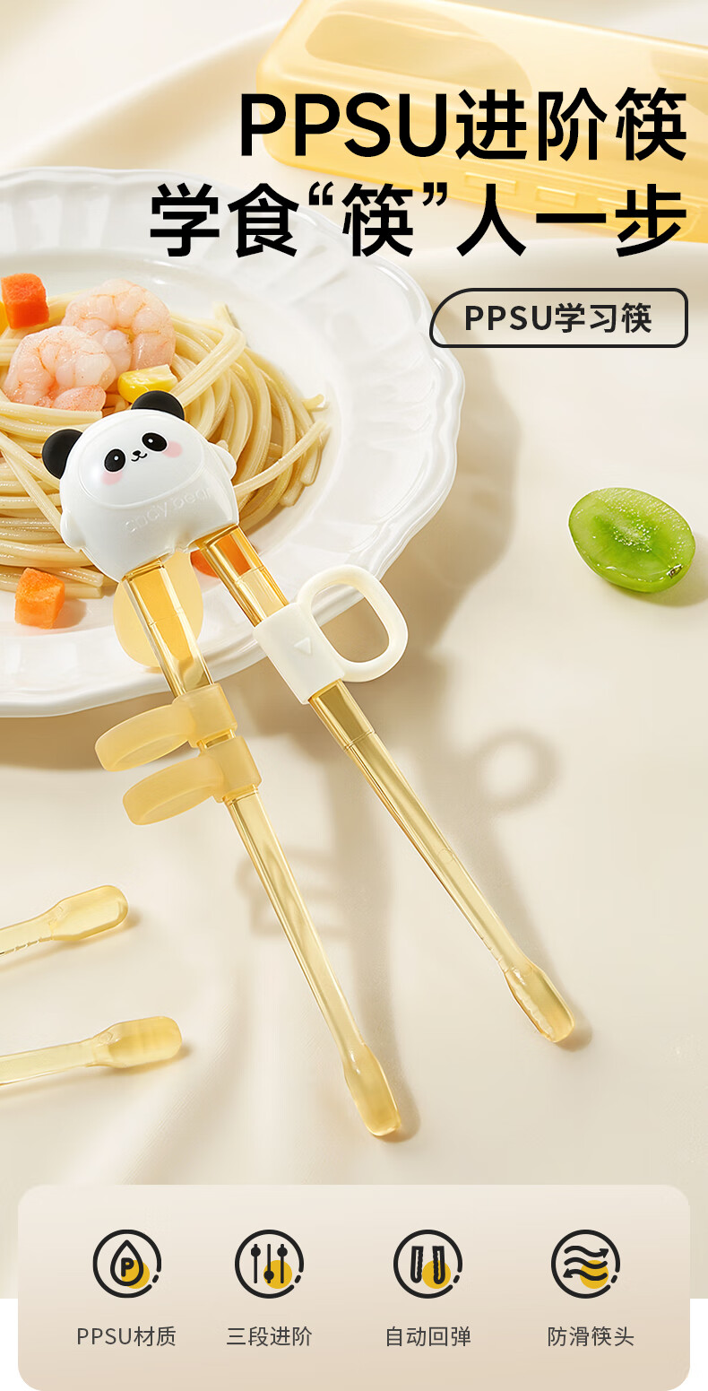 爱贝迪拉(AIBEDILA)儿童筷子训练筷1-3-6岁婴幼儿PPSU学习筷宝宝虎口练习筷儿童餐具