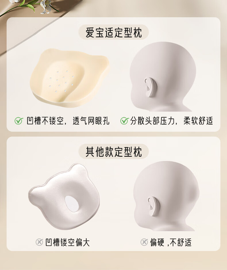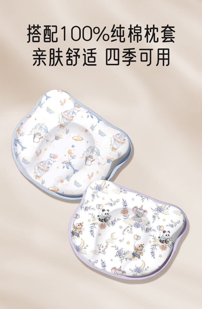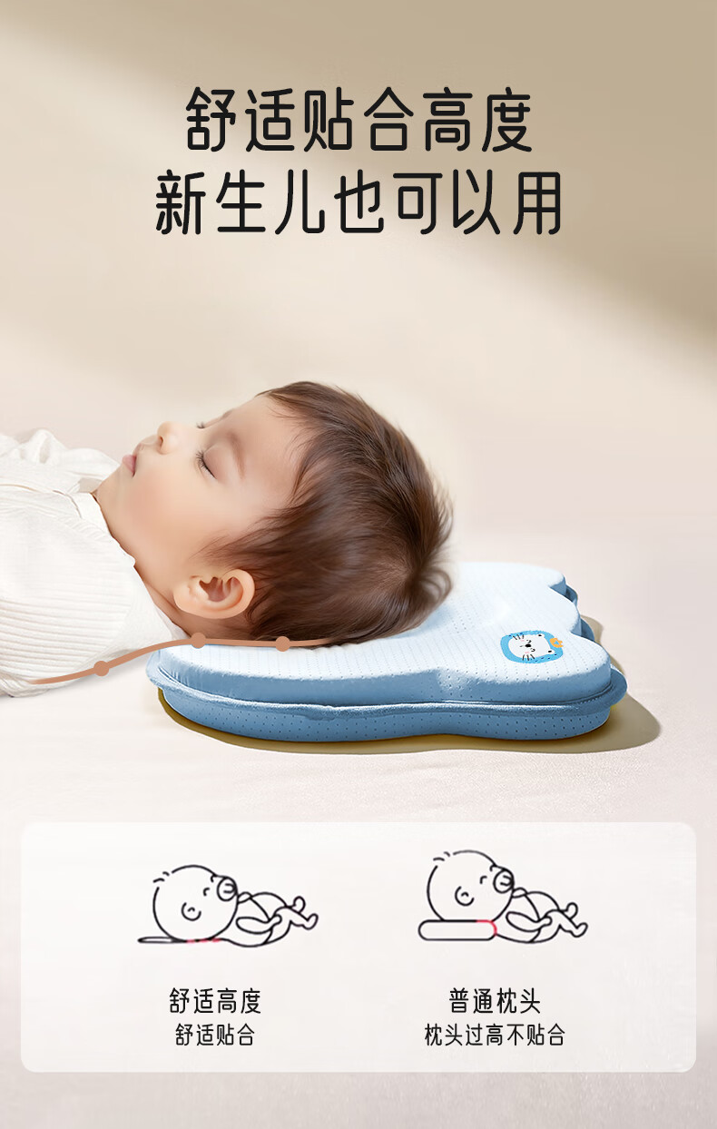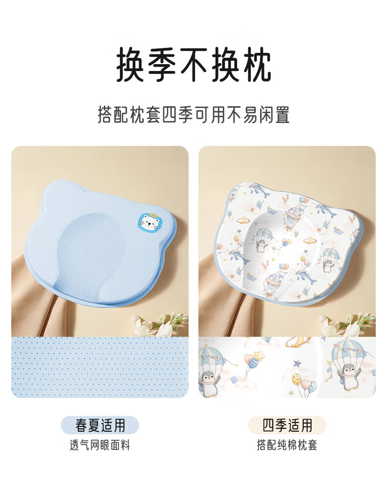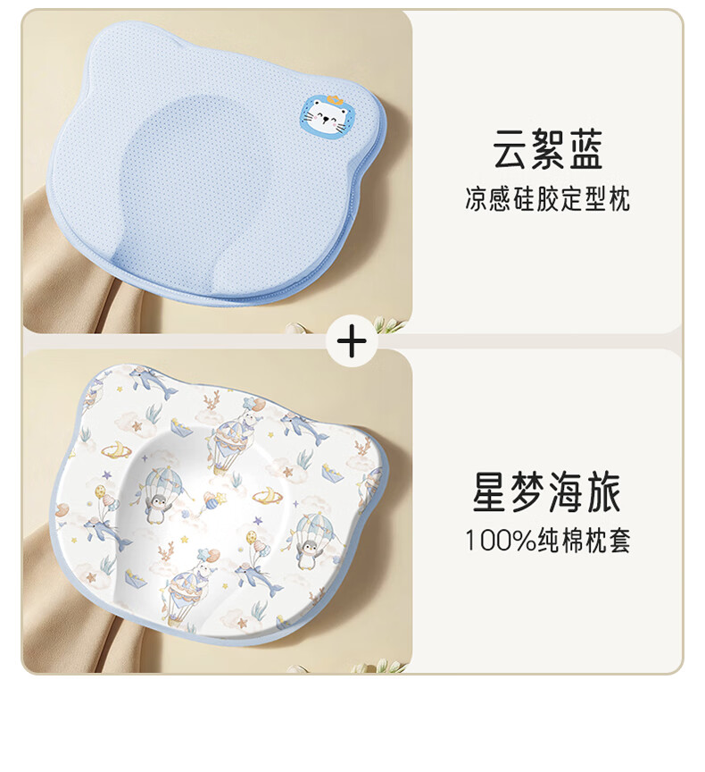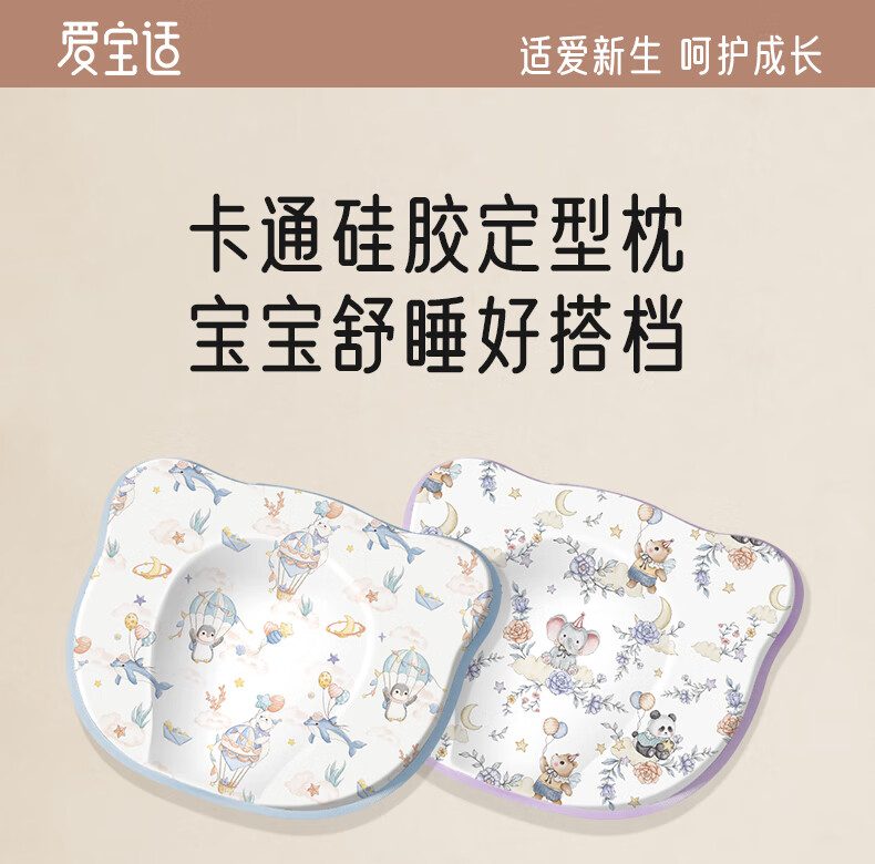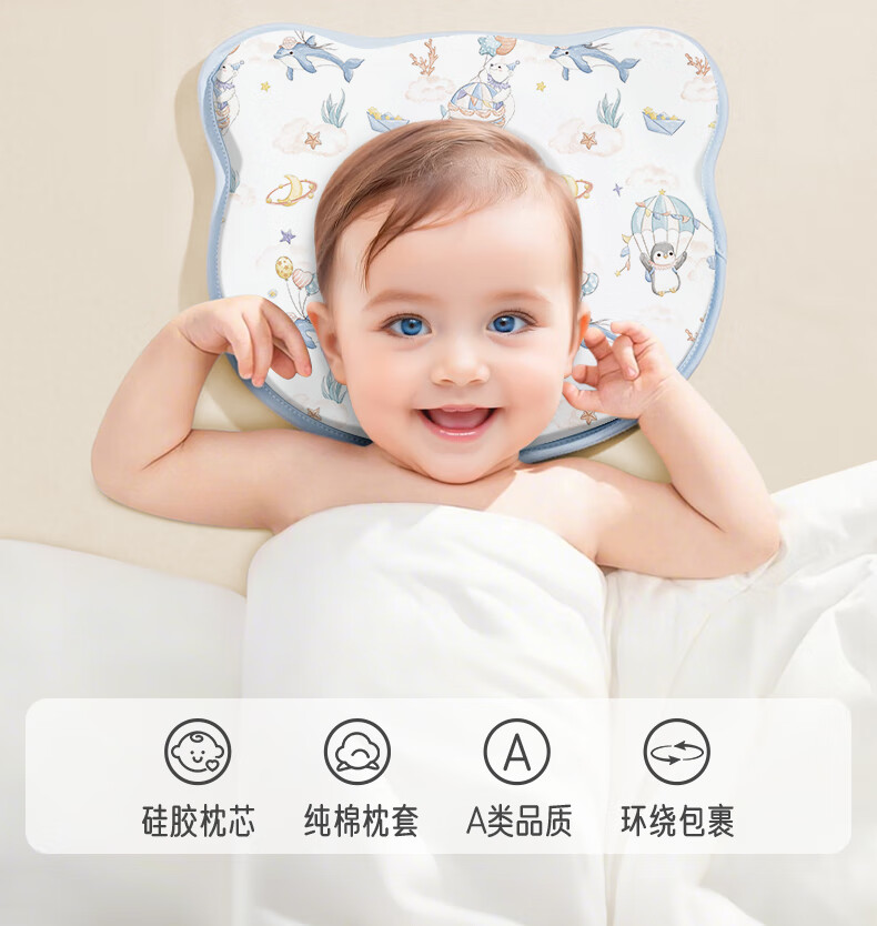 爱宝适婴儿定型枕含硅胶新生儿枕头透气定型枕芯+纯棉枕套宝宝枕蓝色ZYT