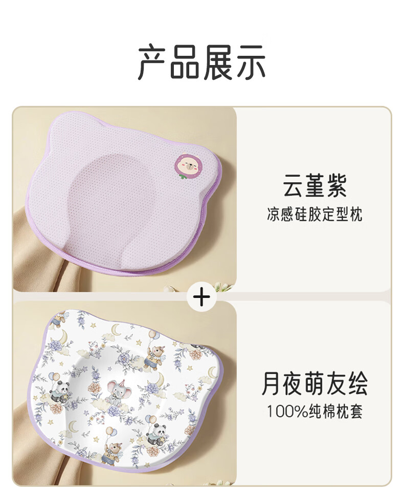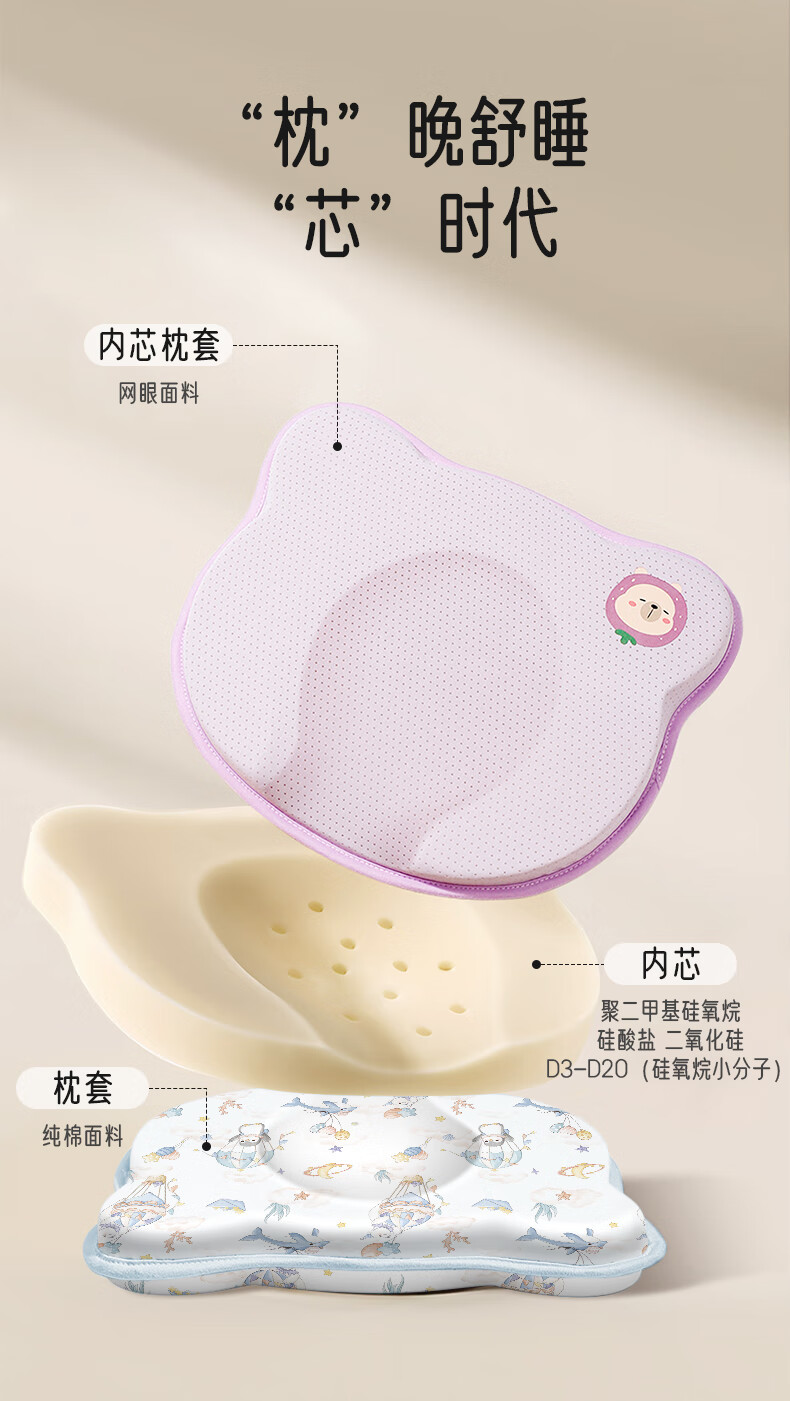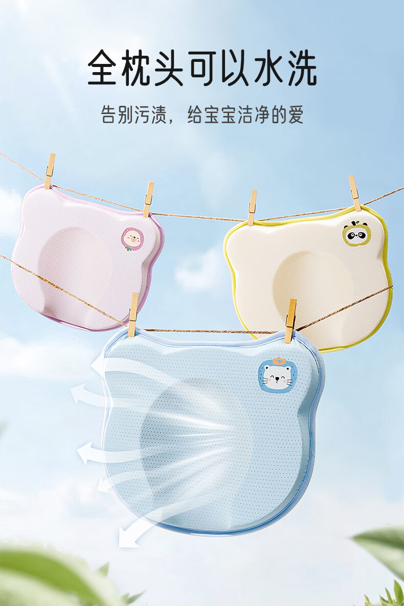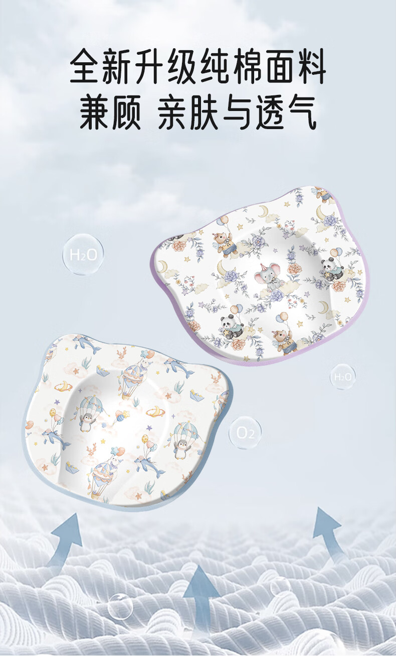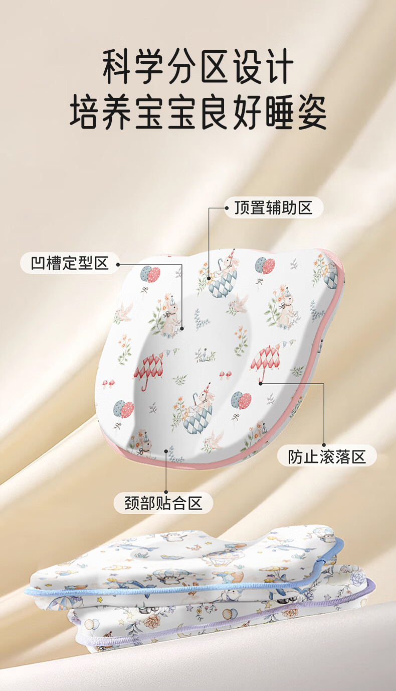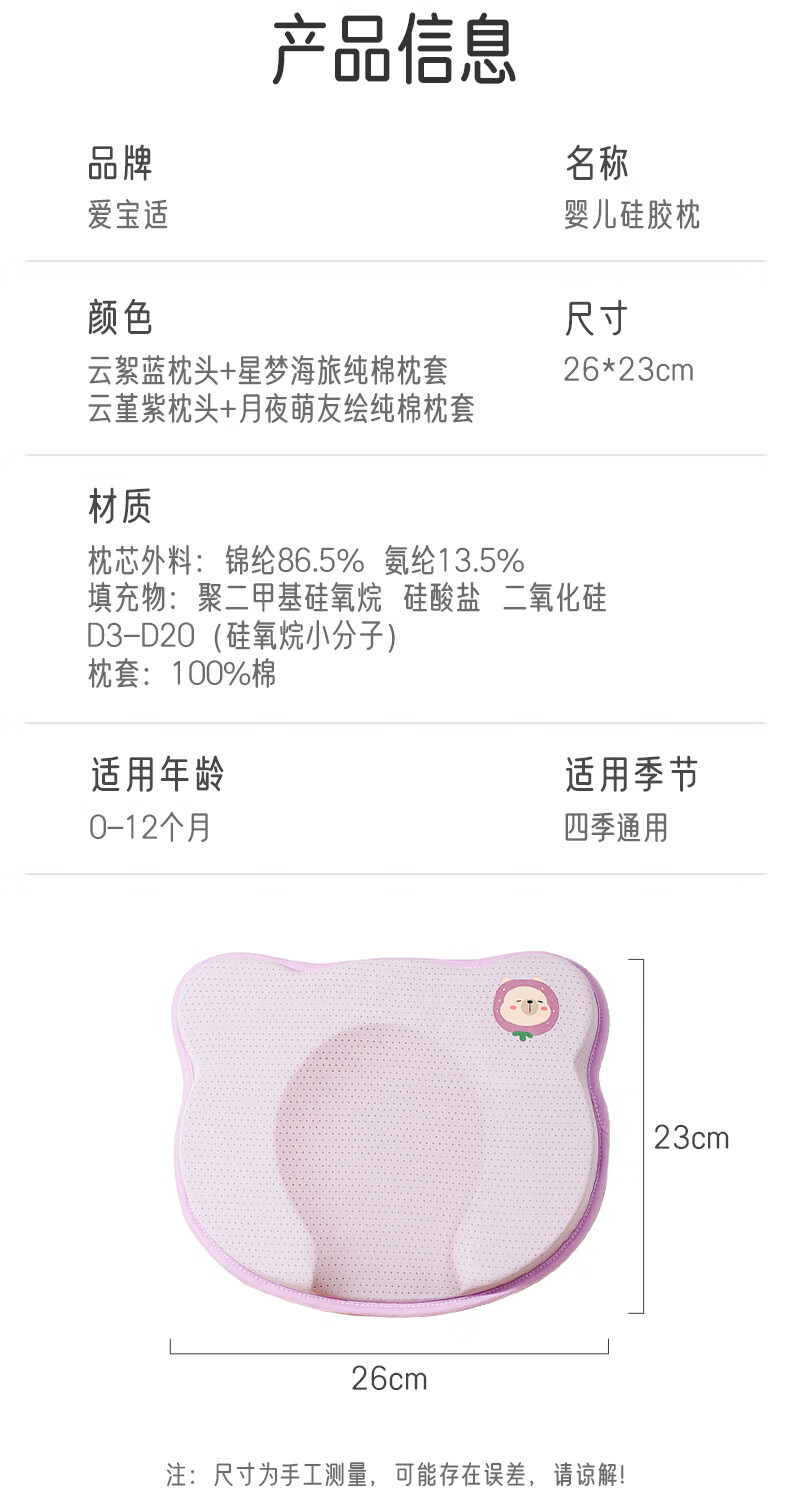 爱宝适婴儿定型枕含硅胶新生儿枕头透气定型枕芯+纯棉枕套宝宝枕蓝色ZYT