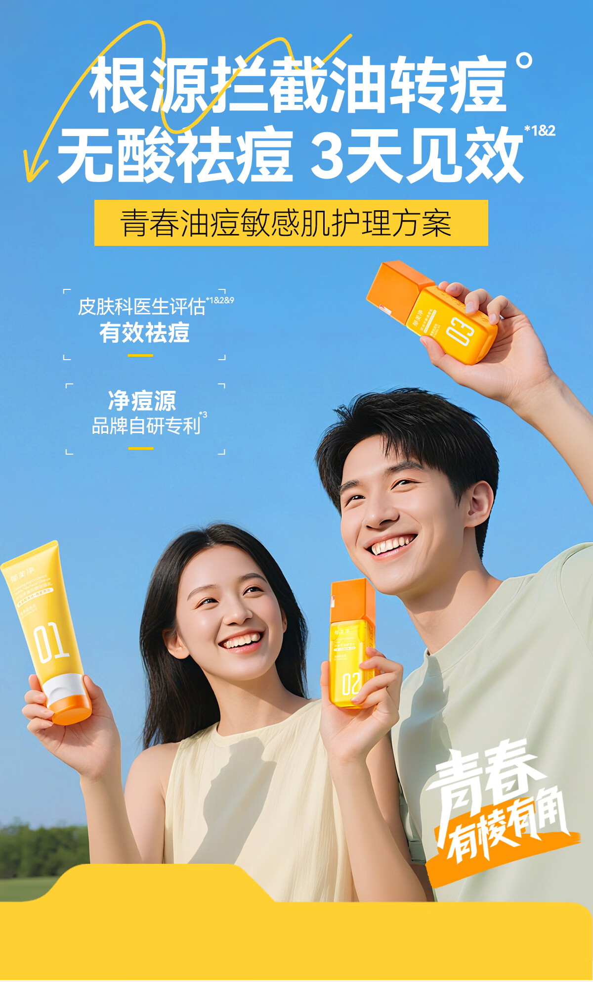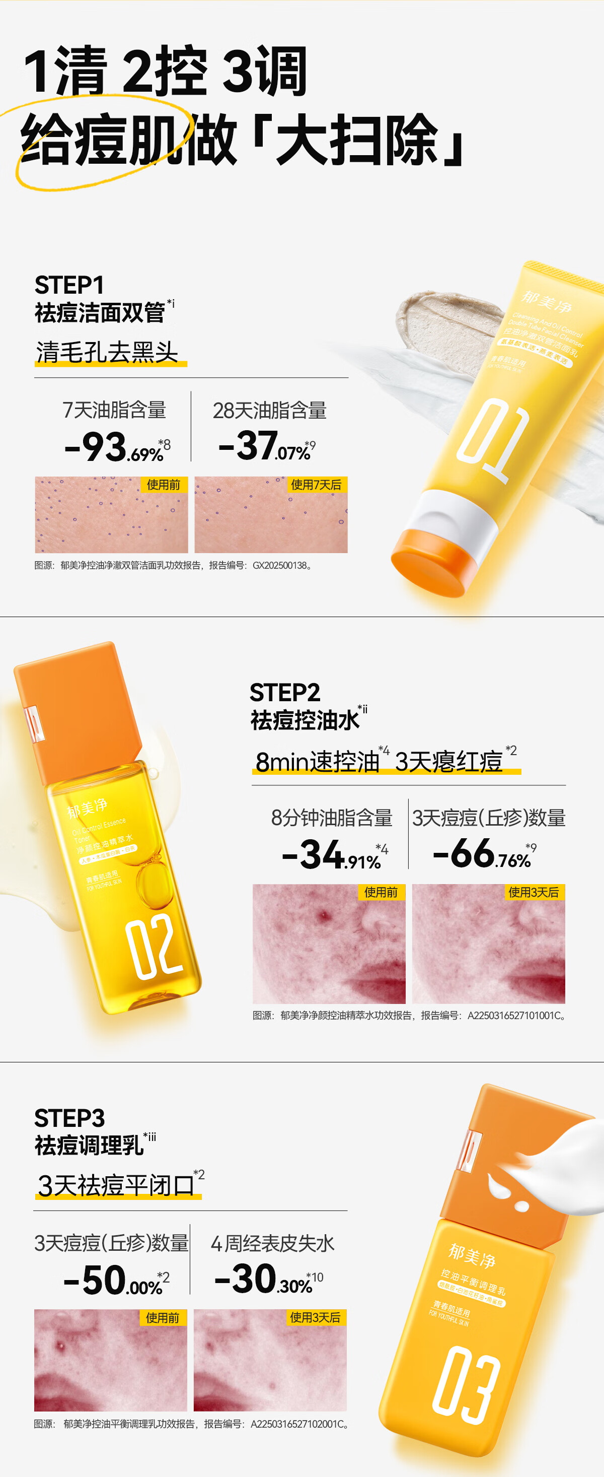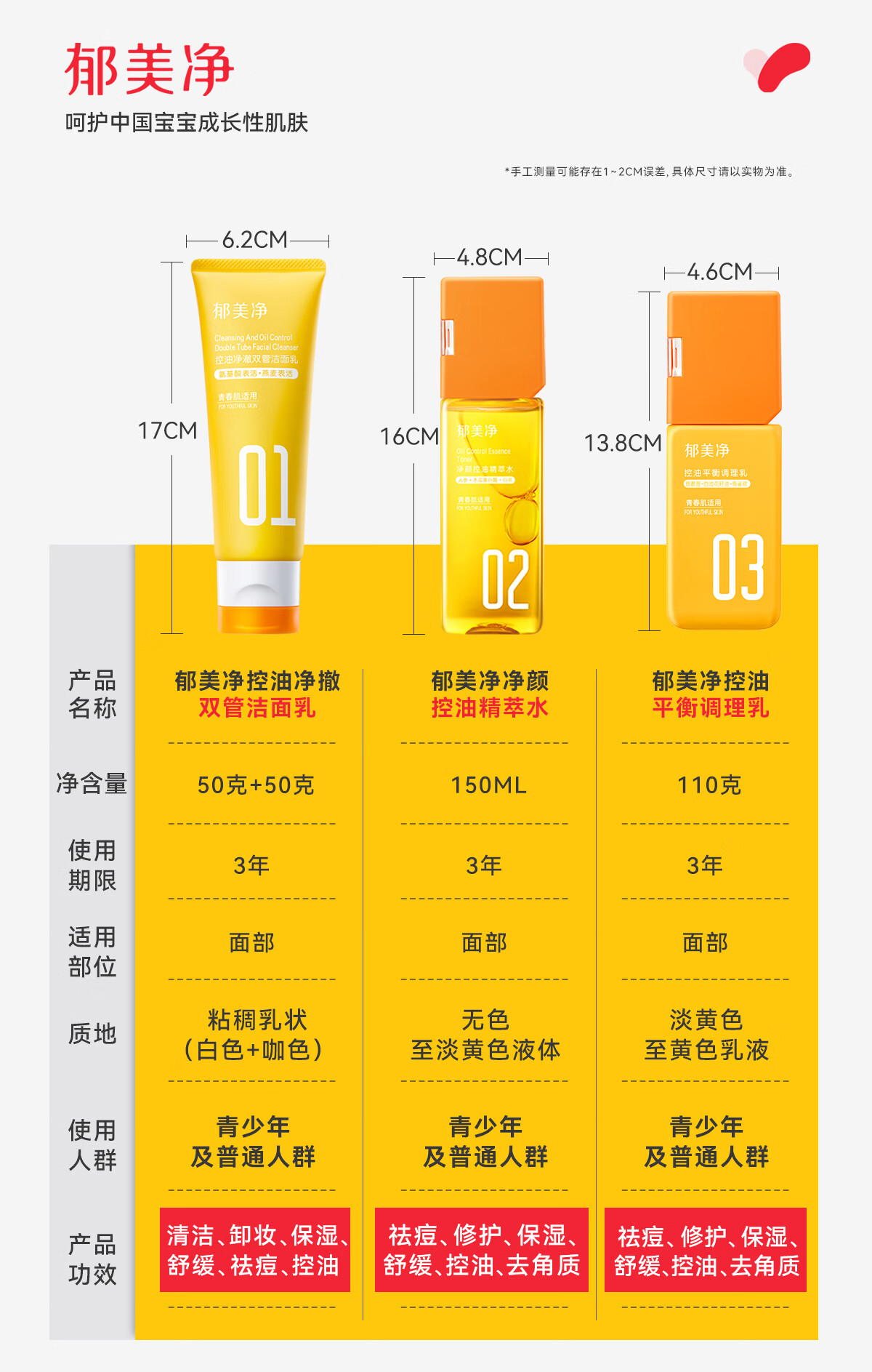 郁美净青少年洗面奶+爽肤水+护肤乳液礼盒装祛痘补水男孩女孩