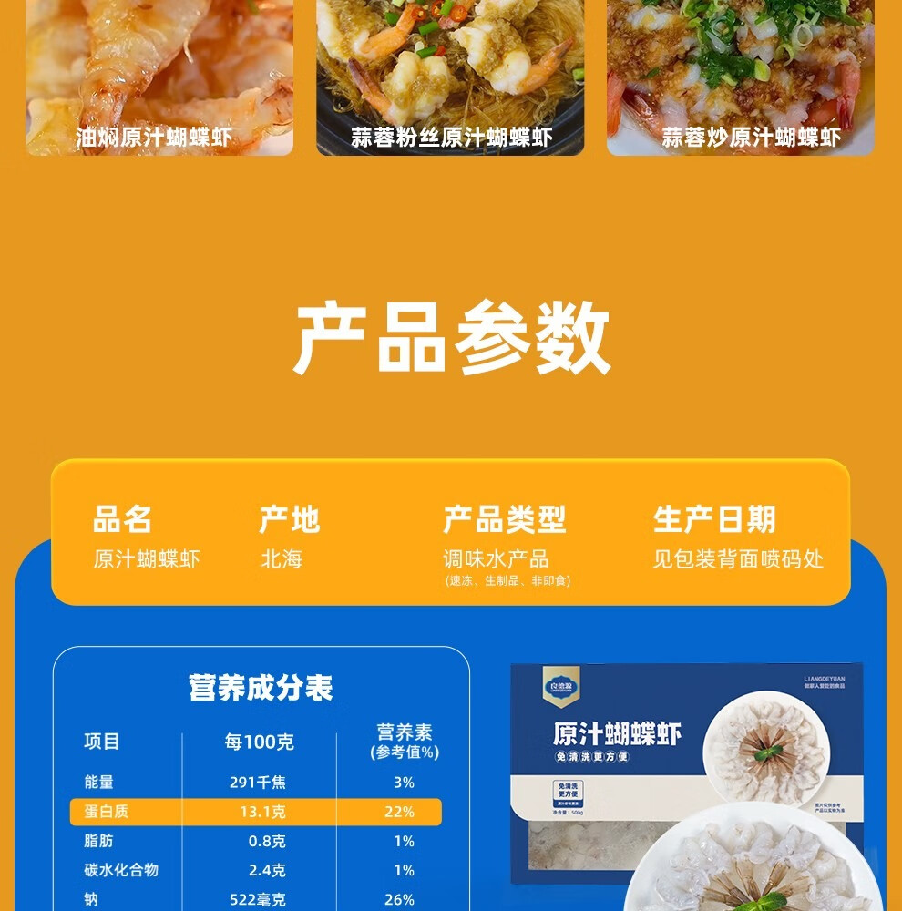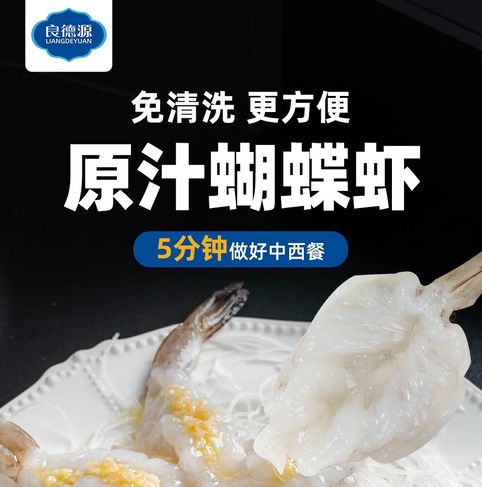 良德源原汁蝴蝶虾仁净重500G/盒 新鲜去头去壳留尾蝴蝶虾大虾免清洗虾仁 2盒共 1kg(净重) 250g*4小包