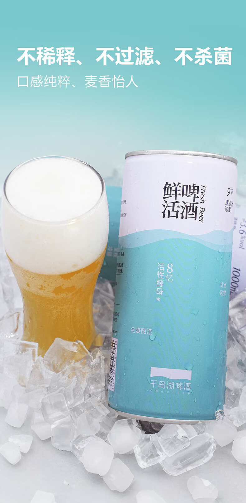 千島湖啤酒千岛湖鲜活啤酒1000ml*4罐装9°P原麦汁浓度全麦酿造短保冷链发货 千岛湖鲜活啤酒1000ml*4罐装
