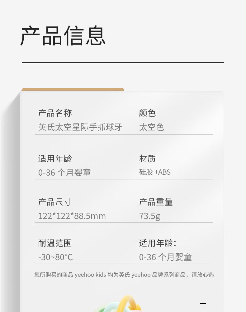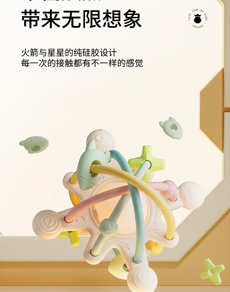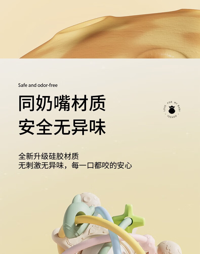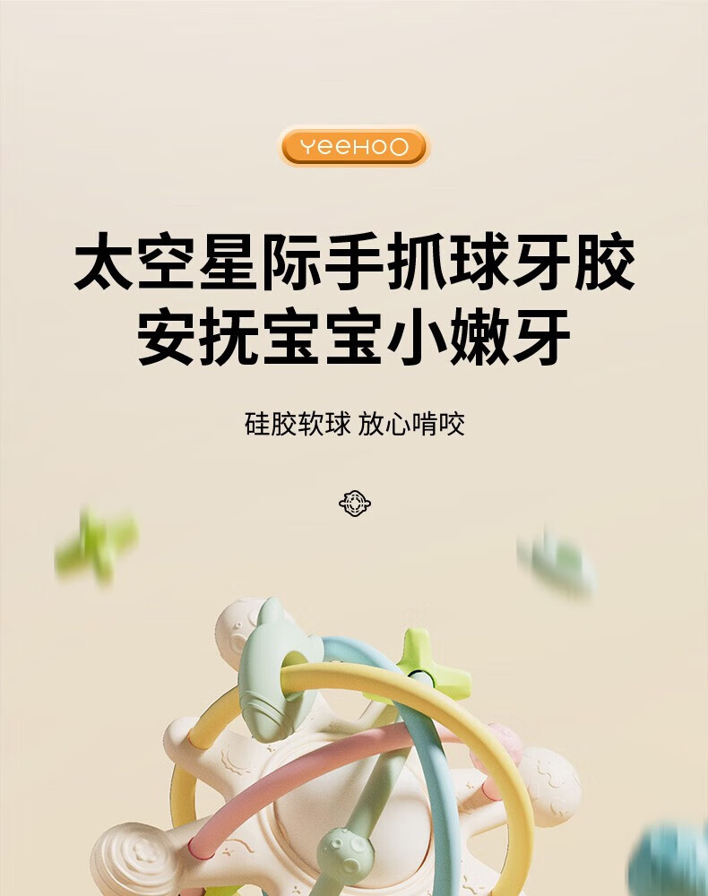 英氏(YEEHOO)曼哈顿手抓球宝宝硅胶牙胶婴儿咬胶玩具防吃手啃咬神器安抚牙胶
