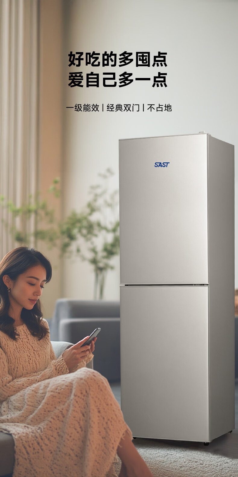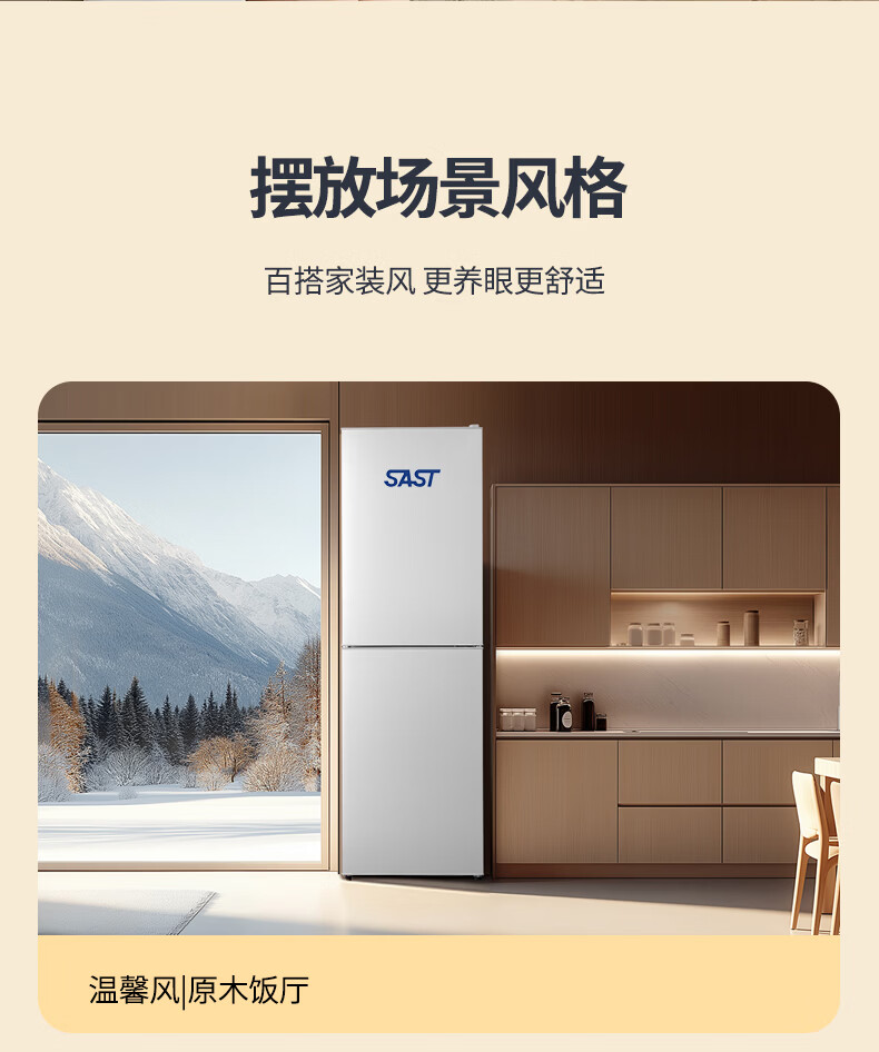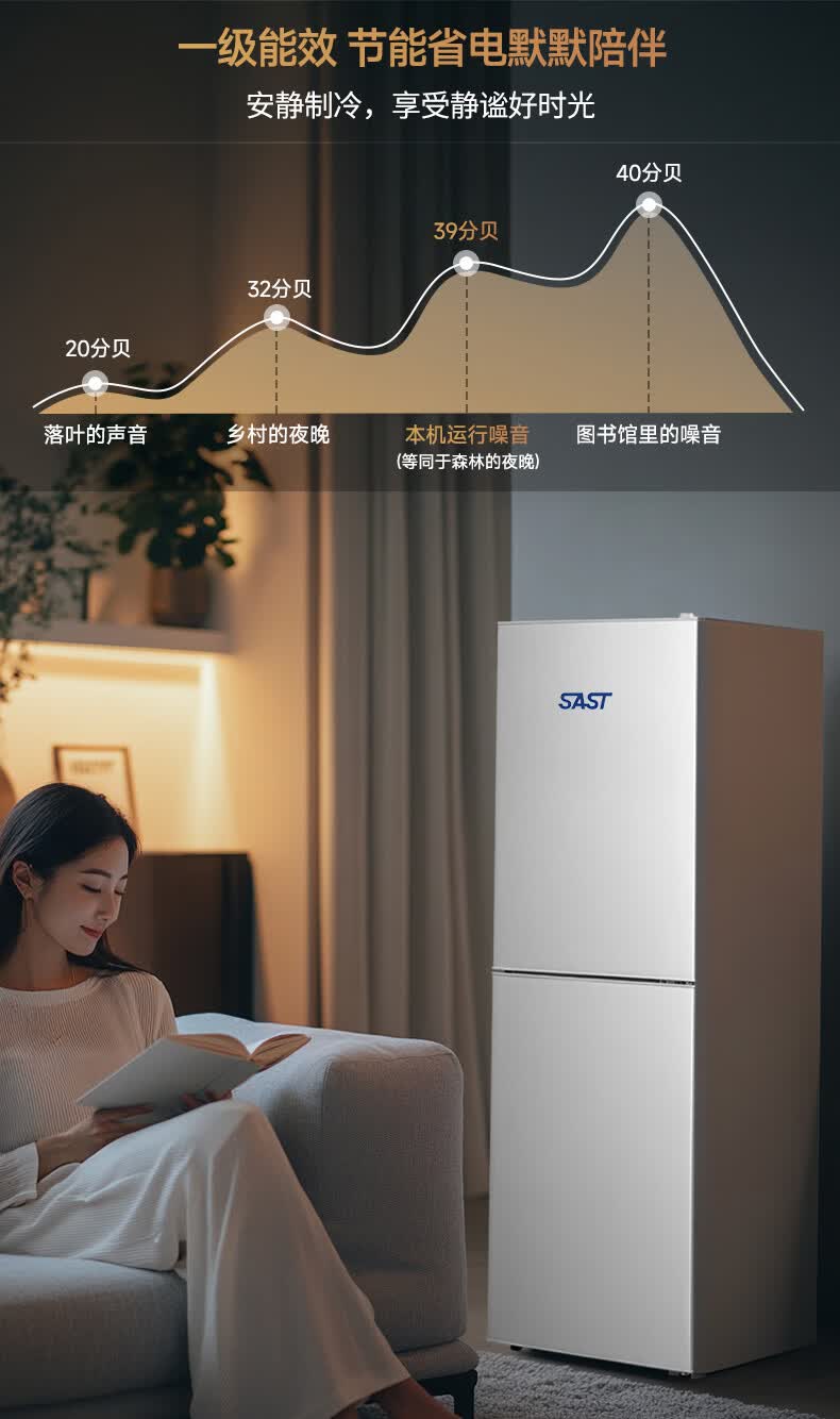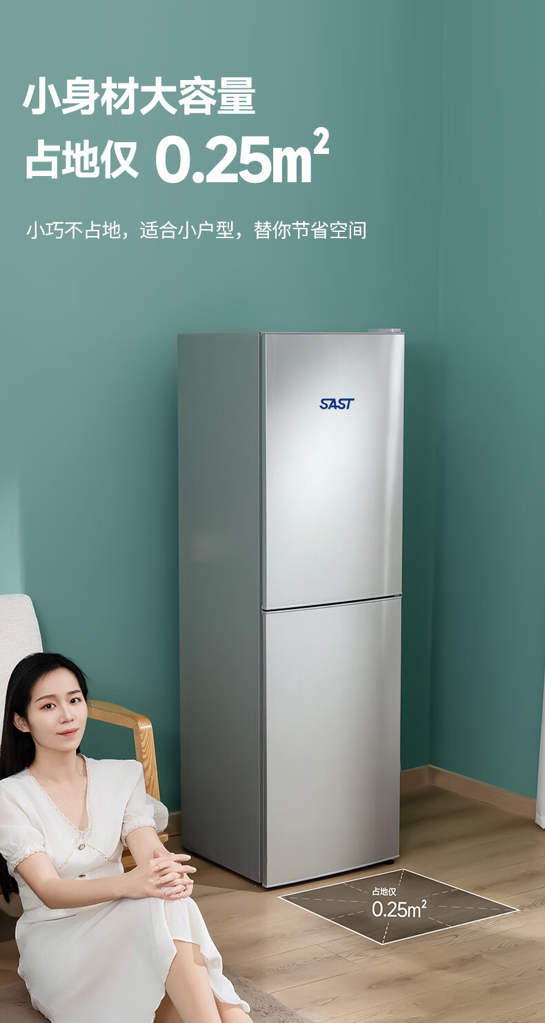 先科(SAST)大冰箱家用 节能省电一级能效家用冷藏冷冻两用宿舍寝室出租房用双门办公室电冰箱 S258银色【店长推荐】【冷藏三层冷冻三层】