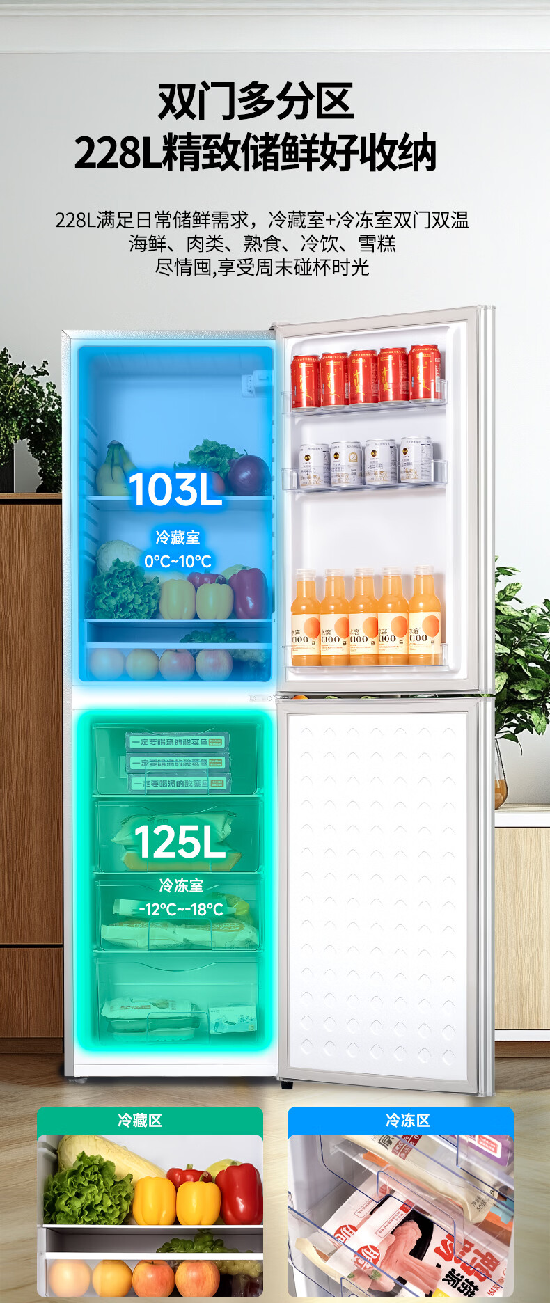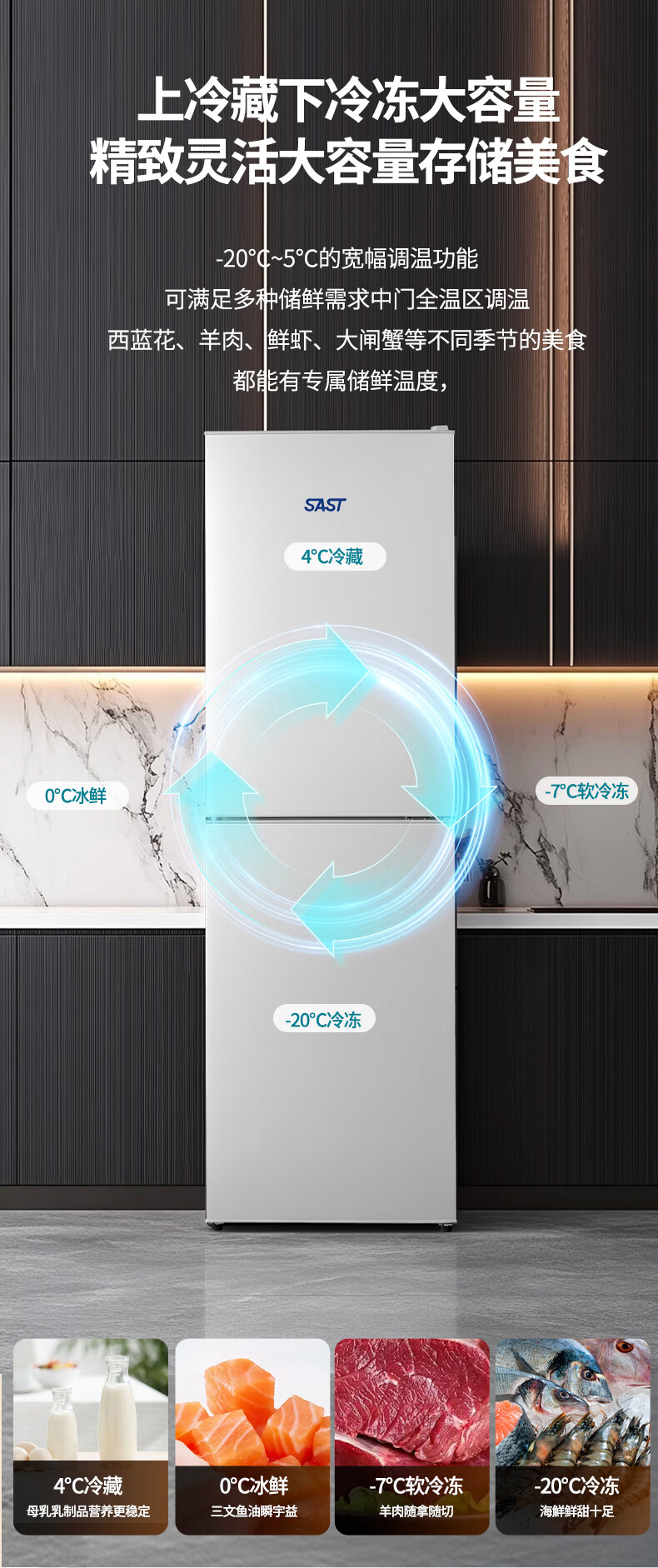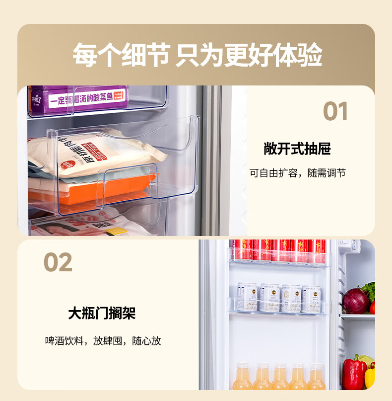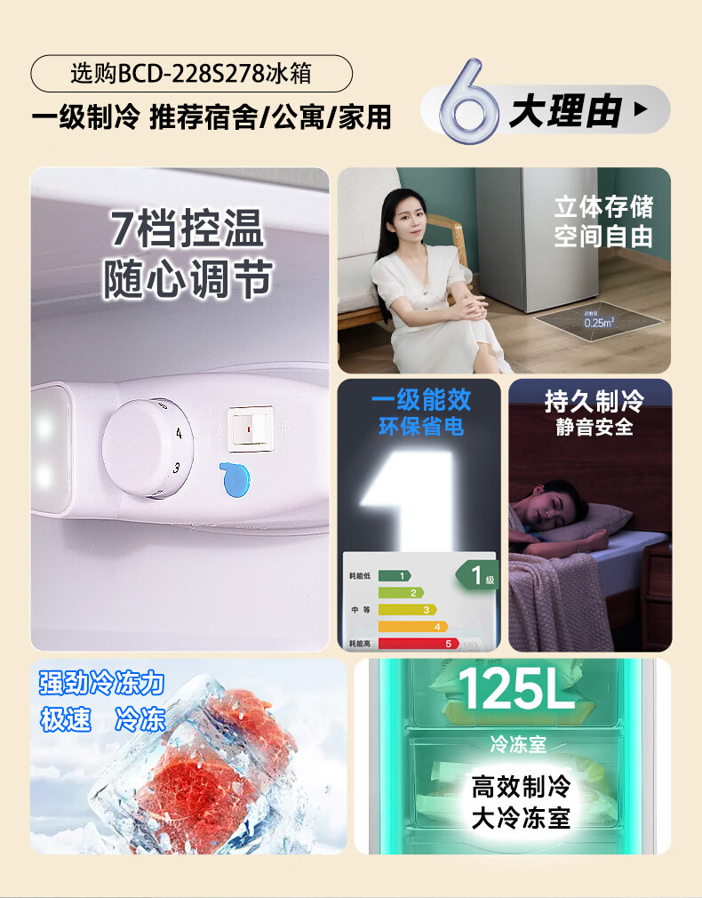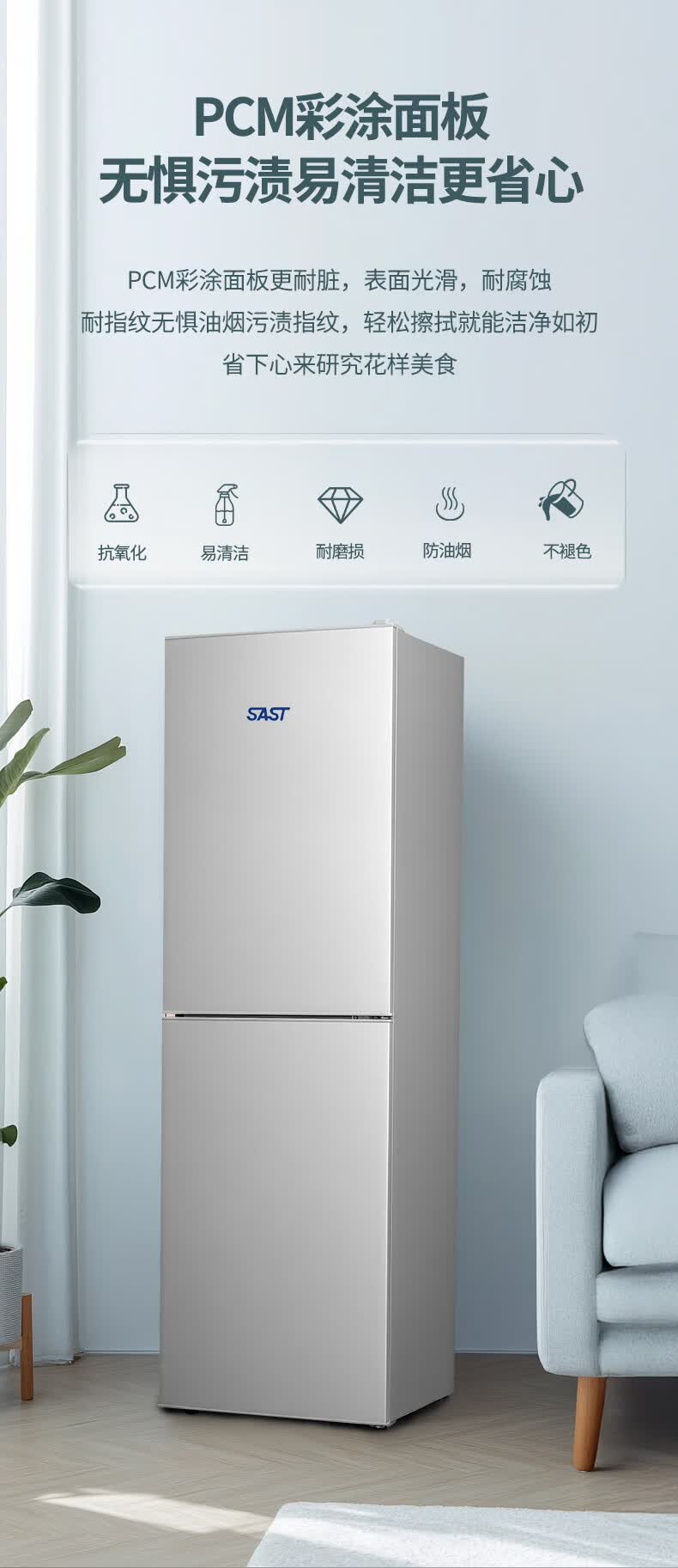 先科(SAST)大冰箱家用 节能省电一级能效家用冷藏冷冻两用宿舍寝室出租房用双门办公室电冰箱 S258银色【店长推荐】【冷藏三层冷冻三层】