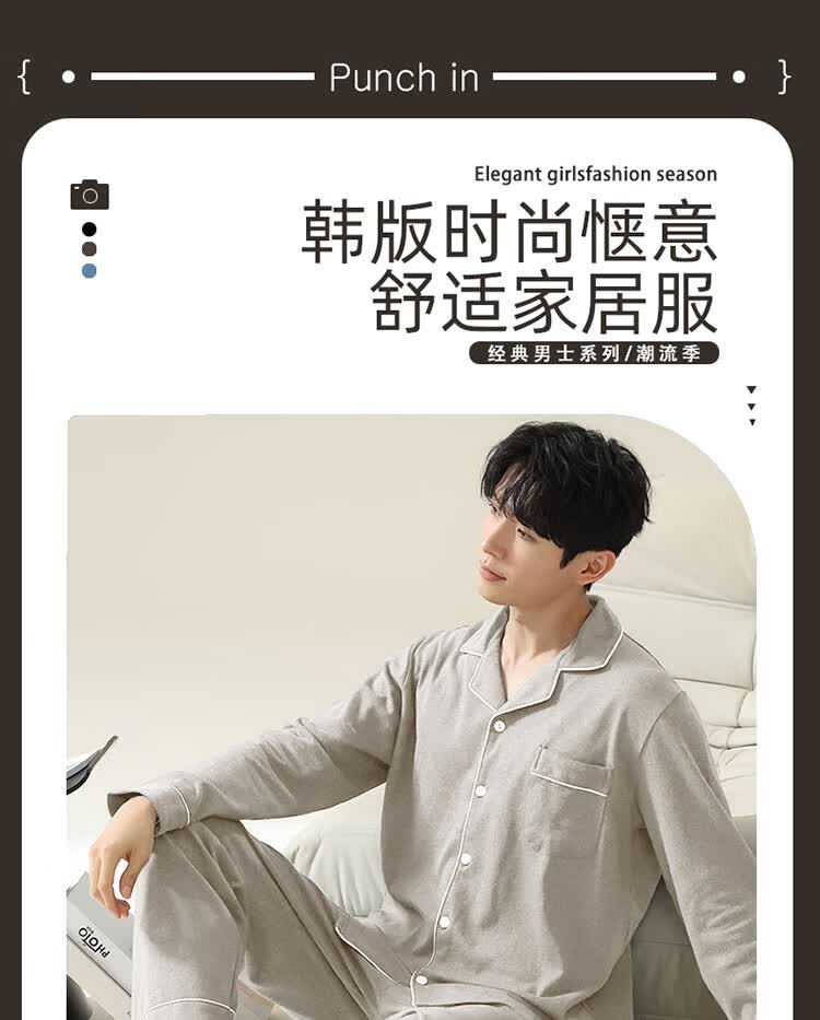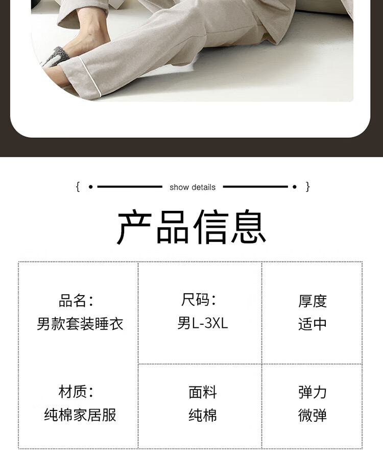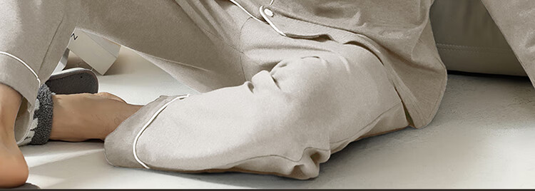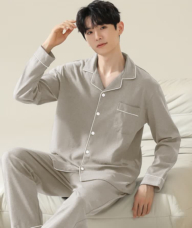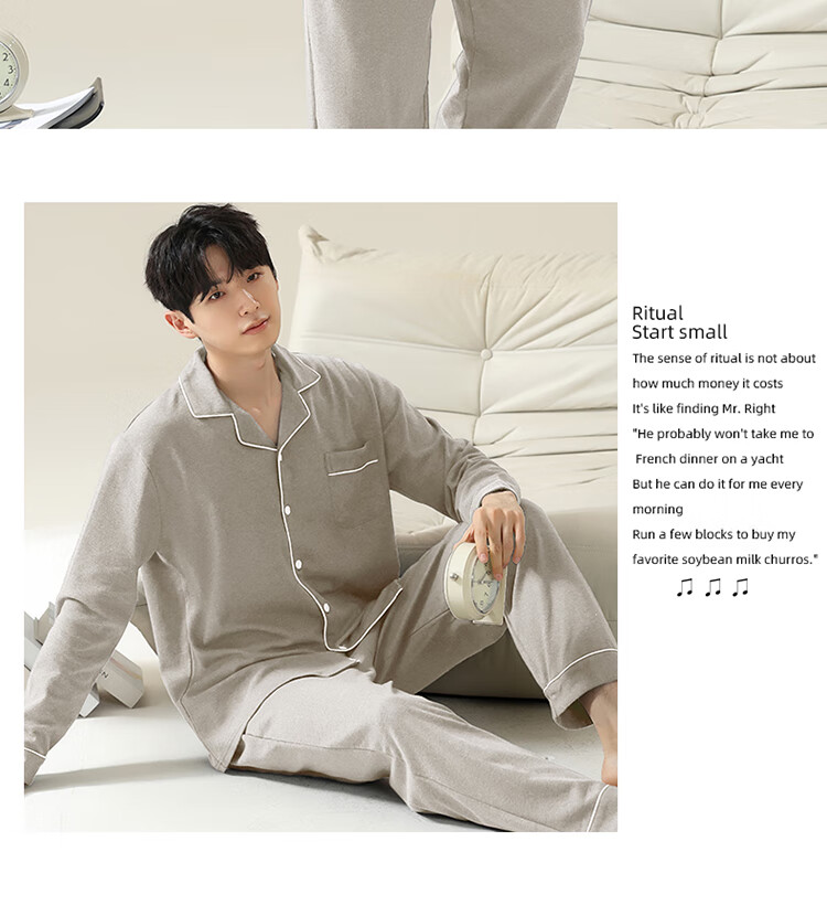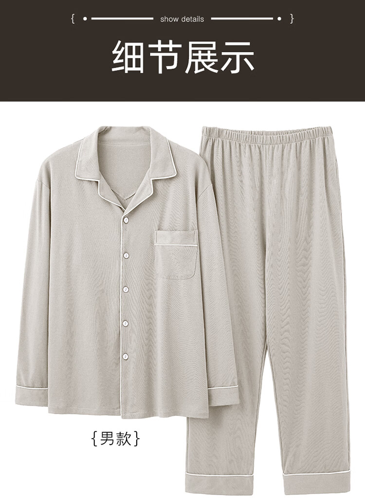 猫人纯棉睡衣男士夏季100全棉长袖长裤春秋开衫简约高级感家居服套装 浅灰色 【100%新疆棉,亲肤柔软】 XL 【推荐体重135-155斤】