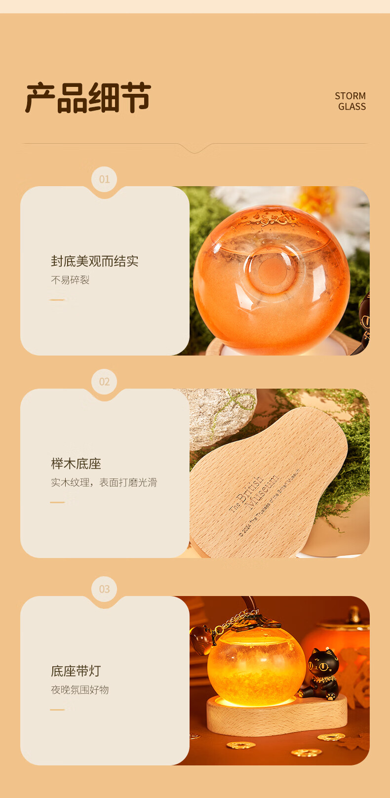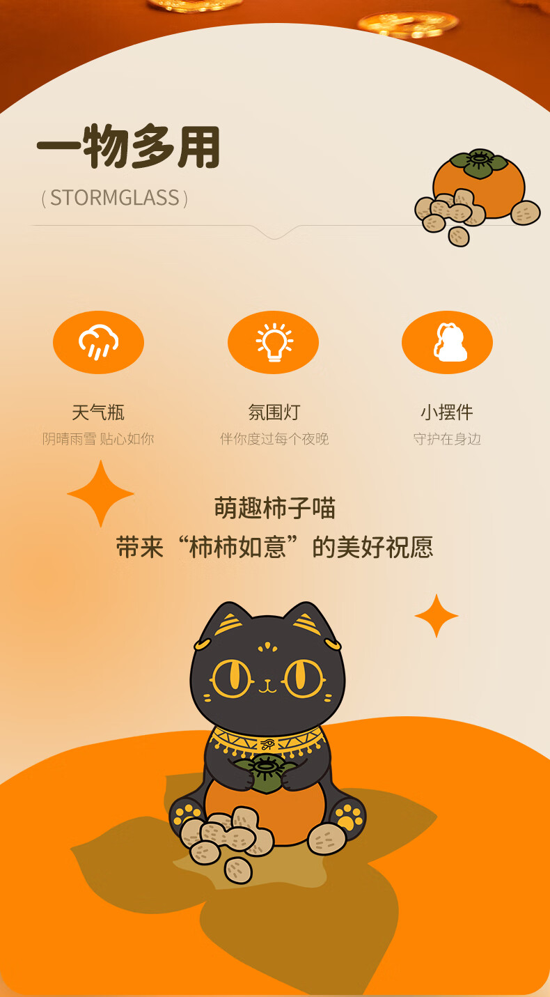 大英博物馆生日礼物柿柿如意天气瓶风暴瓶安德森猫桌面摆件 好柿花生风暴瓶摆件