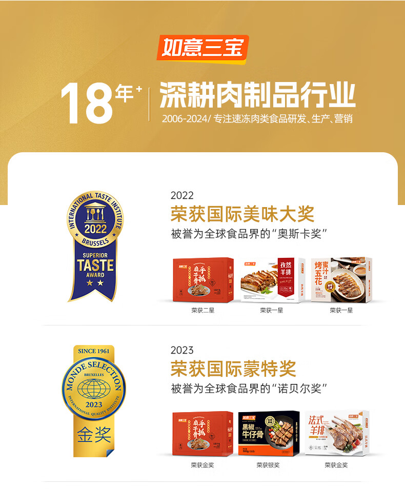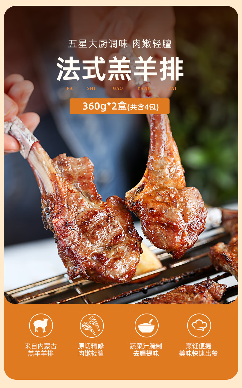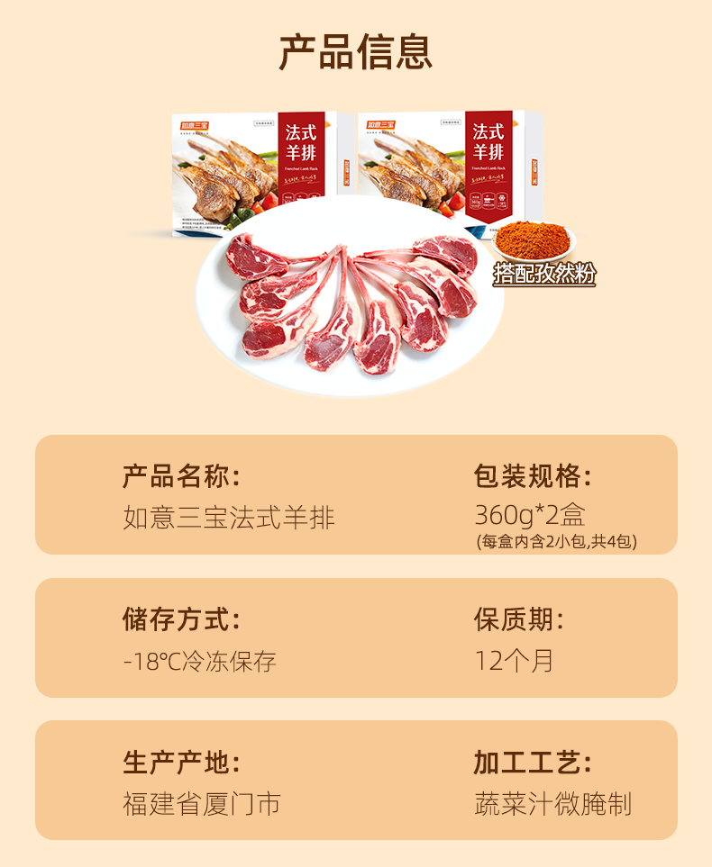 如意三宝(ruyisanbao)法式羊排360g (内含2袋) *2生鲜小战斧羔羊肋排骨肉烧烤空气炸锅 法式羊排360g*2盒(或175g*4盒)