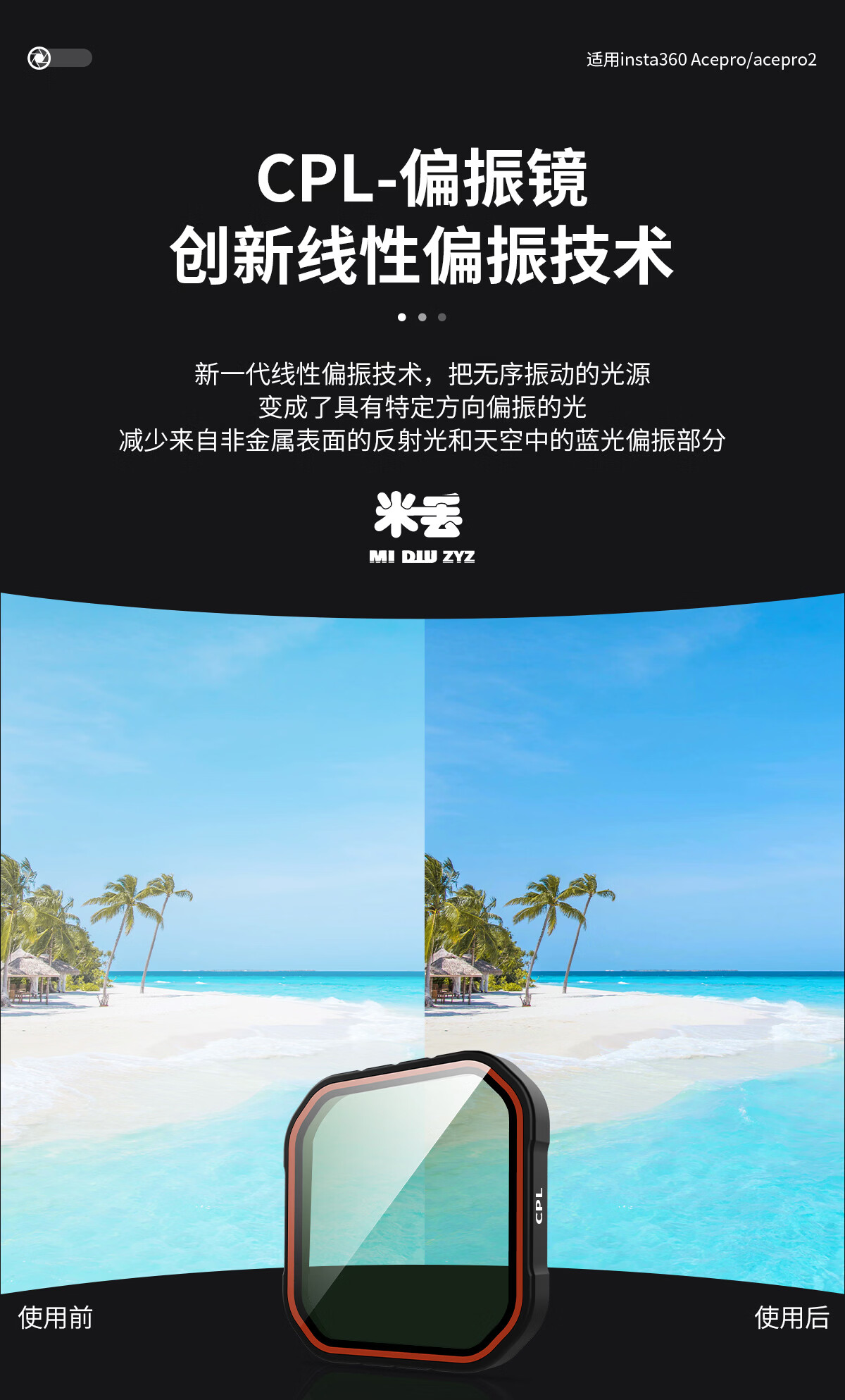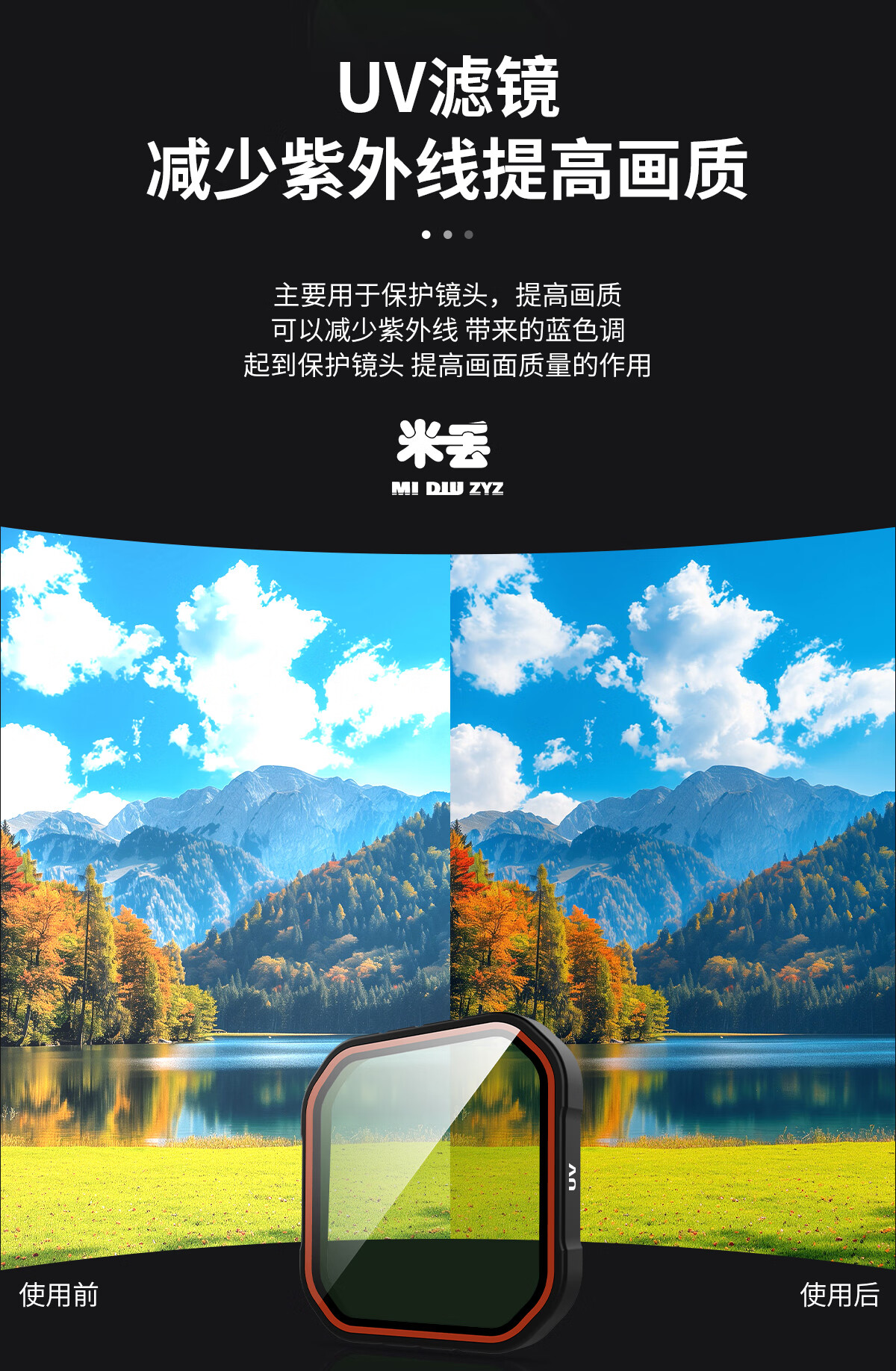 米丢适用360acepro2滤镜运动相机CPL偏振镜ND8/16/32减光镜滤镜套装保护镜360acepro配件360acepro滤镜 uv滤镜【保护镜头】