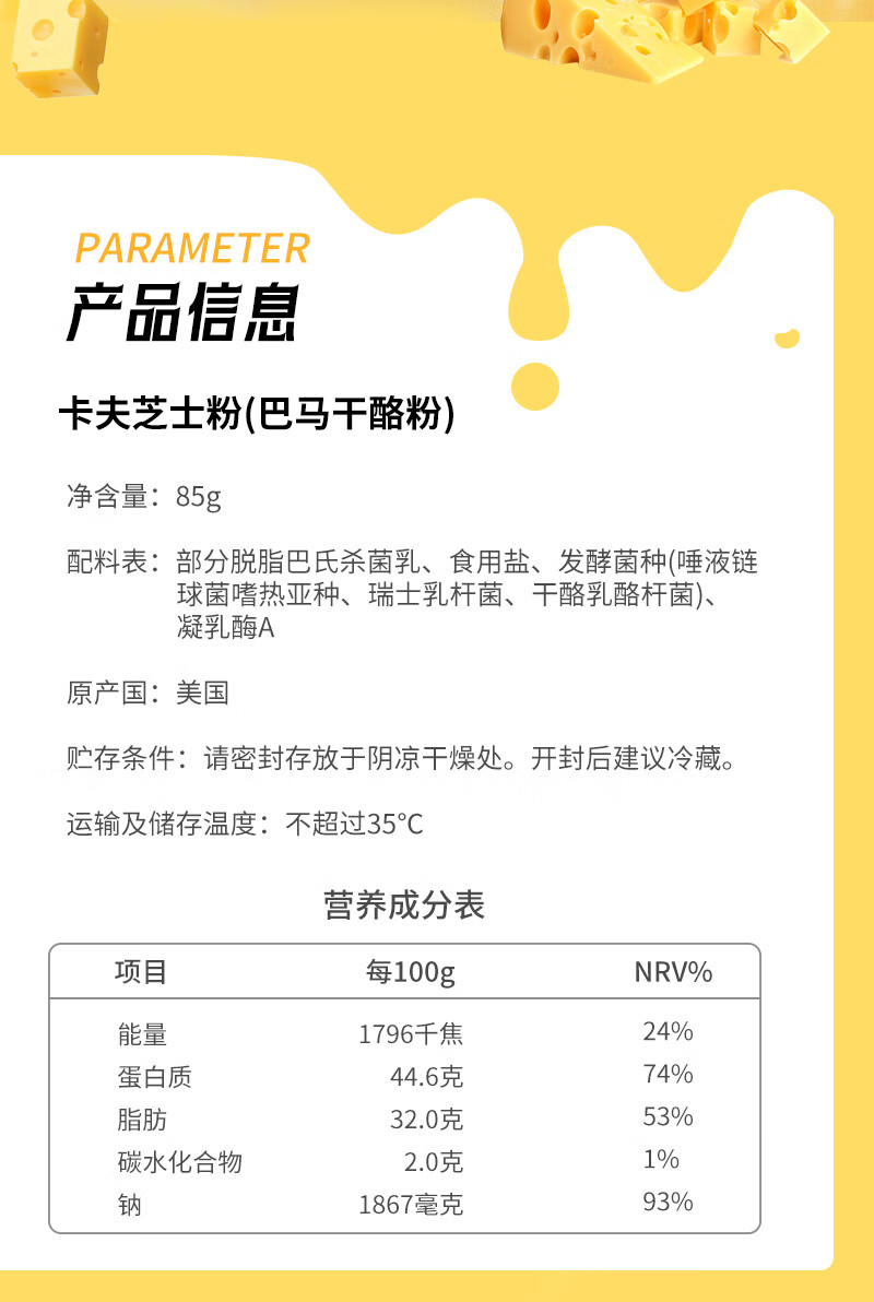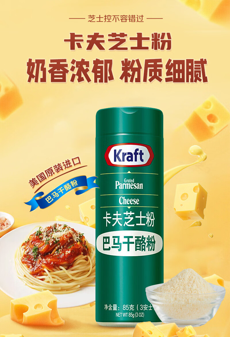 卡夫 芝士粉85g 美国进口 巴马干酪粉 烘焙撒料 奶酪起司 调味粉