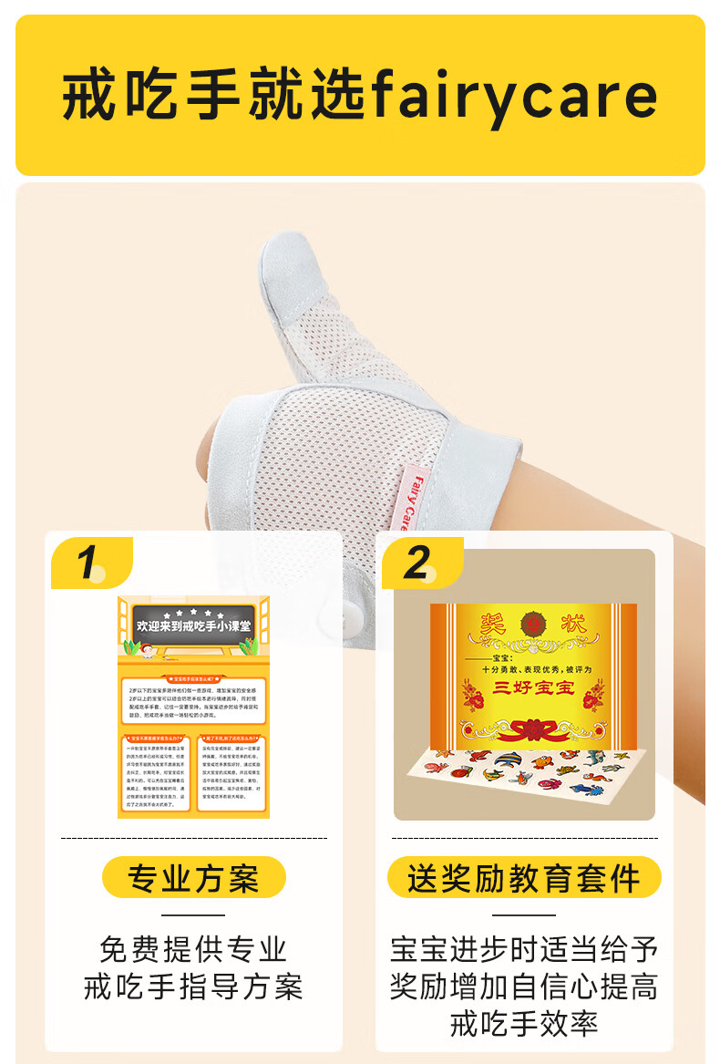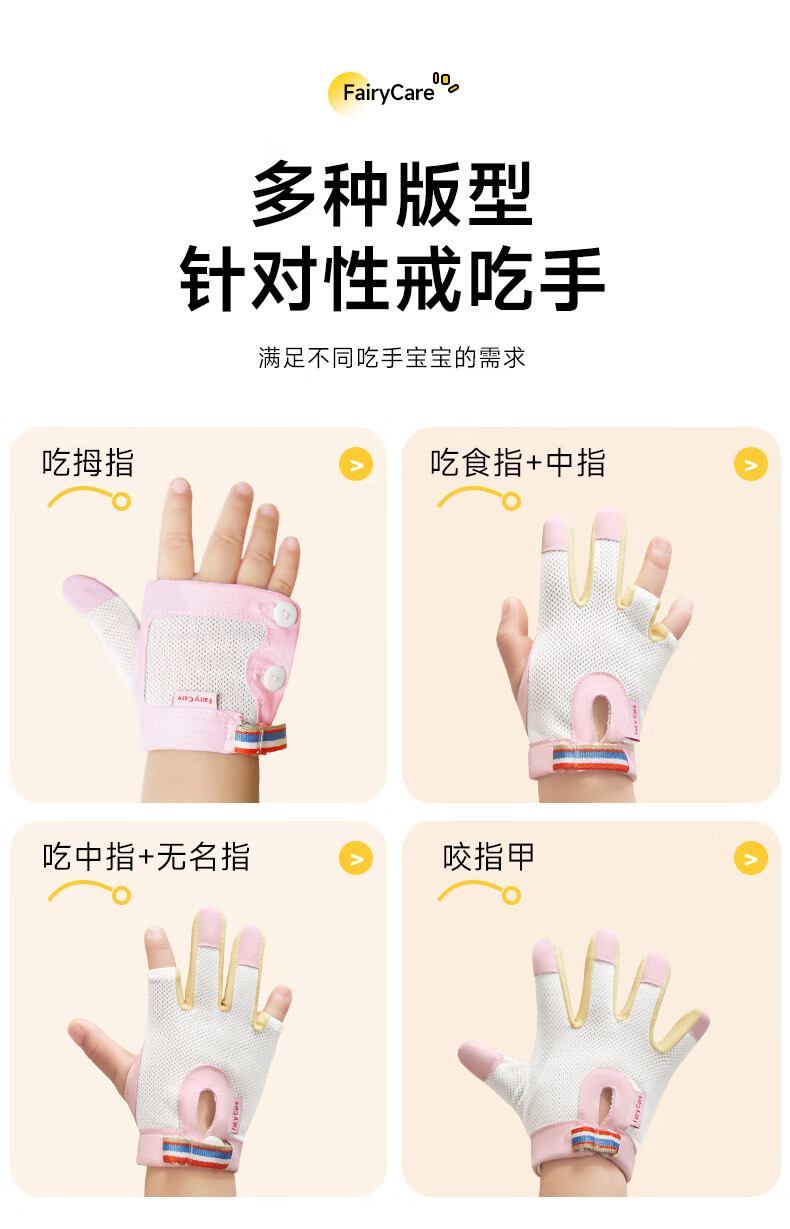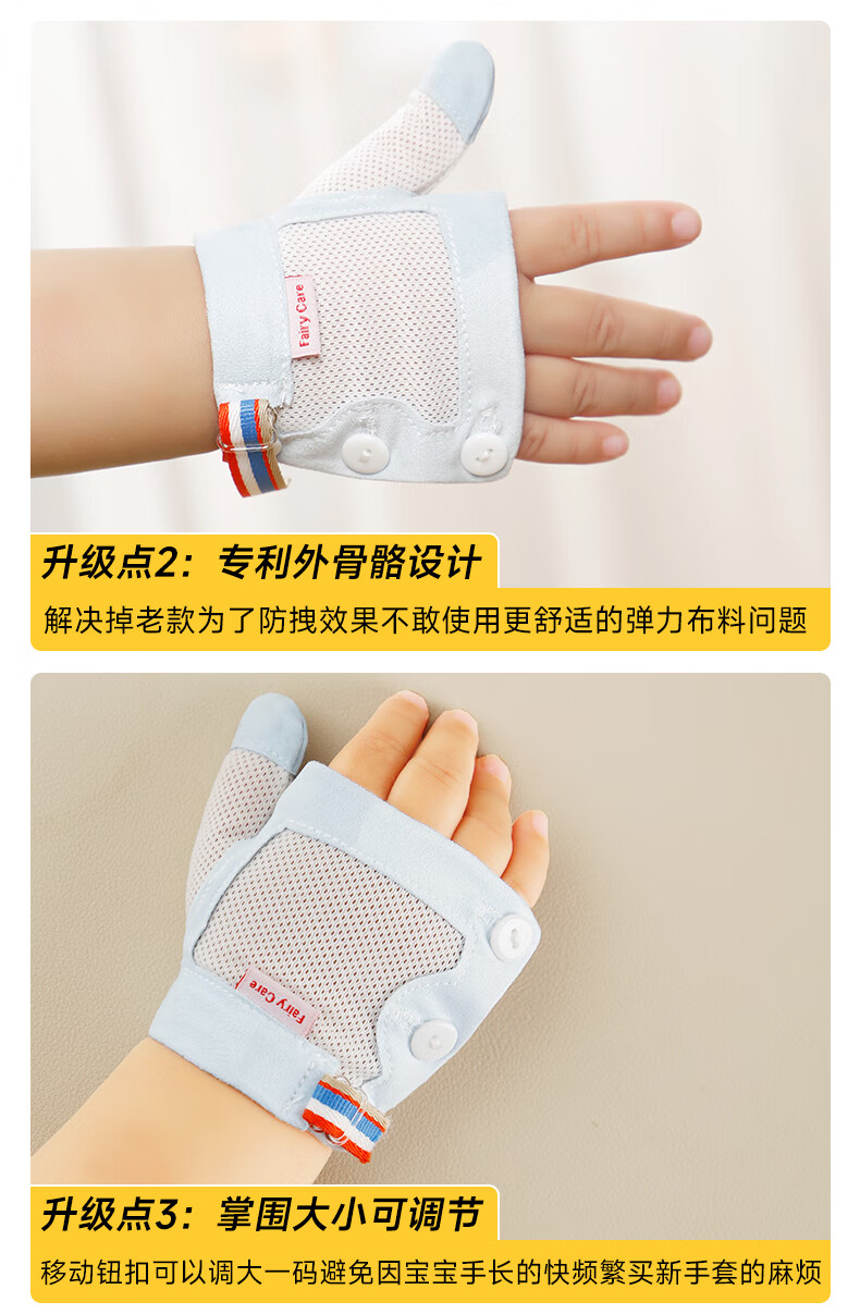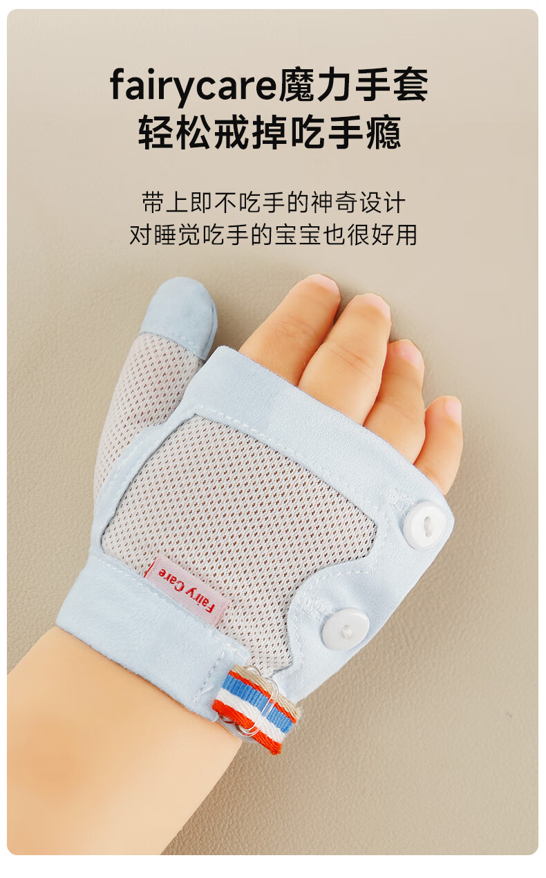 富瑞卡(FairyCare)戒吃手手套防吃手神器宝宝吸大拇指套儿童防啃手小孩咬指甲矫正器 【拇指】雅蓝-普装CG18【2只装】 S码:17-20斤/8-12月