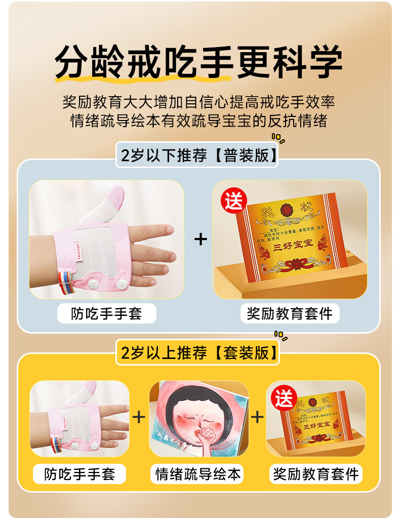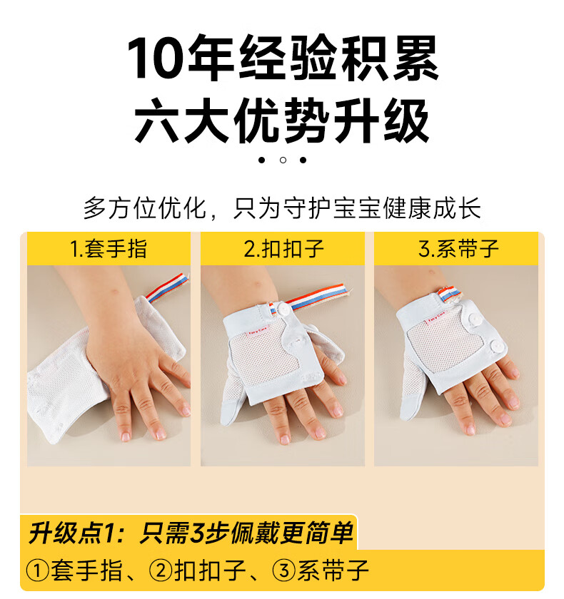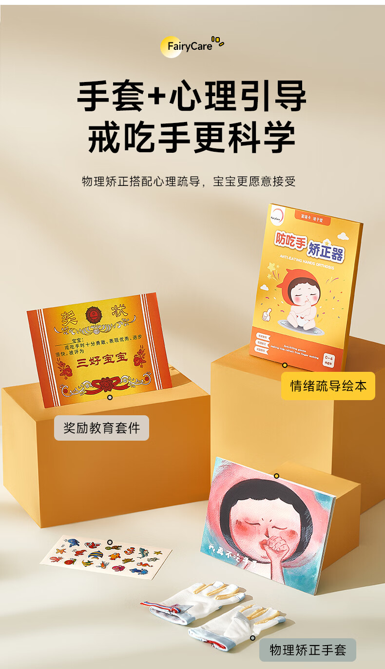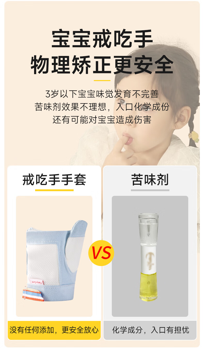 富瑞卡(FairyCare)戒吃手手套防吃手神器宝宝吸大拇指套儿童防啃手小孩咬指甲矫正器 【拇指】雅蓝-普装CG18【2只装】 S码:17-20斤/8-12月