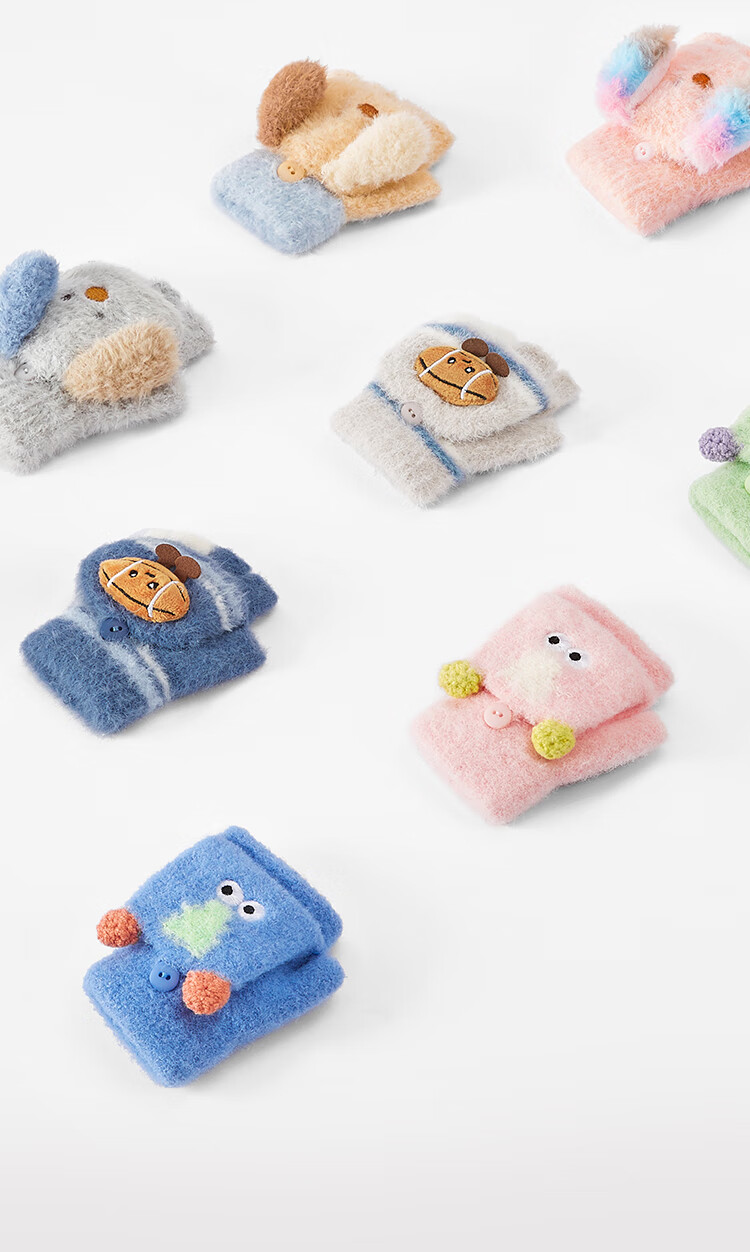 巴拉巴拉balaOne儿童手套男童女童2025毛绒小狗造型翻盖可爱208425162202