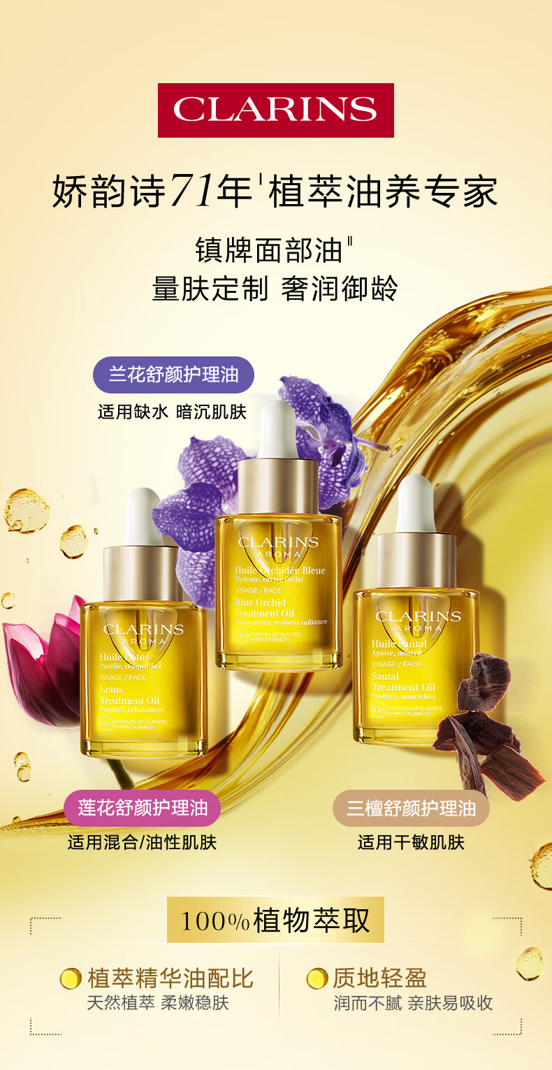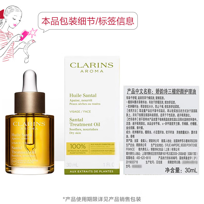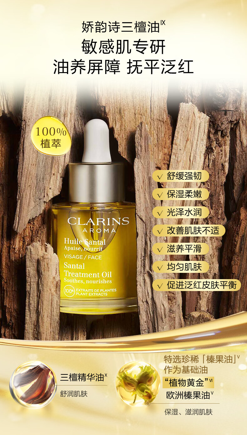 娇韵诗三檀面部精华油30ml干皮补水保湿细腻舒缓护肤品化妆品新年礼物