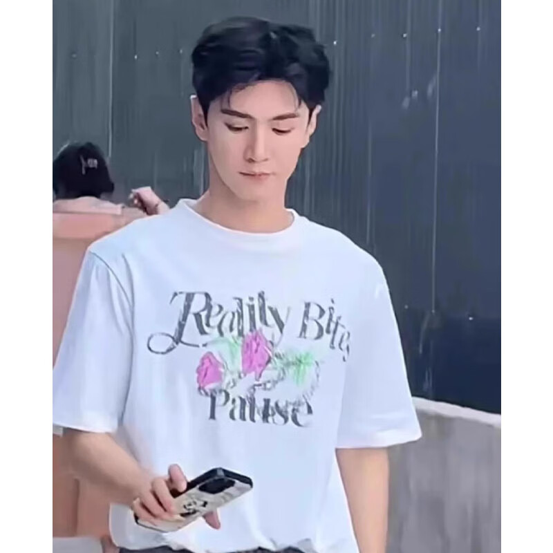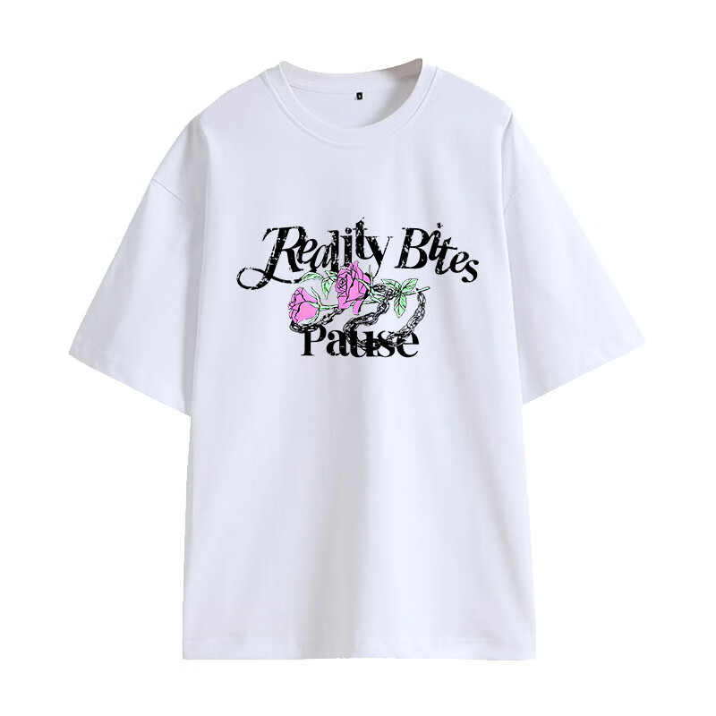 SJBOB陈哲远同款印花夏季上衣服纯棉透气百搭宽松休闲男女短袖T恤 白色 S