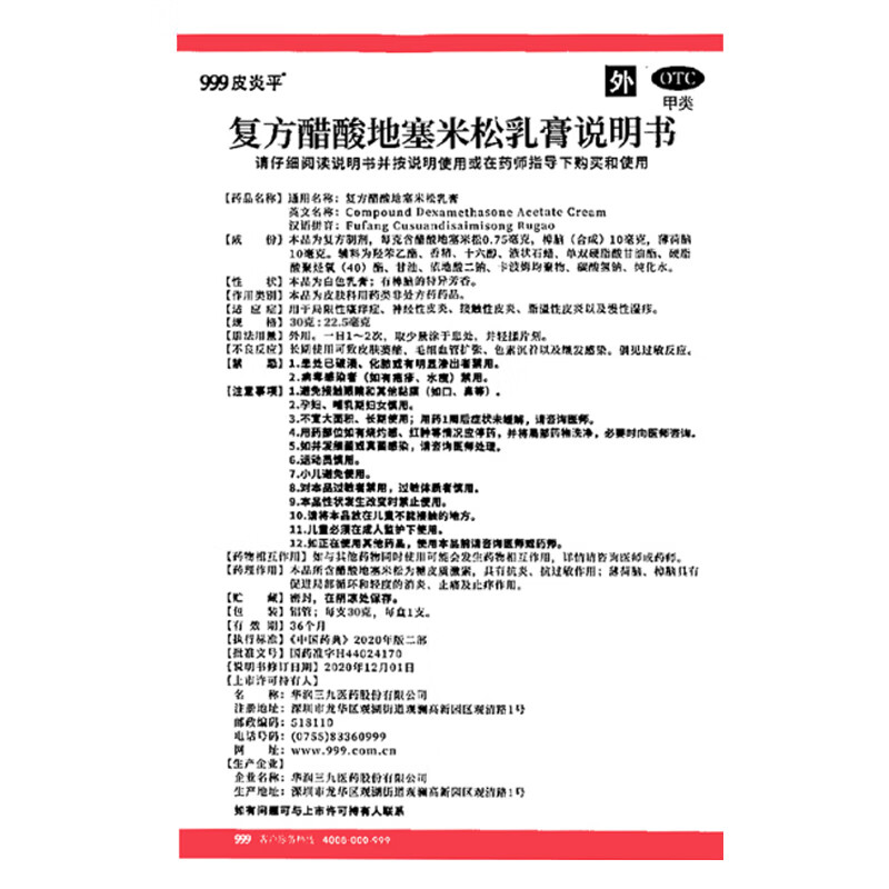 三九医药 999三九皮炎平复方醋酸地塞米松乳膏 30g:22.5mg 30g/支神经性皮炎 接触性皮炎脂溢性皮炎 慢性湿疹 皮肤瘙痒