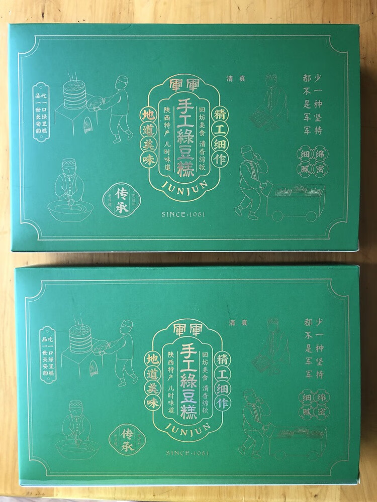 西安回民街绿豆糕清真纯手工端午糕点点心2盒套装 一