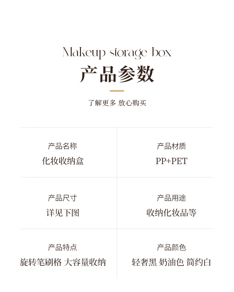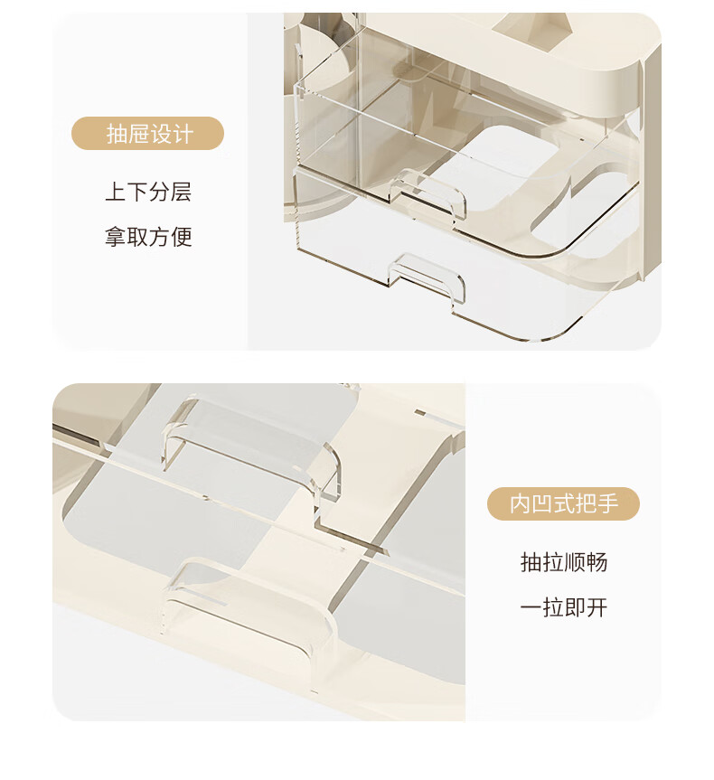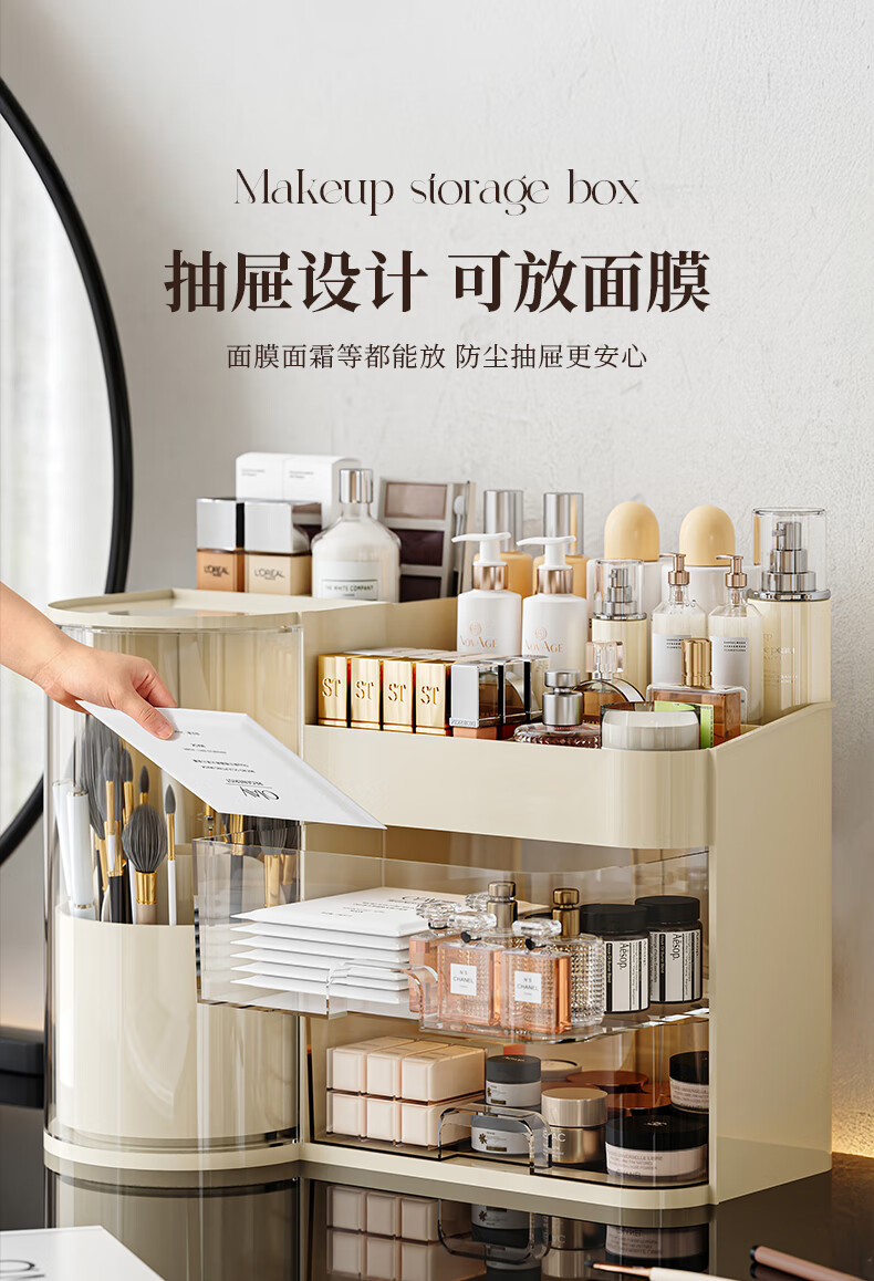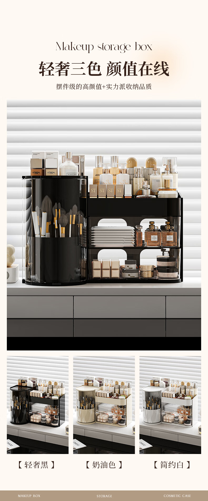 桌面化妆品收纳盒高级感旋转防尘化妆刷筒轻奢分格口红香水整理箱 【奶油白-旋转防尘刷筒】二合一化妆箱