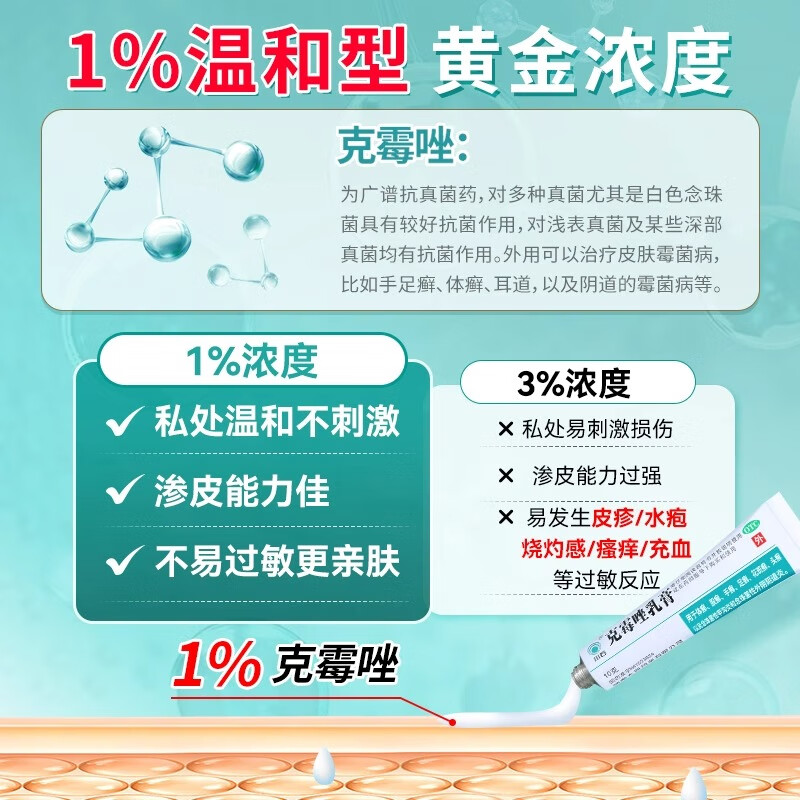 克霉唑乳膏妇科用药 女性阴部私处外涂软膏克霉挫男性女士霉菌性外阴阴道炎妇科炎症国药准字 1盒克霉唑乳膏妇科用药