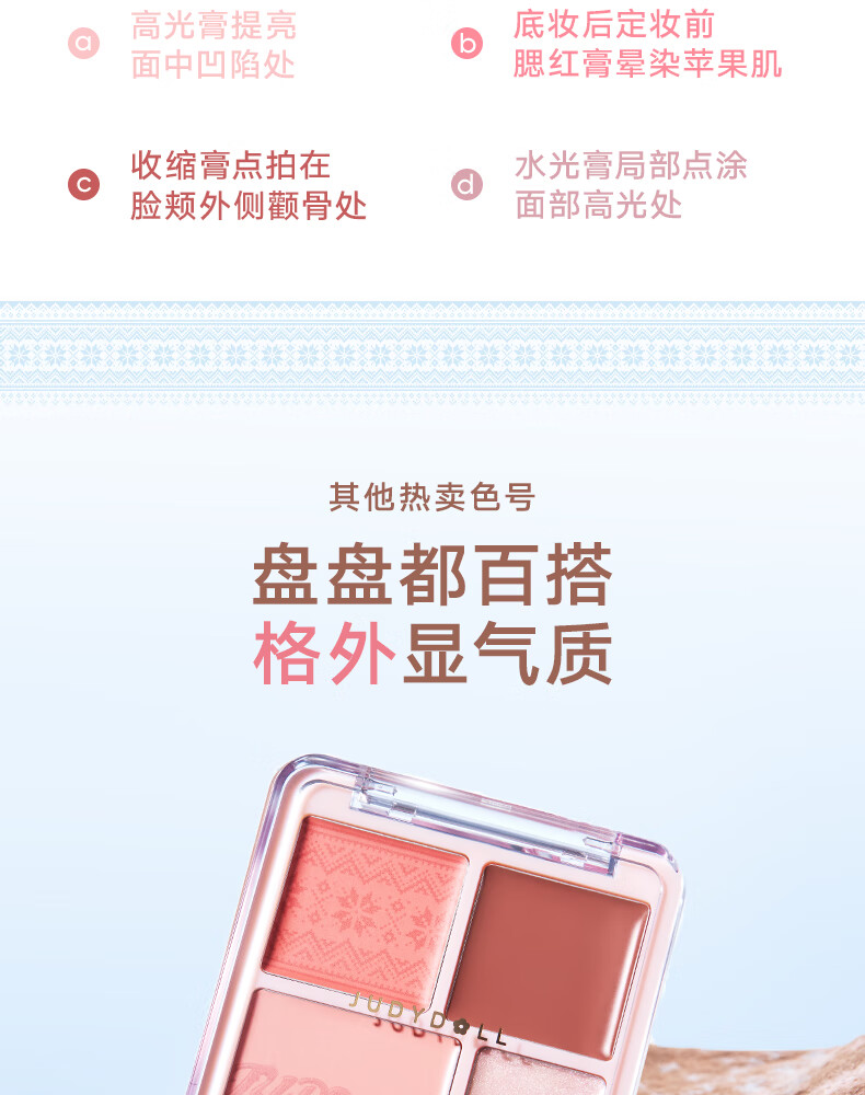 橘朵(Judydoll)腮红高光盘胭脂腮红膏腮红盘高光修容新年礼物07粉棕格调