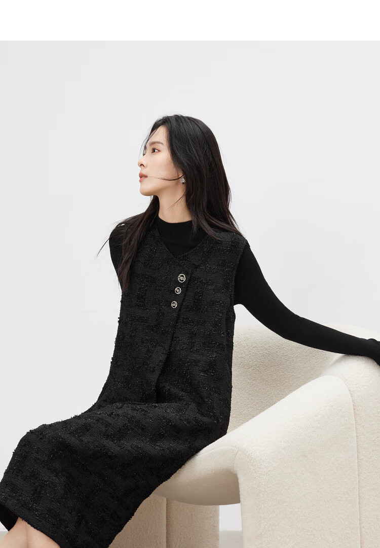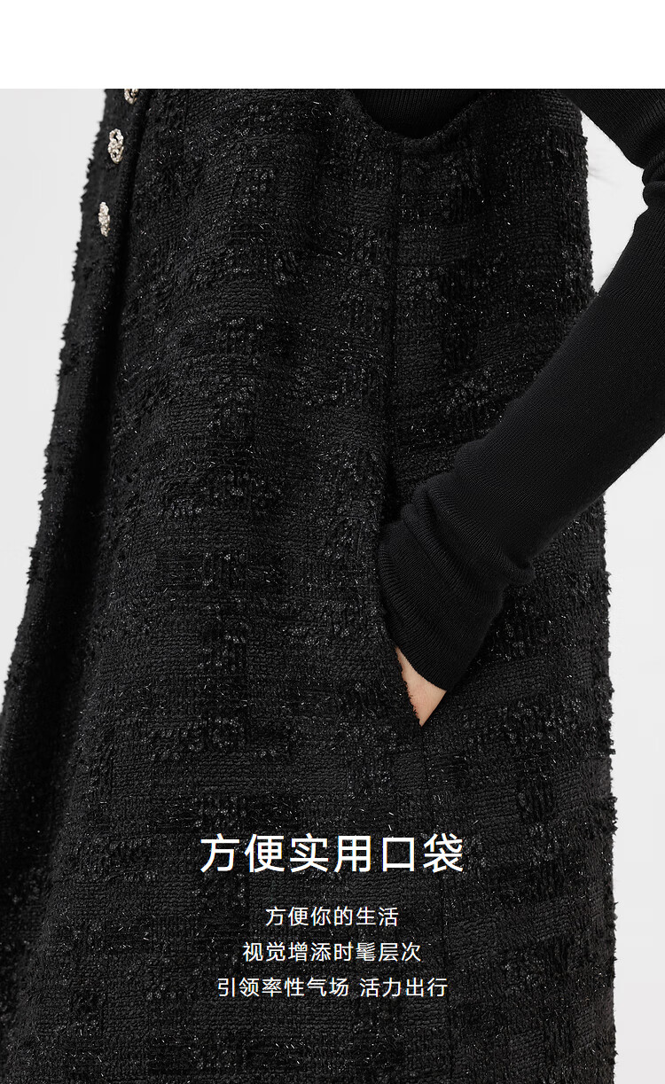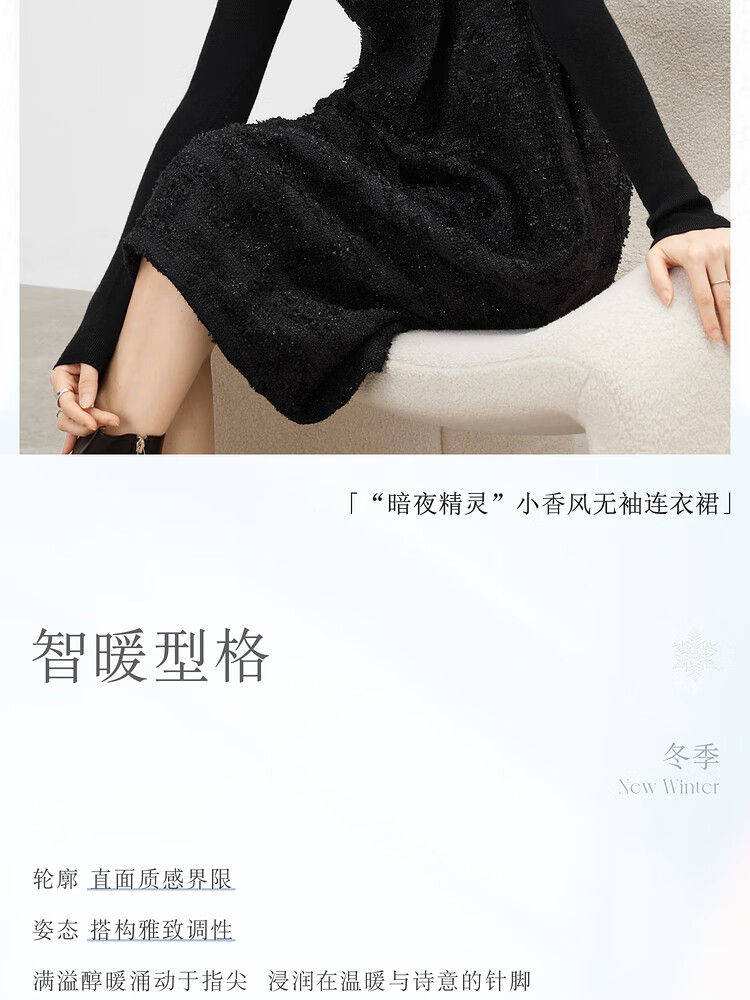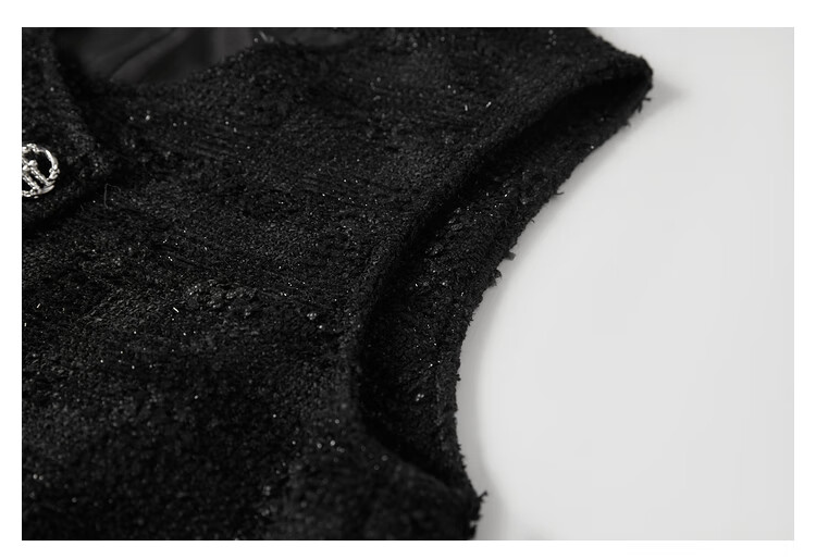 对白【杜鹃同款】黑色细闪小香风无袖连衣裙女2025冬季新款背心裙 经典黑 XL