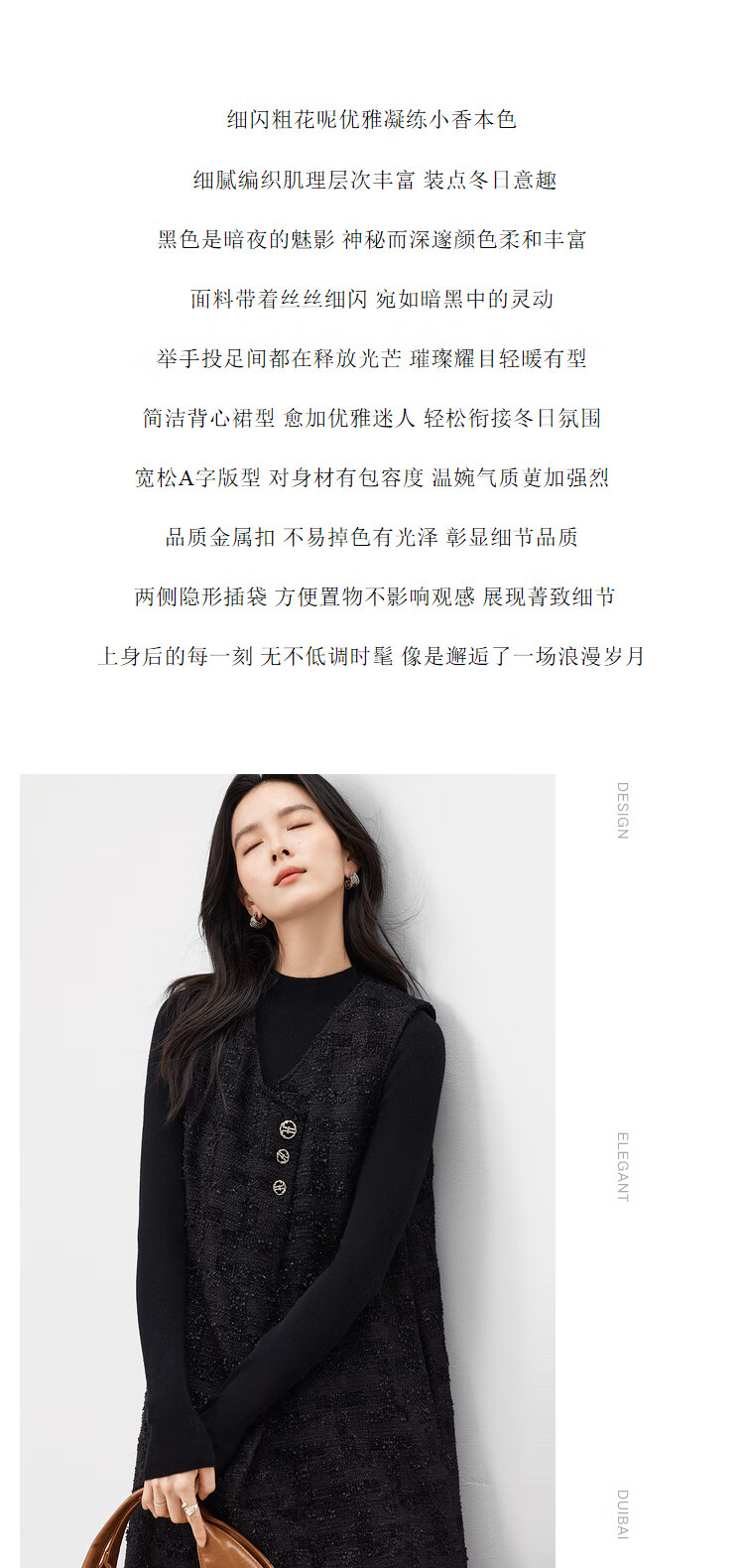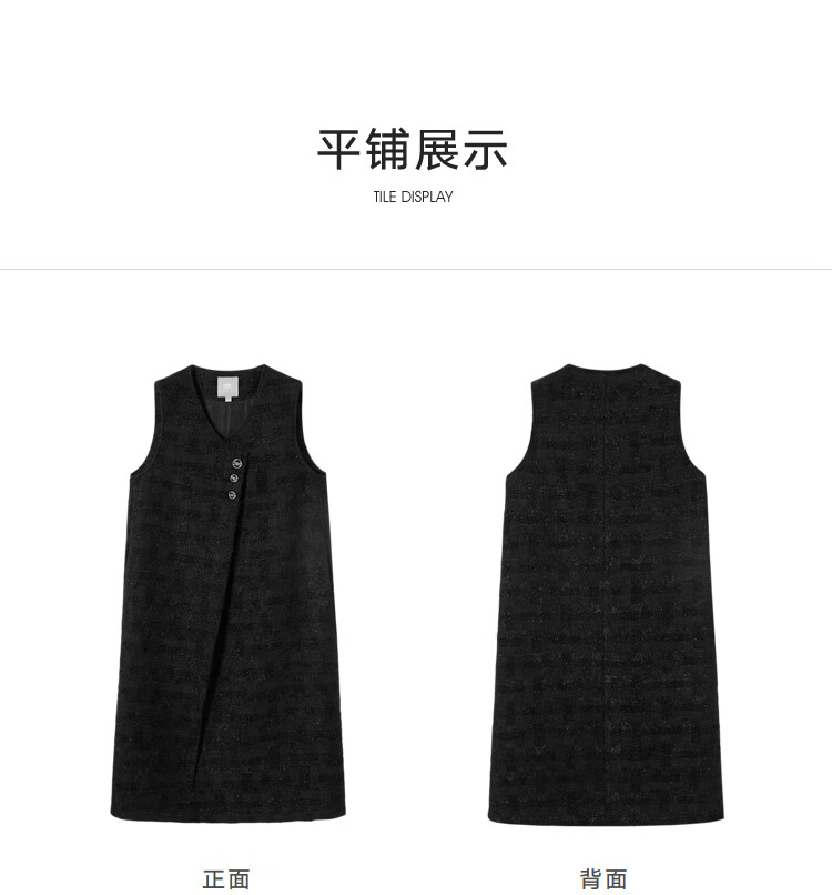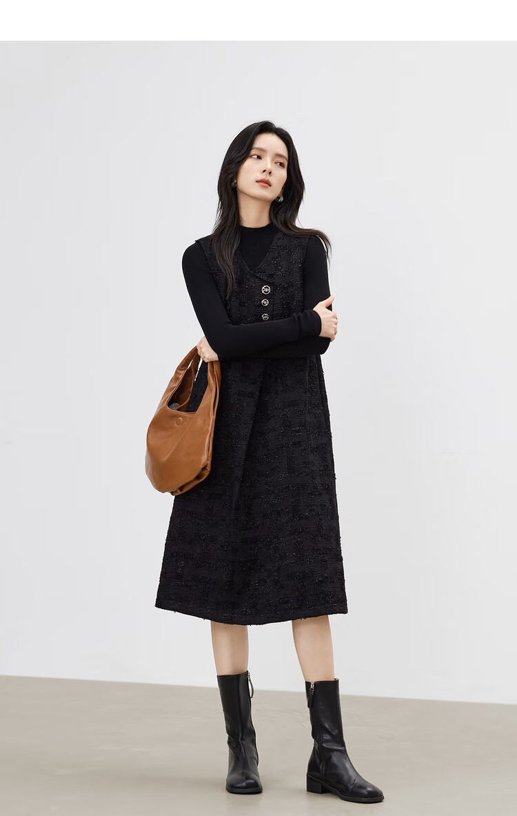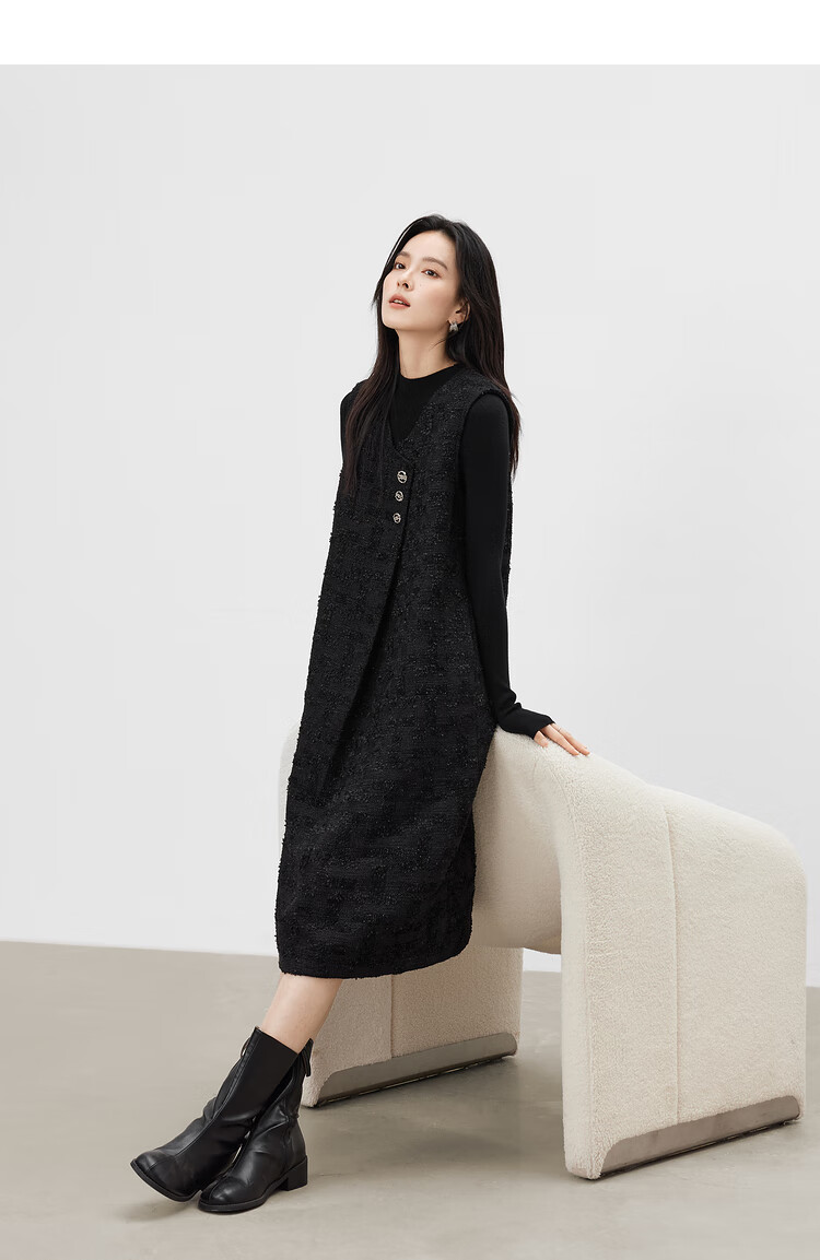 对白【杜鹃同款】黑色细闪小香风无袖连衣裙女2025冬季新款背心裙 经典黑 XL