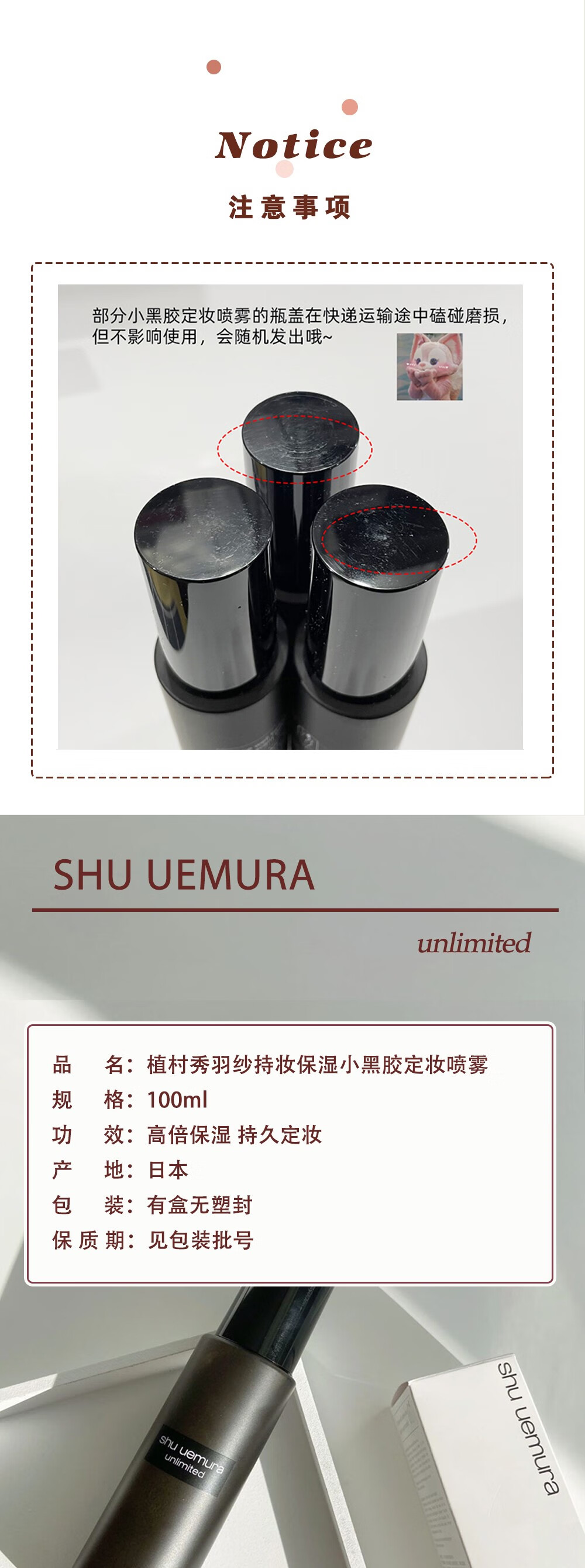 植村秀把底妆焊在脸上小黑胶水润保湿持妆定妆喷雾100ml不脱妆 100g原味哑光喷雾