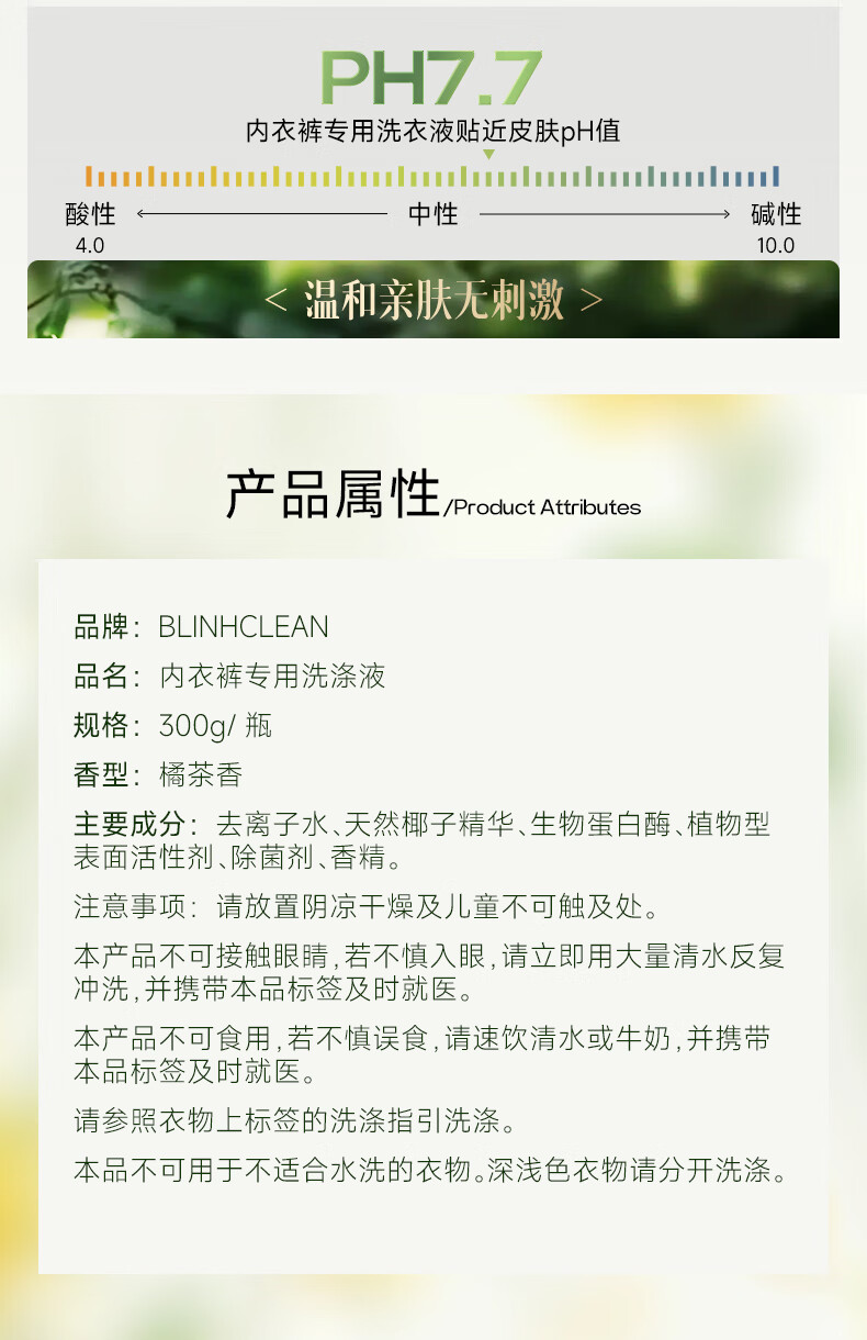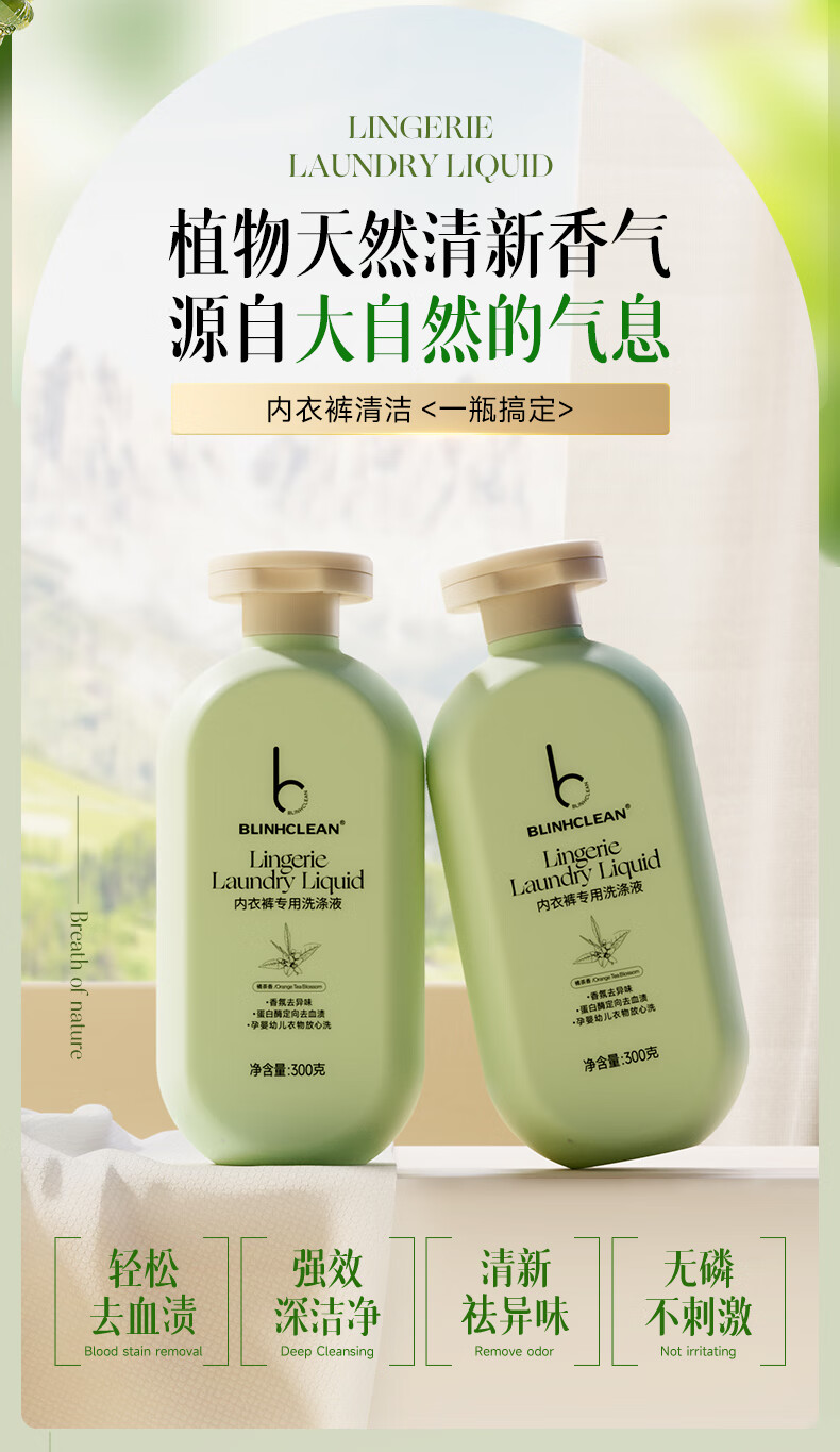 BLINHCLEAN内衣内裤专用洗衣液300g/瓶 内衣净生理期去血渍祛味抑菌除螨