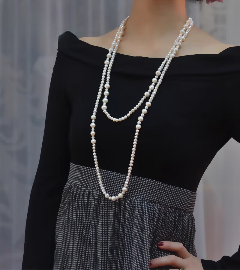 隐匿师珍珠项链长款露珠盈盈大小珠毛衣链专柜优雅白高品质珍珠 专柜优雅白高品质天然珍珠 120cm