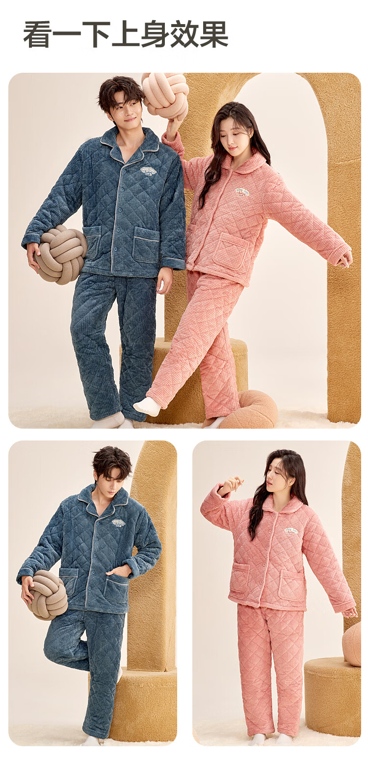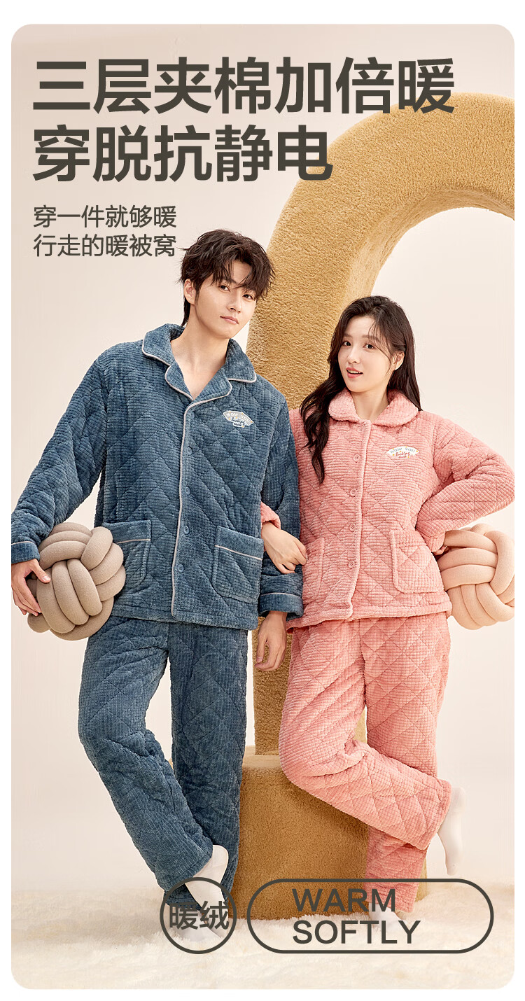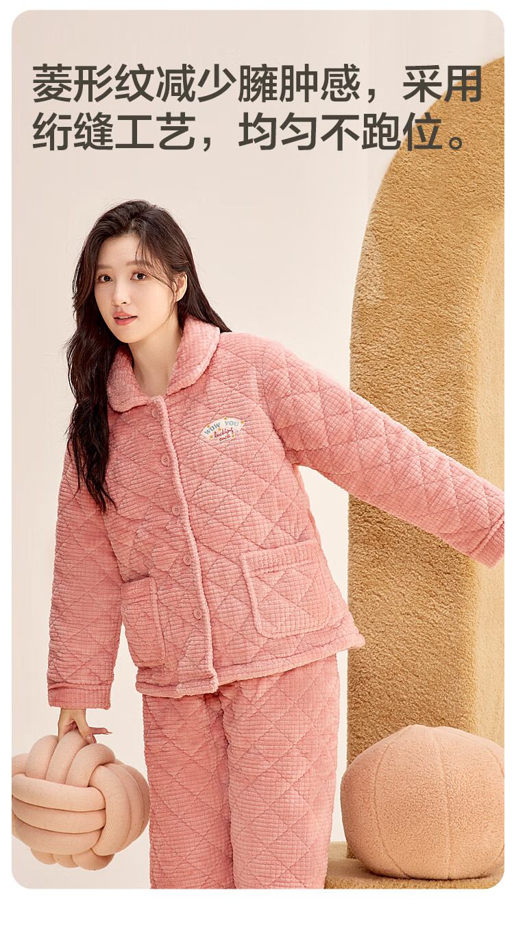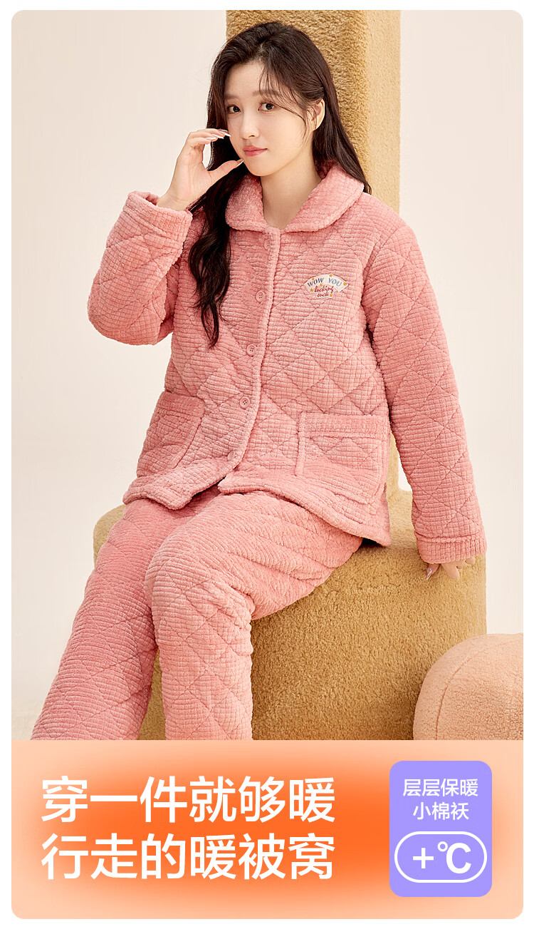 红豆居家夹棉睡衣女冬季专柜款三层加厚撞色贝贝绒可外穿女士家居服