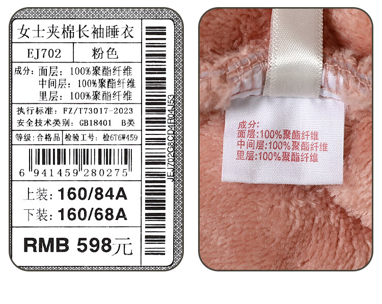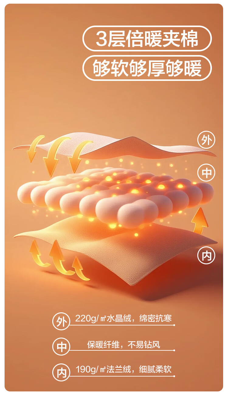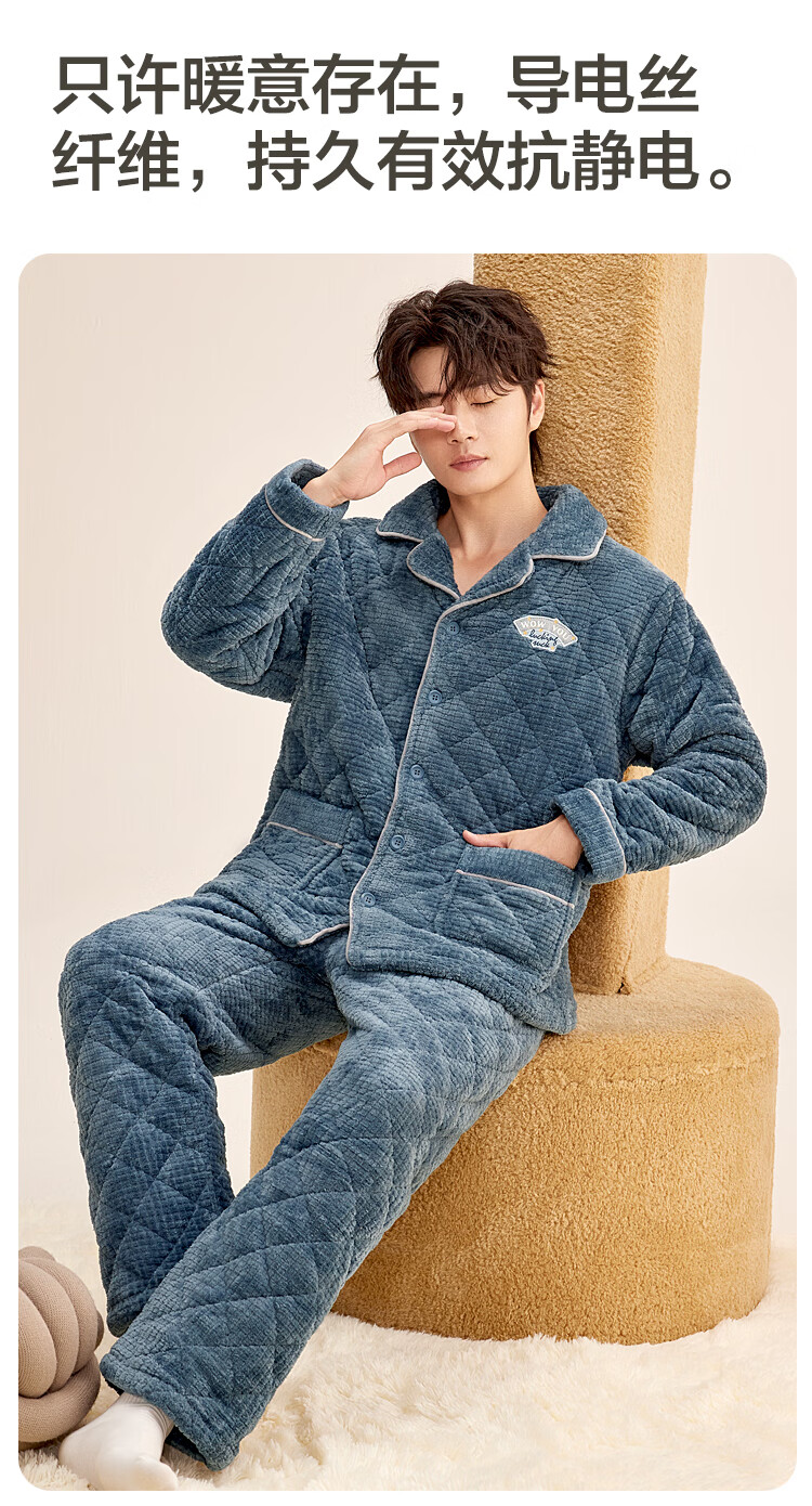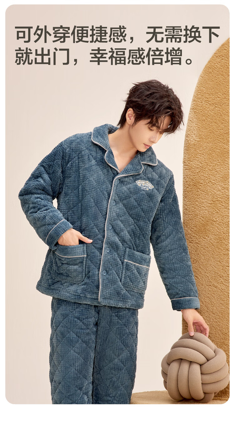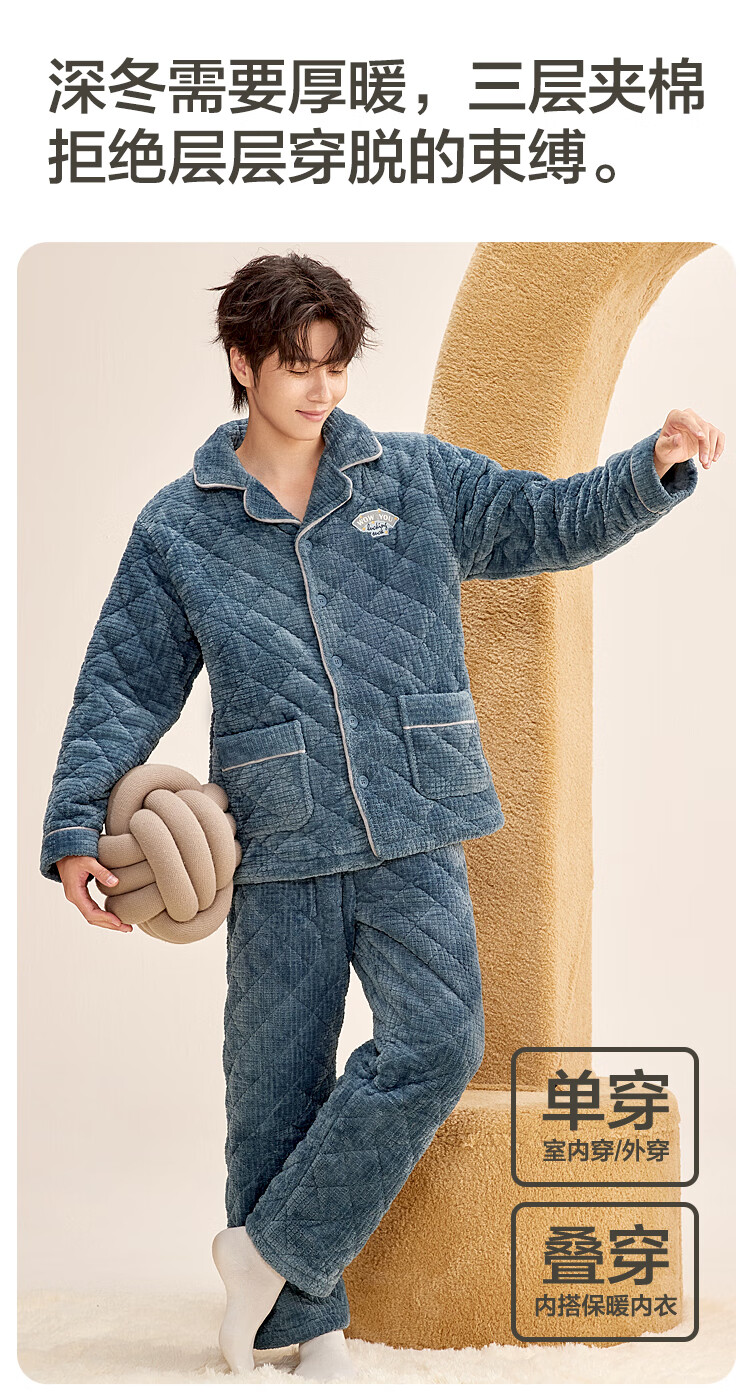 红豆居家夹棉睡衣女冬季专柜款三层加厚撞色贝贝绒可外穿女士家居服