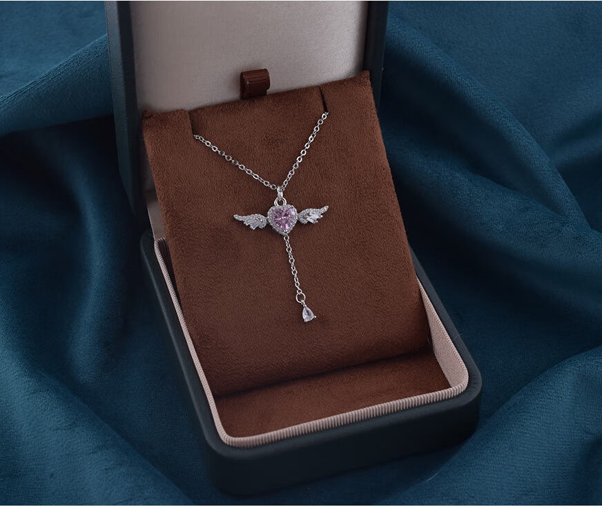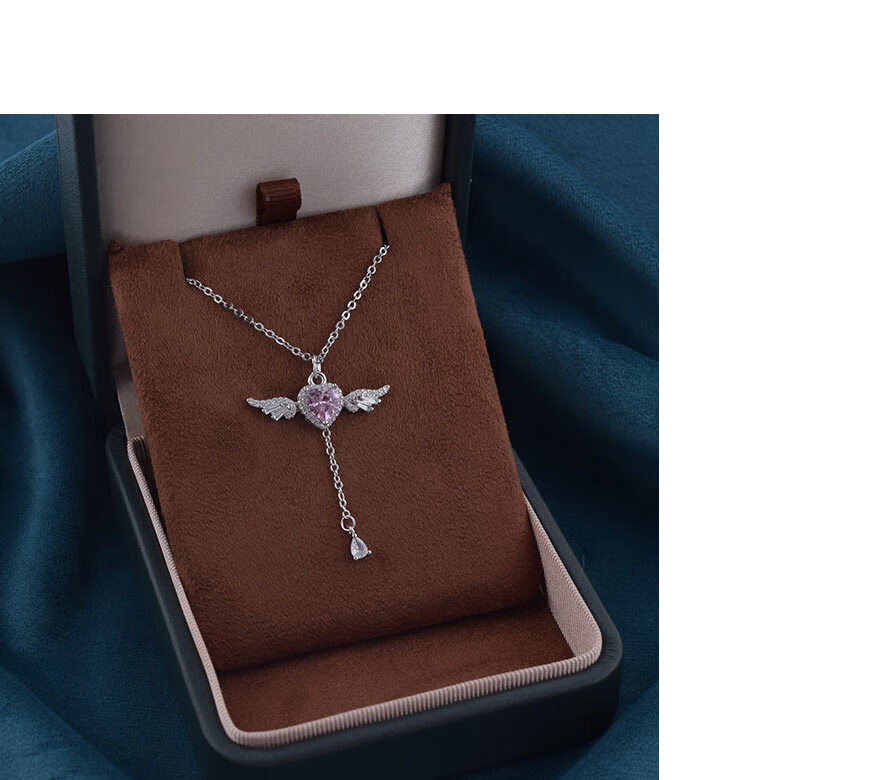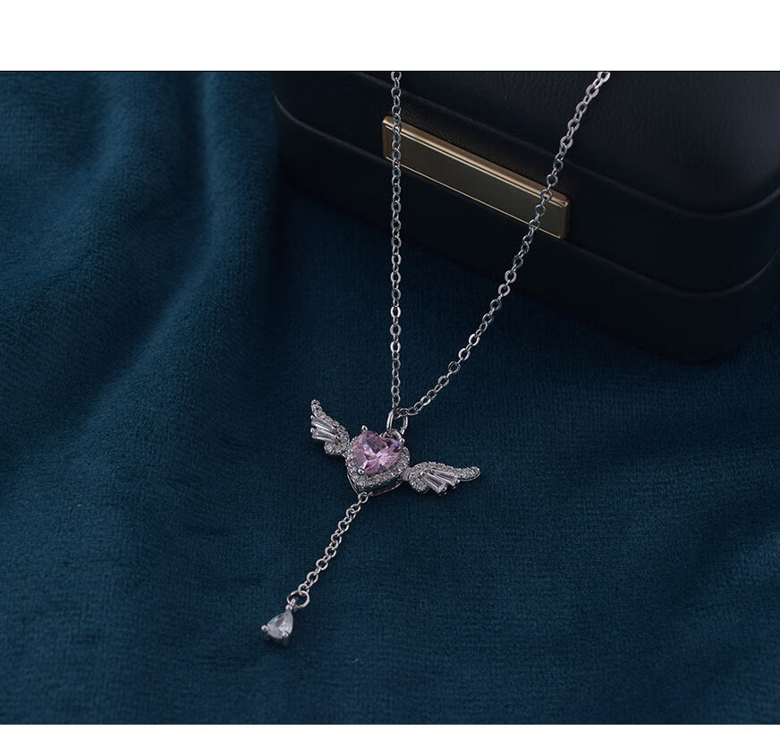 胖东来品质心型银项链「丘比特之心」s925银爱心项链女轻奢小众感 新版抽拉丘比特项链(粉)+绒盒