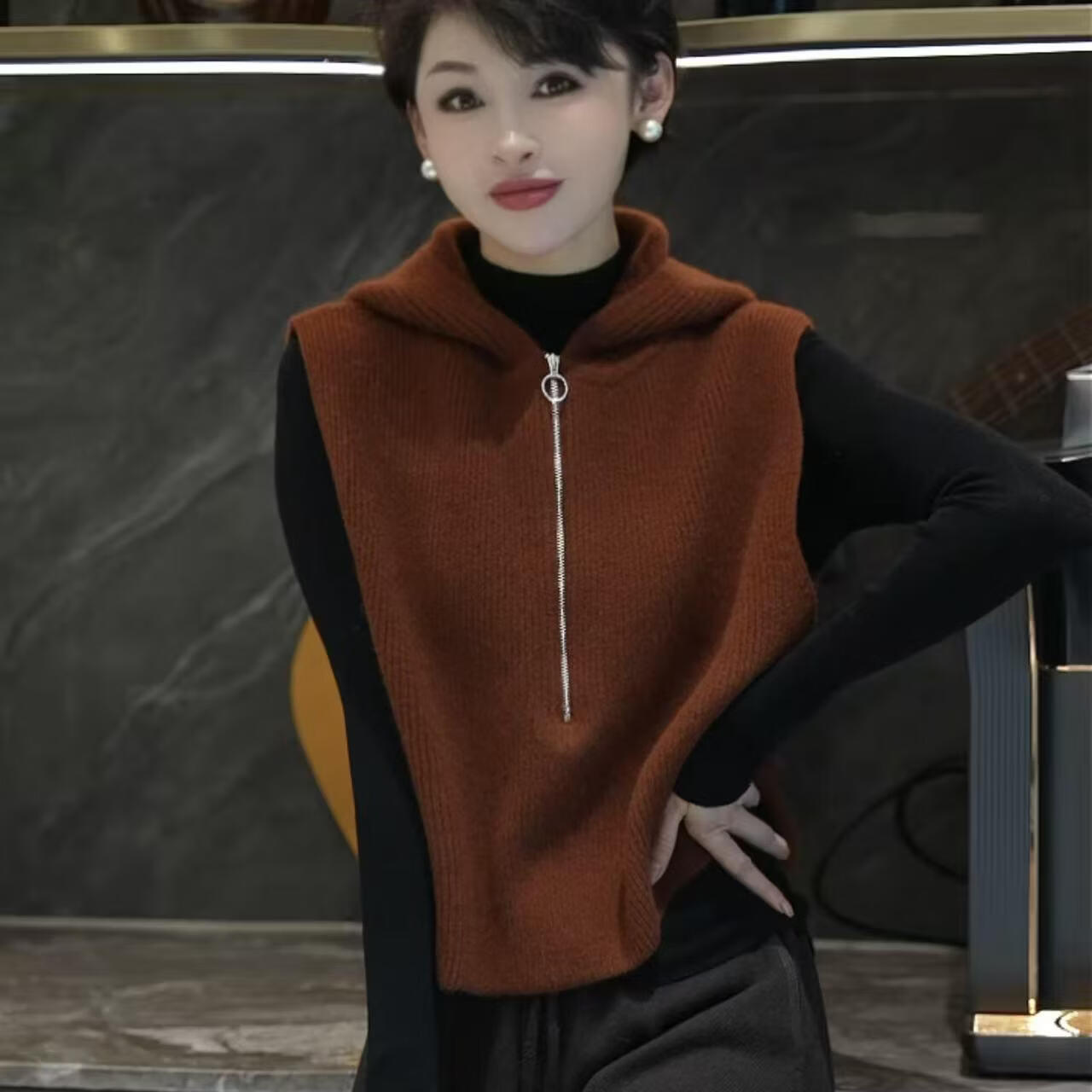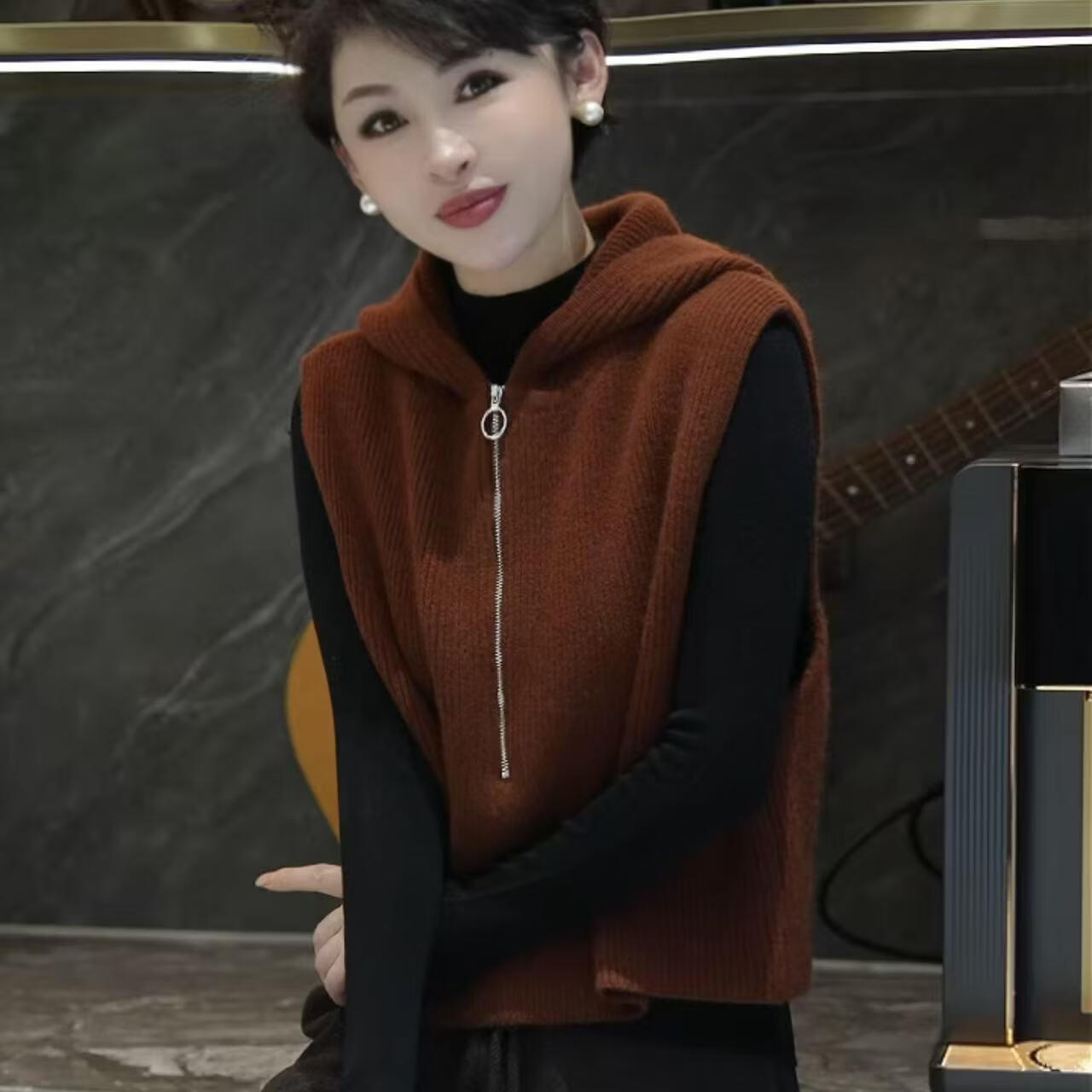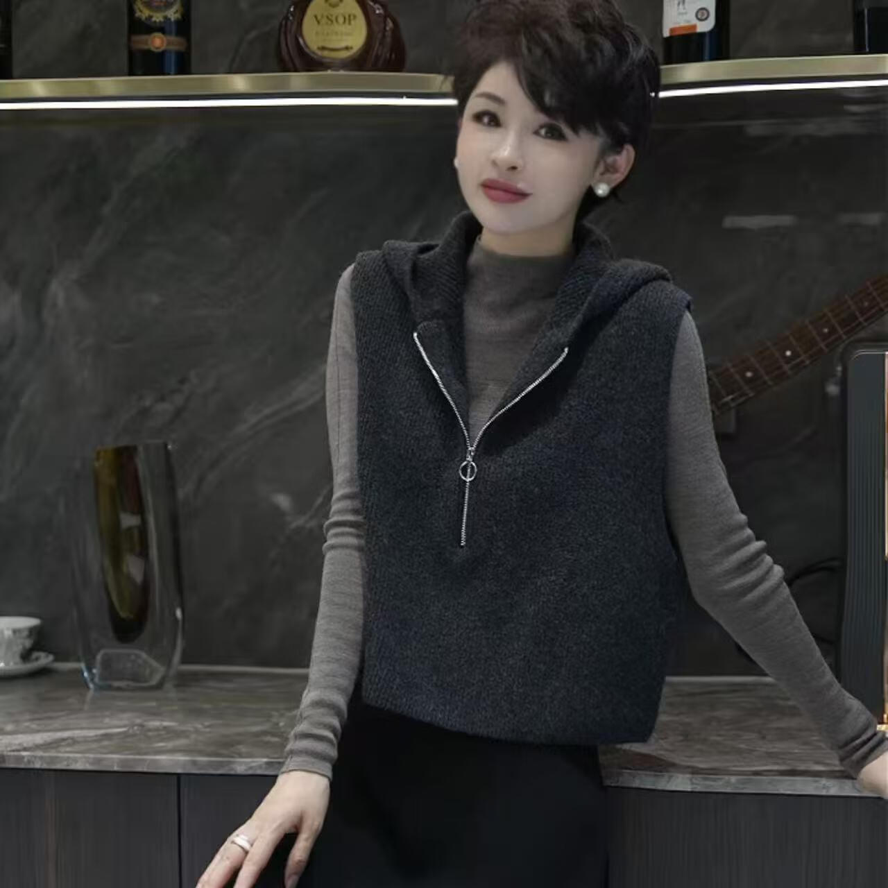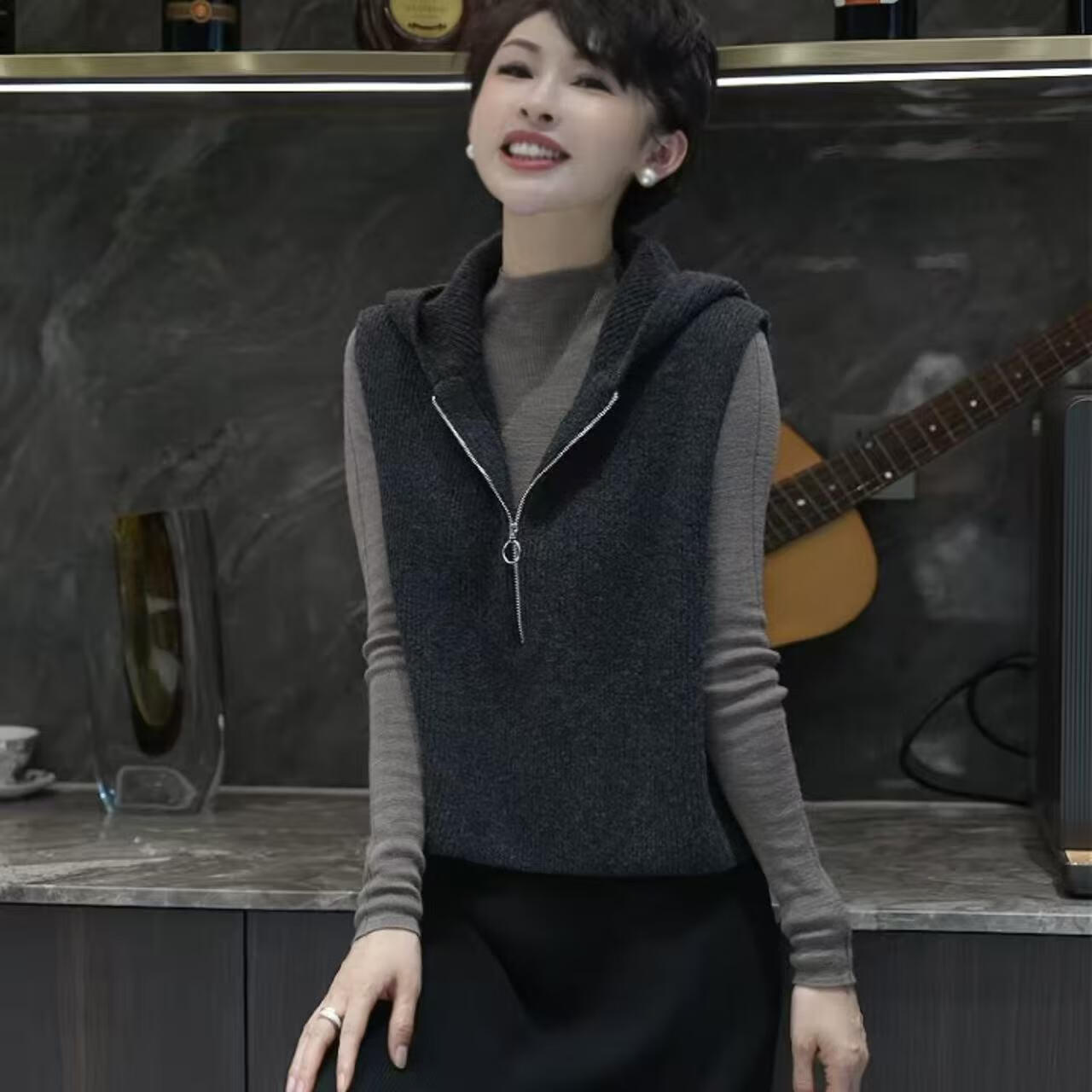 【松弛感】欧货高端纯色无袖针织马甲2025秋季连帽设计感马夹上衣 深灰色【正肩/潮流/新品/高级】 均码 【85到145斤】