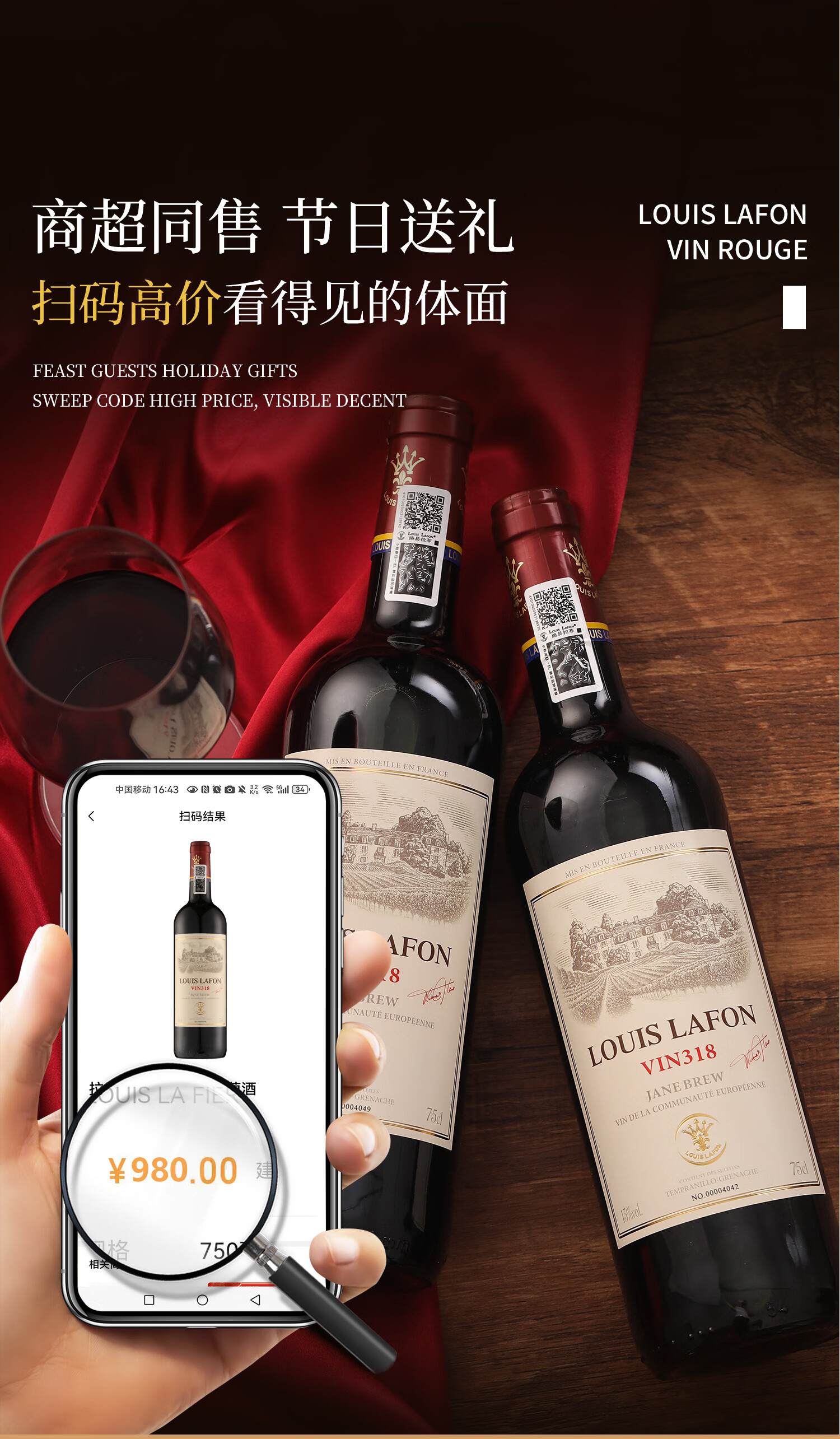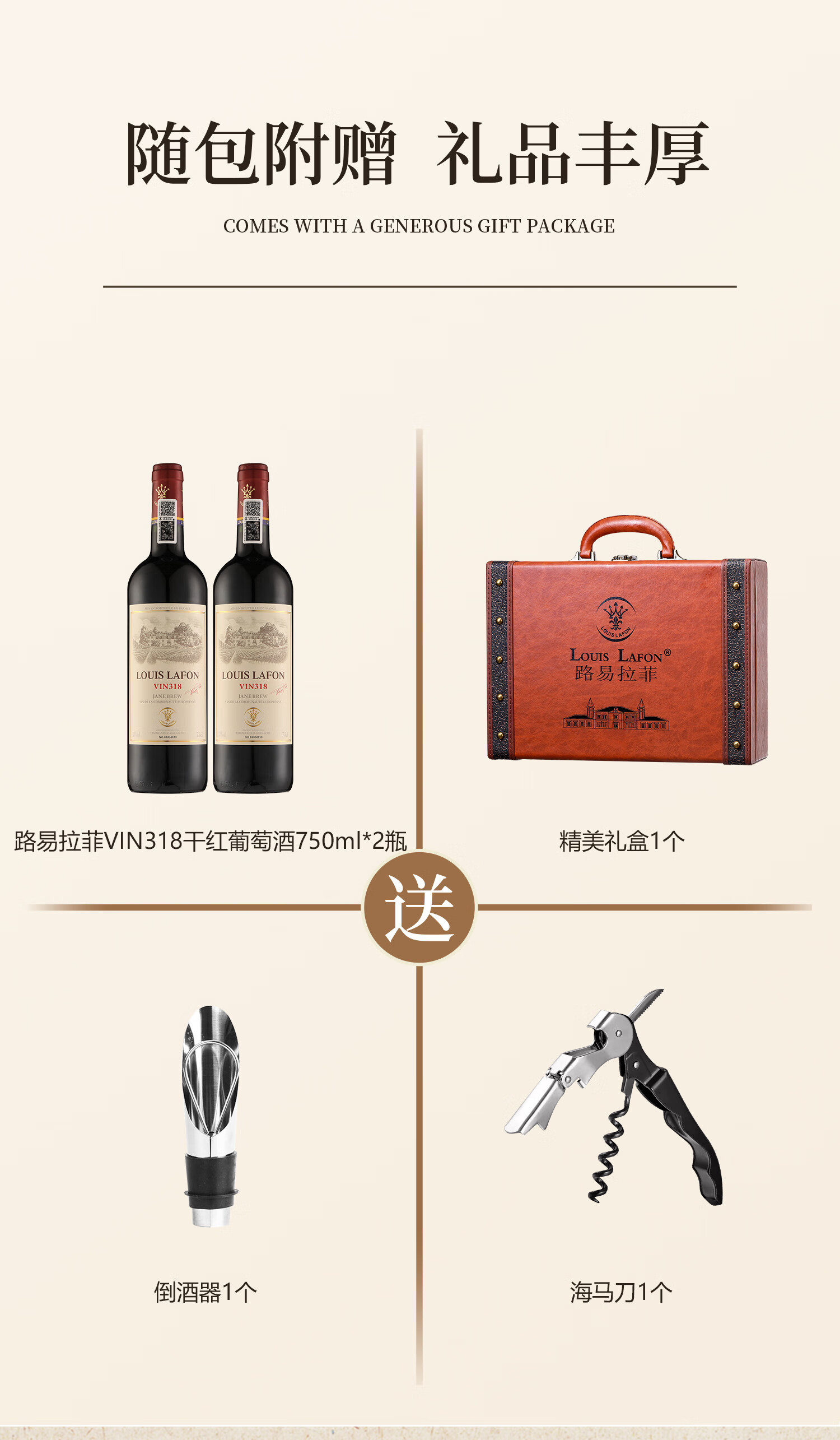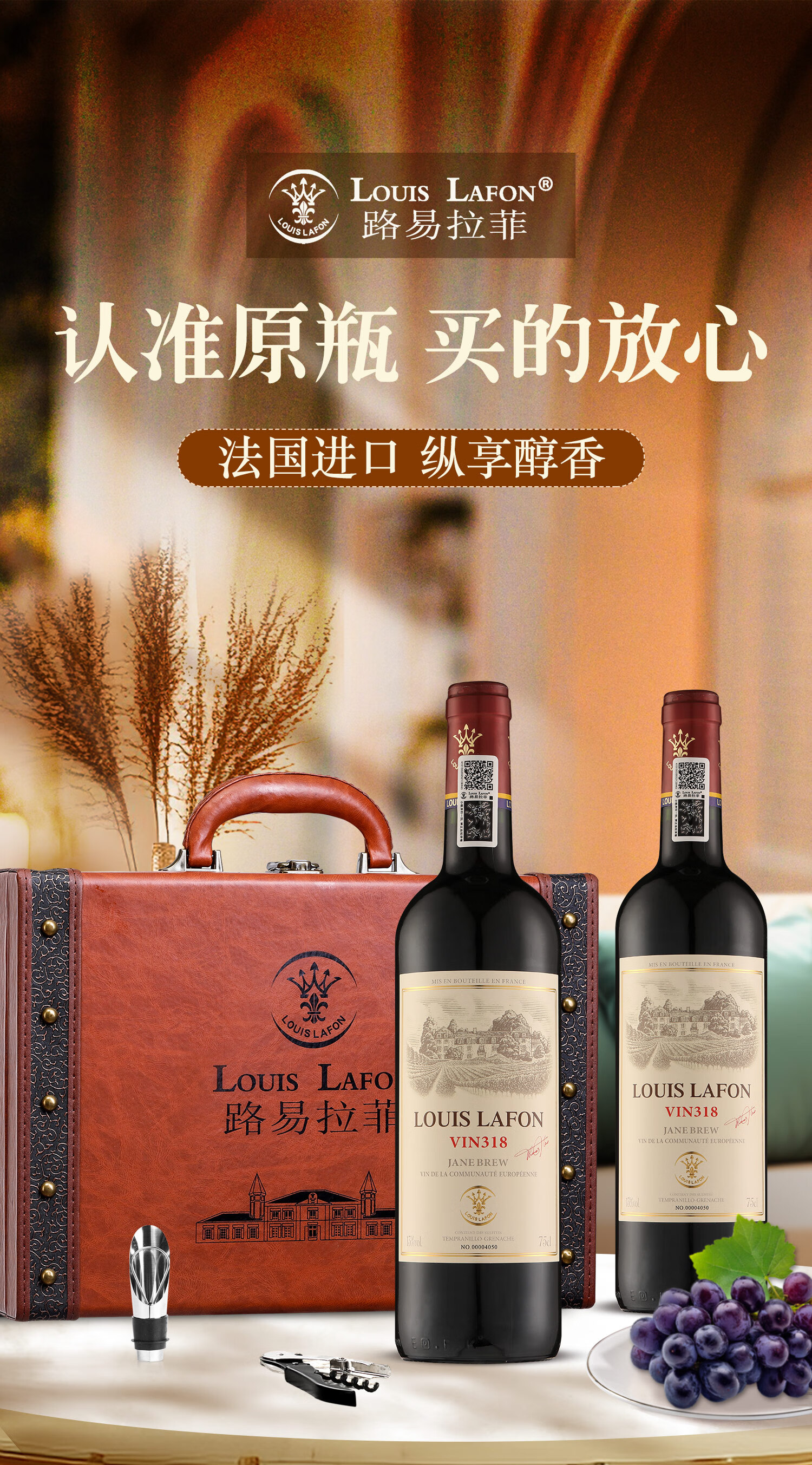 路易拉菲(LOUIS LAFON)法国原瓶进口红酒礼盒VIN318歌海娜干红葡萄酒750ml*2瓶年货送礼