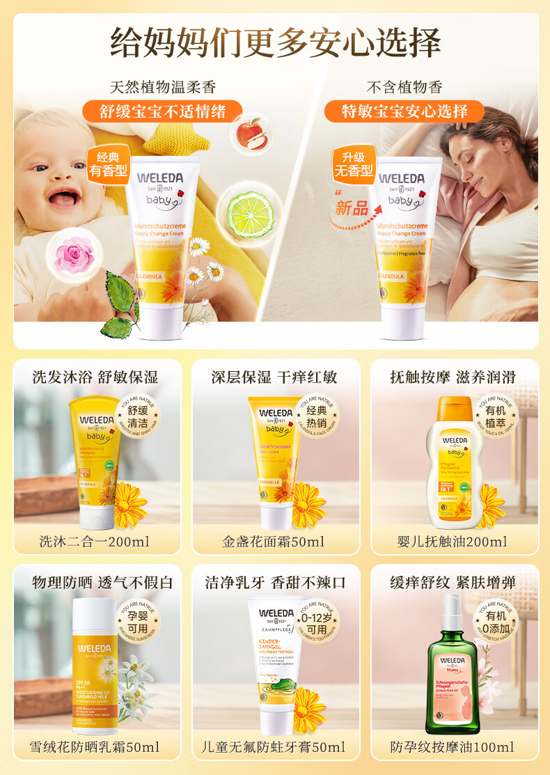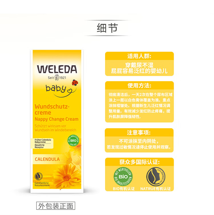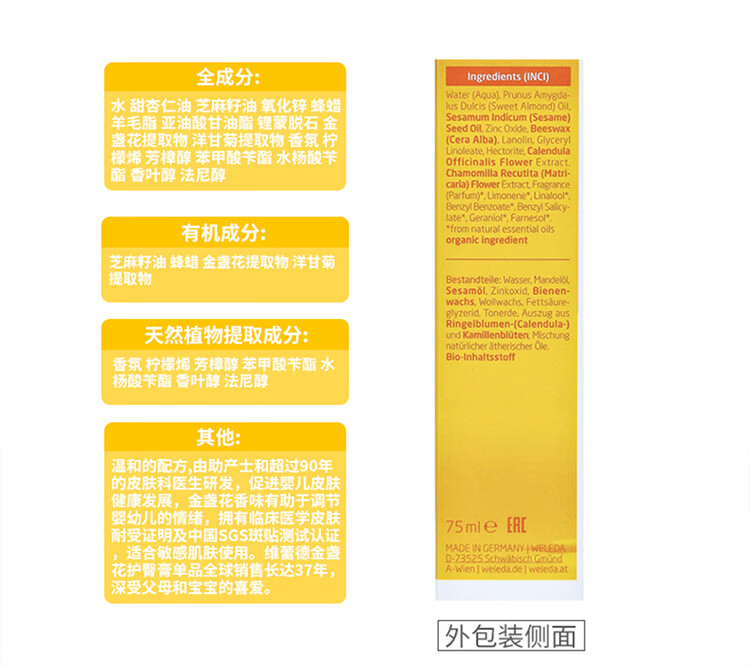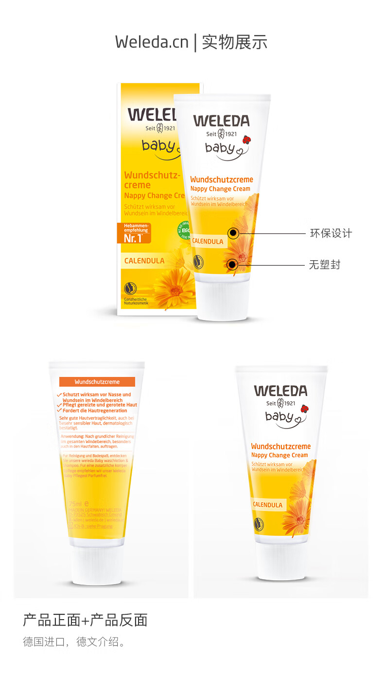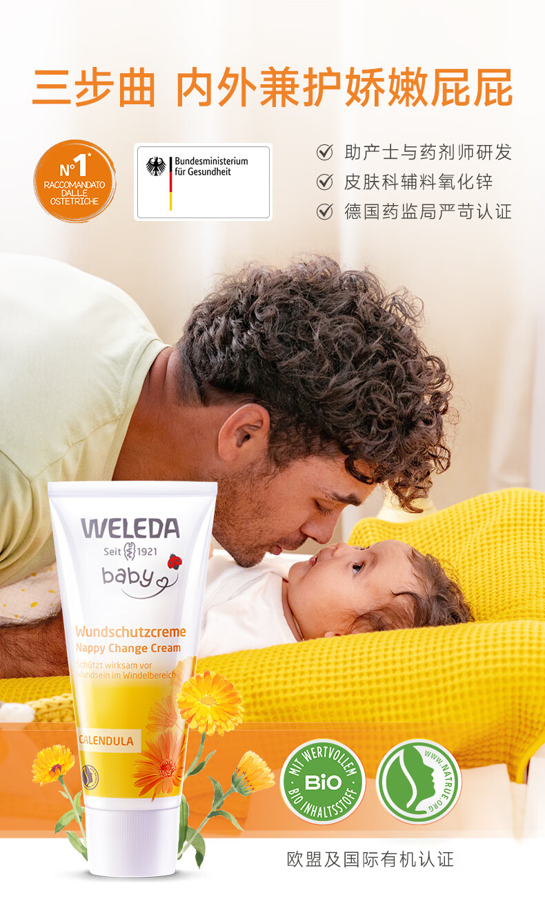 维蕾德(WELEDA)护臀膏婴儿屁屁乐膏金盏花护臀膏新生儿宝宝护臀霜75ml