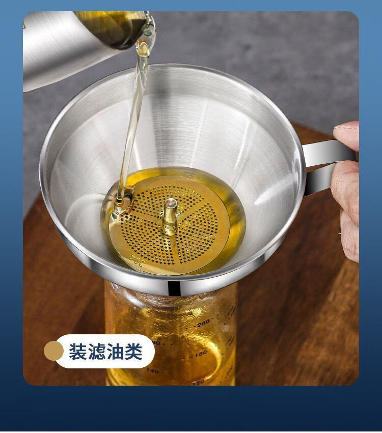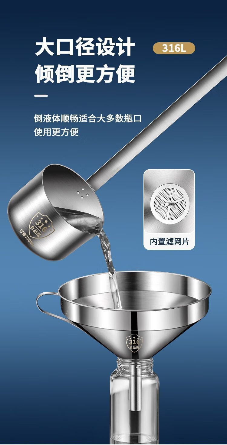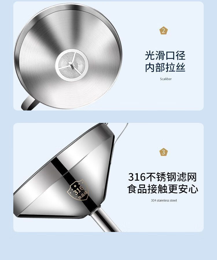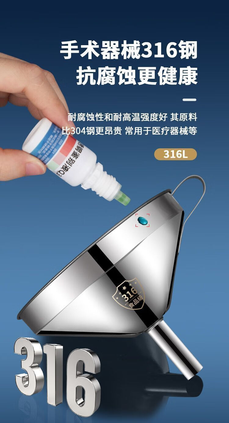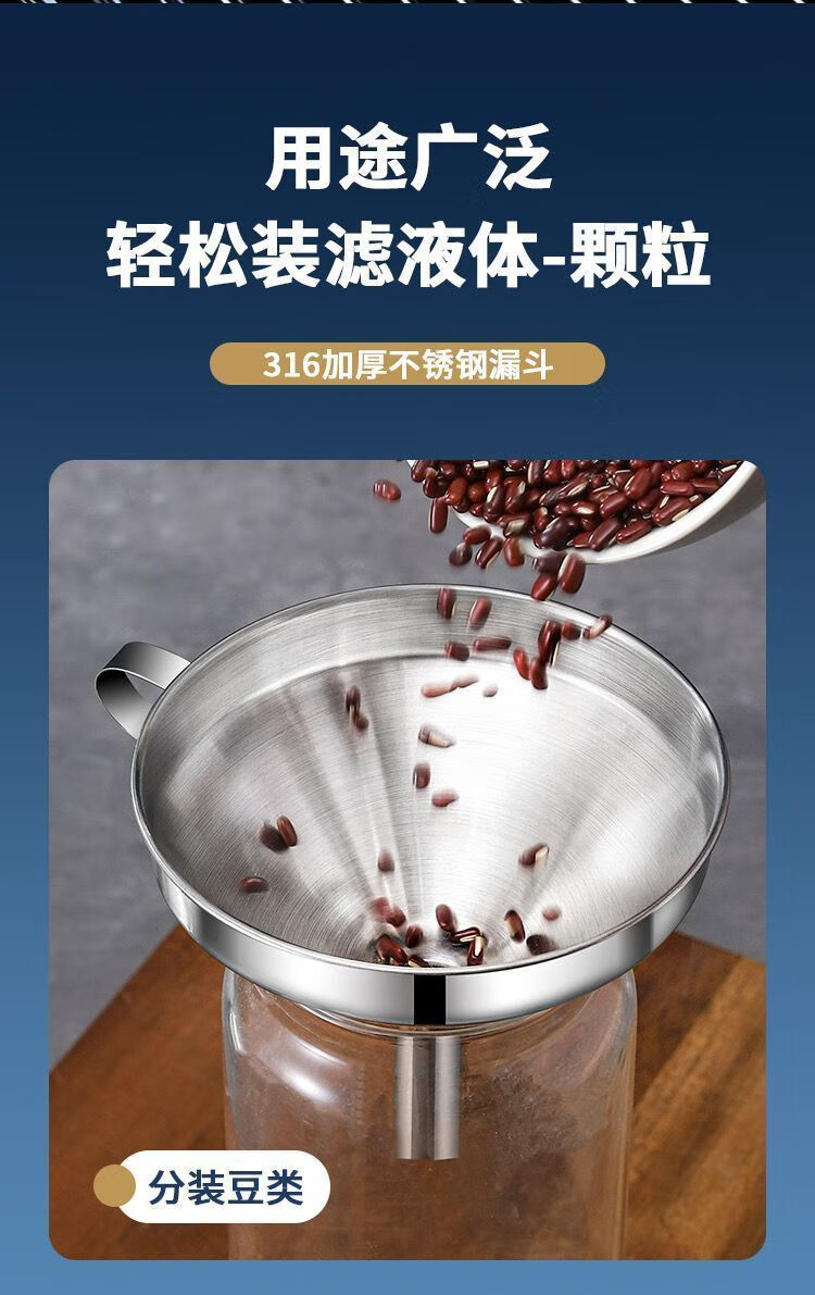 筏芯不锈钢漏斗食品级316小口径家用油漏分装酒瓶斗厨房装瓶倒油过滤 316-特厚食品级(送:粗孔+细孔滤网) 【斗口12.5cm+下口1.5cm】小号