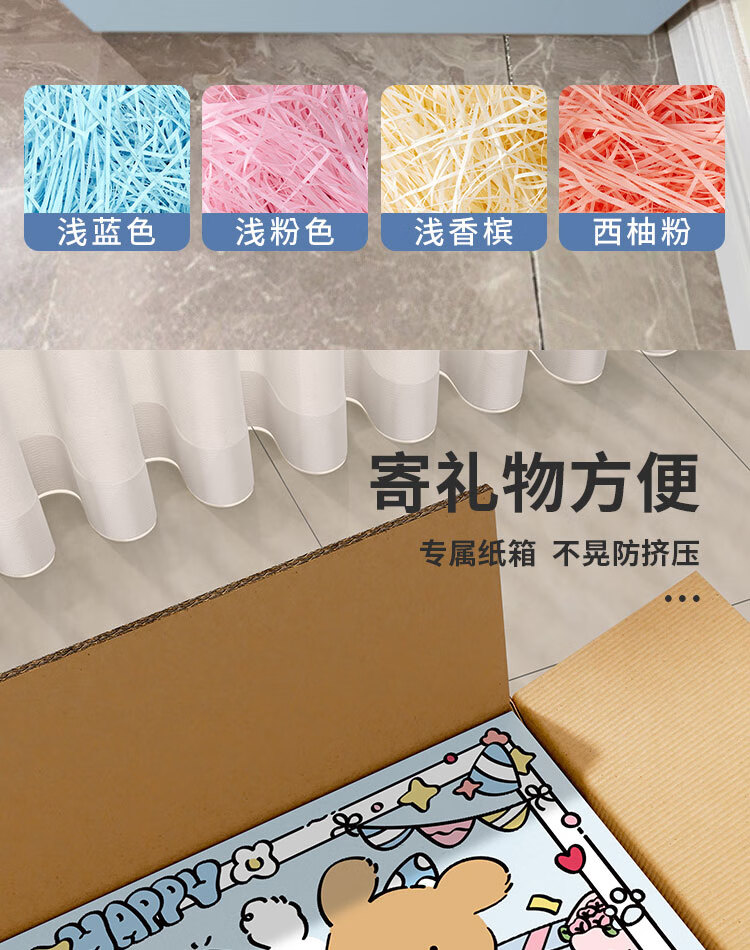 礼美达小狗新年生日礼物盒礼品礼物包装纸礼盒空盒子纸箱成人礼生日大号 拉菲草+粉色小狗包装纸 粉色贴贴小狗小号27*22*20