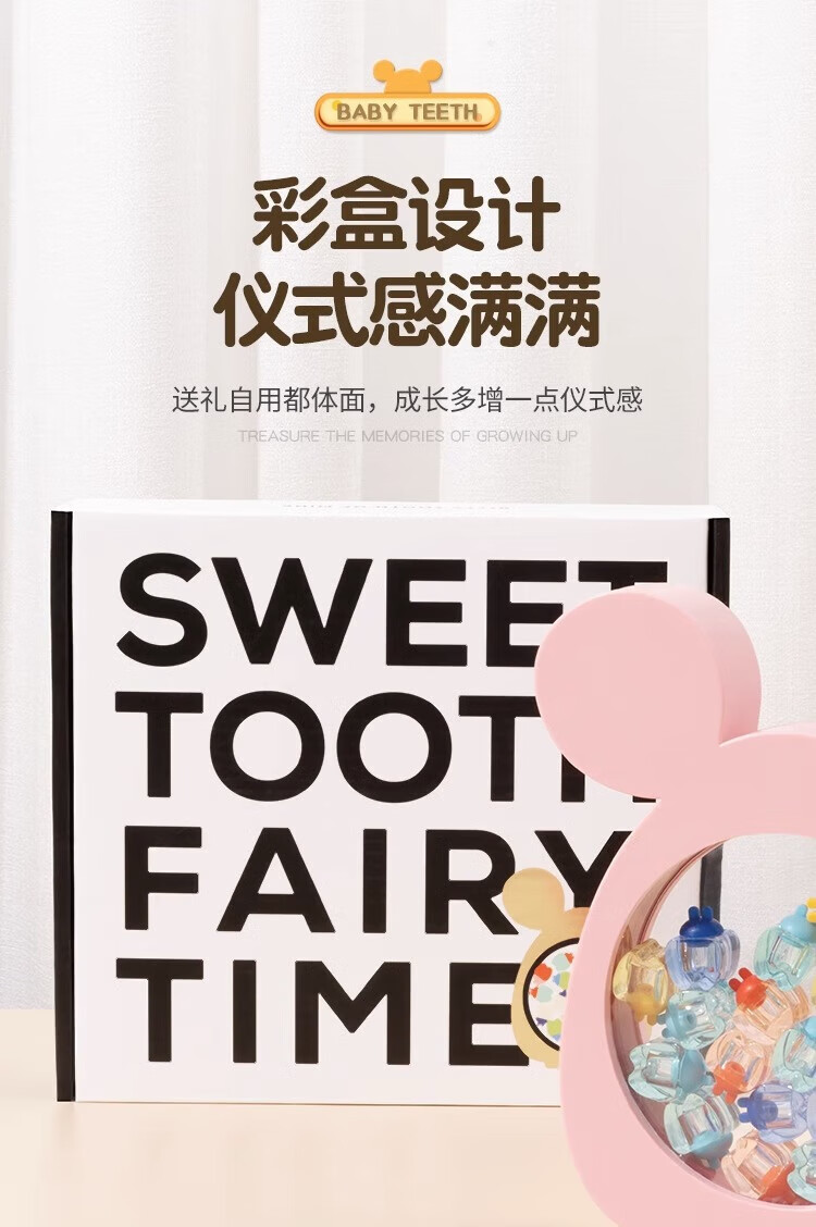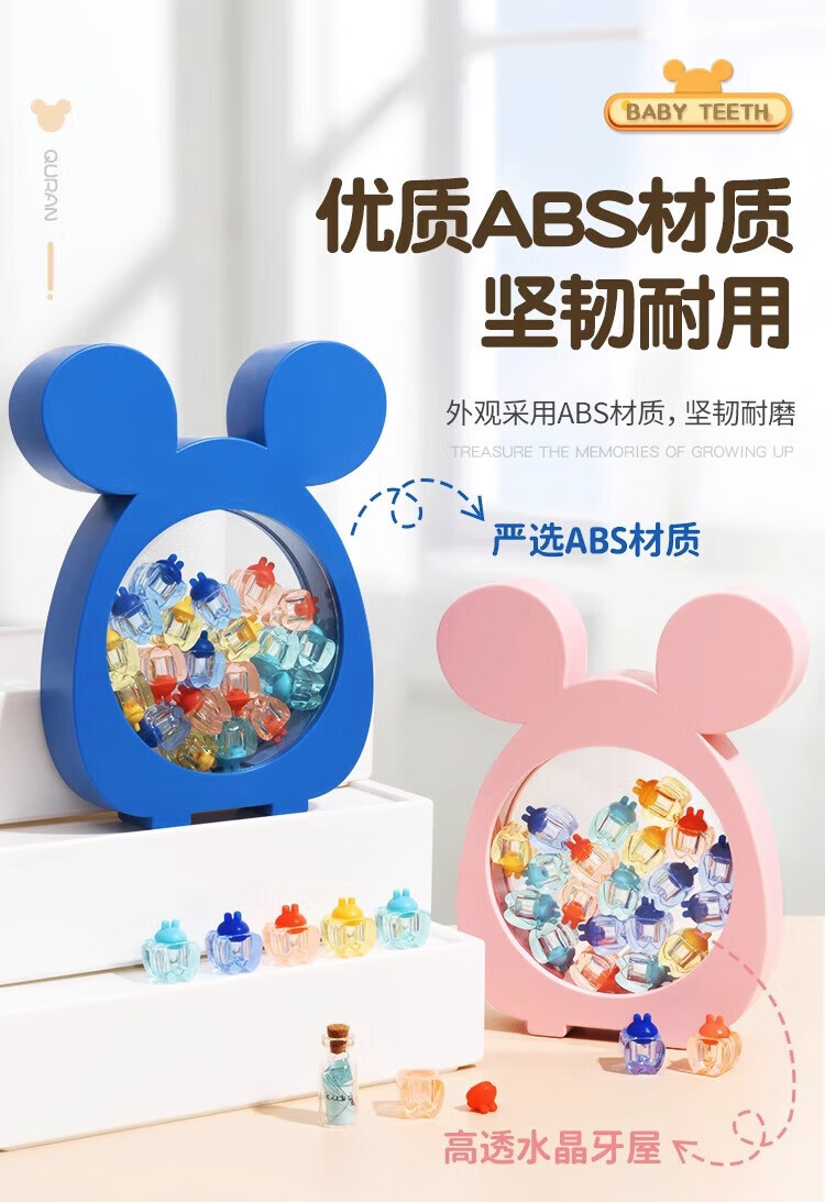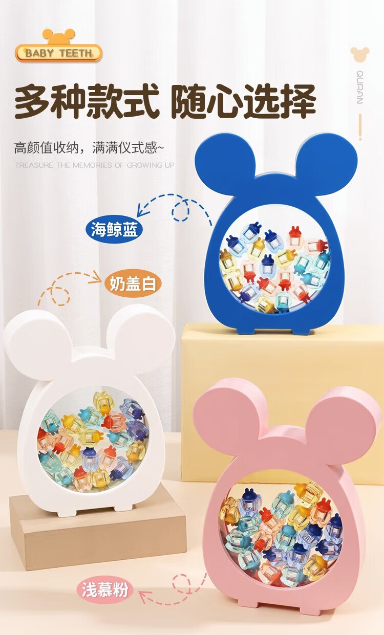 RSRDDY乳牙收纳盒男孩儿童牙齿收集盒女孩掉装换保存牙的小盒子 海鲸蓝-加厚牙盒送礼盒+胎毛祝愿瓶