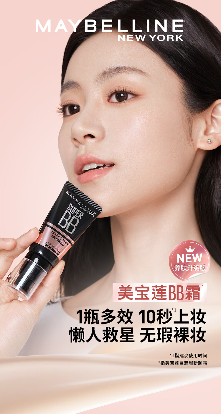 美宝莲巨遮瑕BB霜遮瑕提亮肤色裸妆素颜霜粉底液2支装 象牙色*2新年礼物