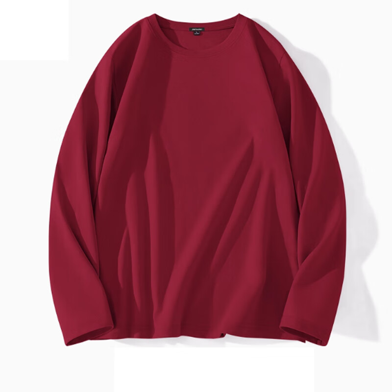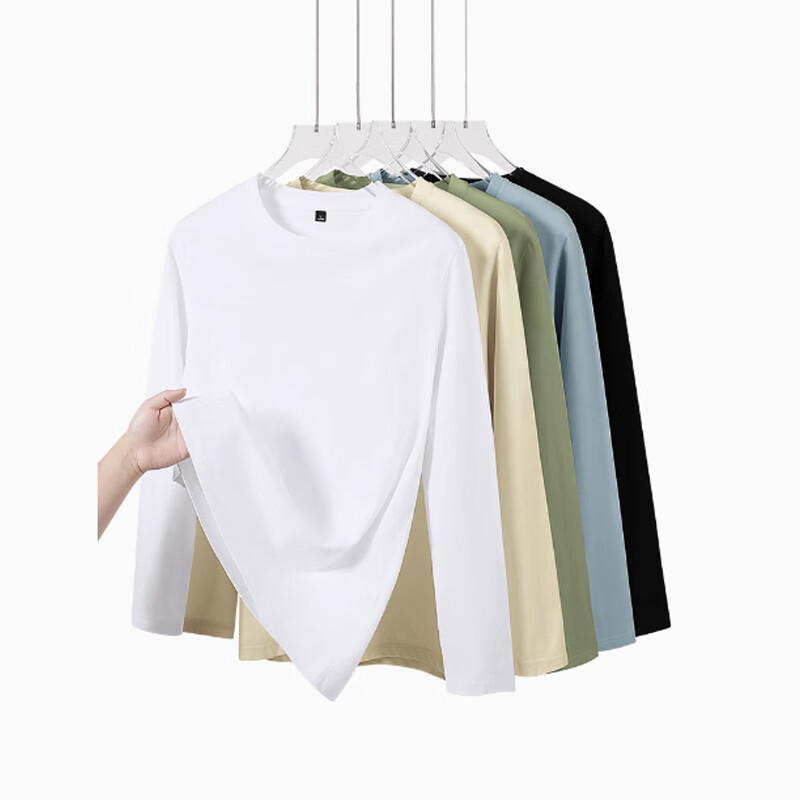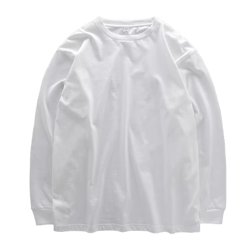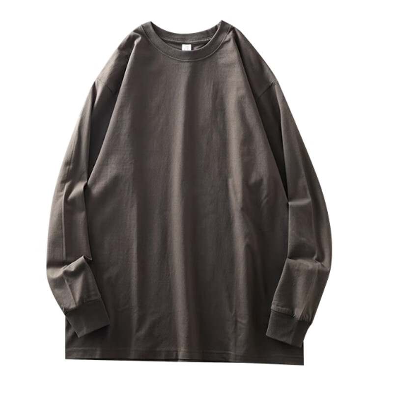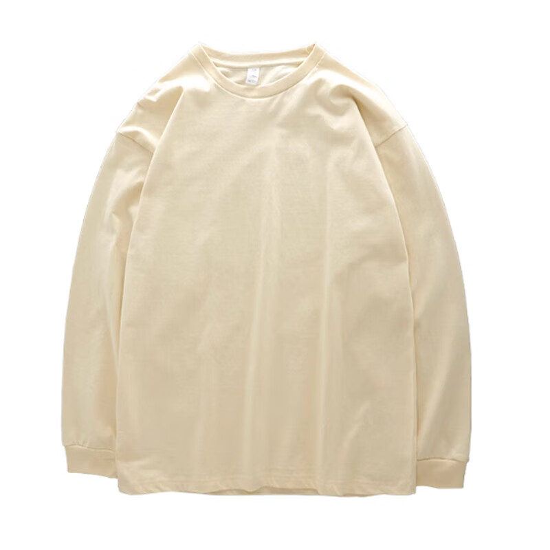 春秋季长袖t恤男士休闲宽松圆领内搭上衣男装纯色百搭打底衫潮LYK 长袖纯色T恤-杏色 3XL