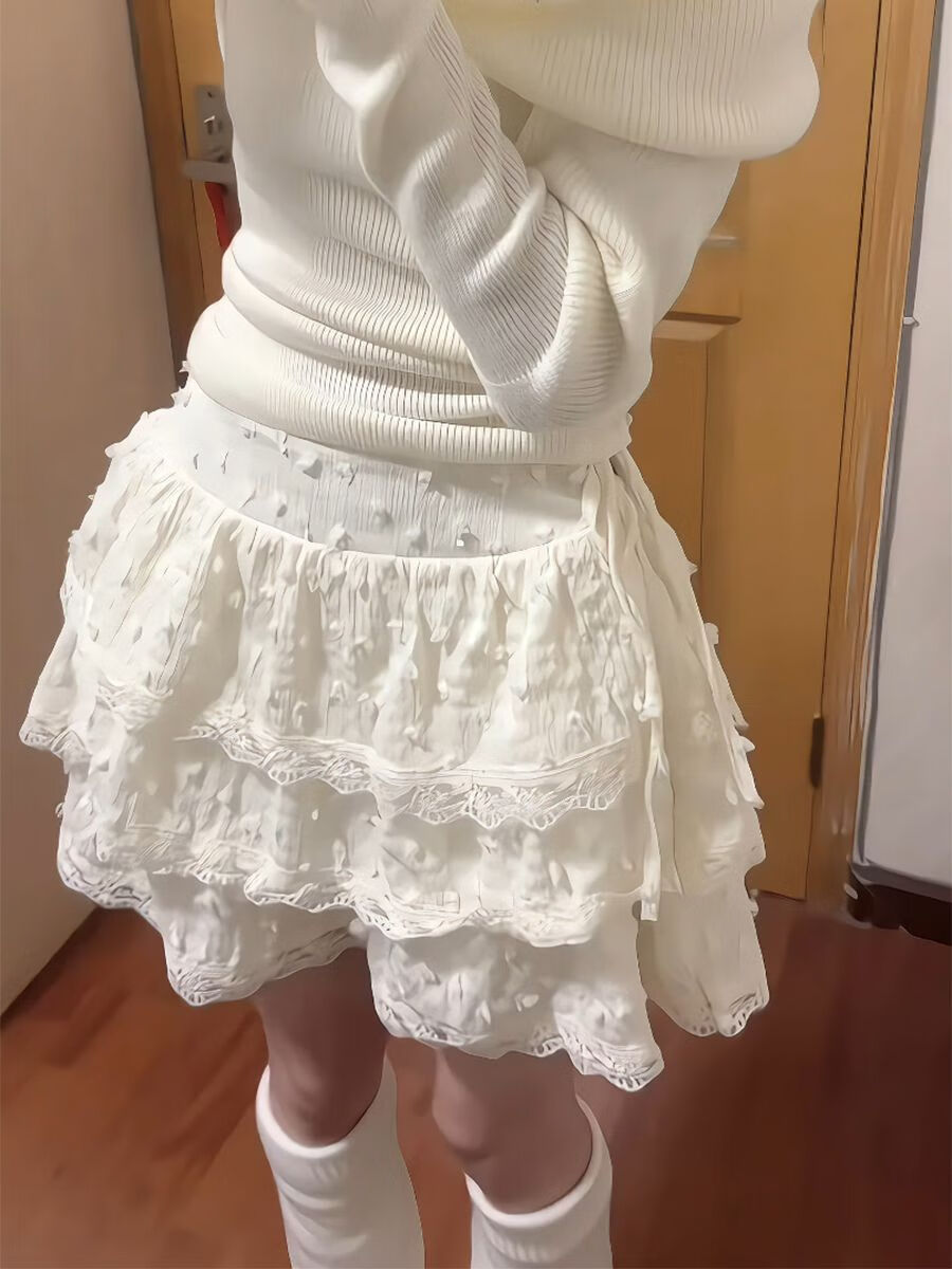 CS.LION辣妹纯欲蕾丝边蛋糕裙女夏季甜美高腰设计感小个子奶油蓬蓬半身裙 奶杏色 S 80-95斤