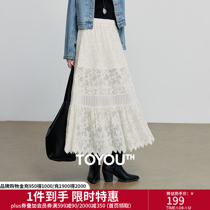 初语波嬉风蕾丝裙女2025秋季新款层次感拼接松紧腰A字半身裙 米杏色 S