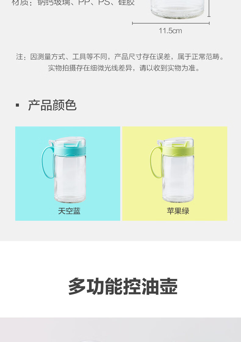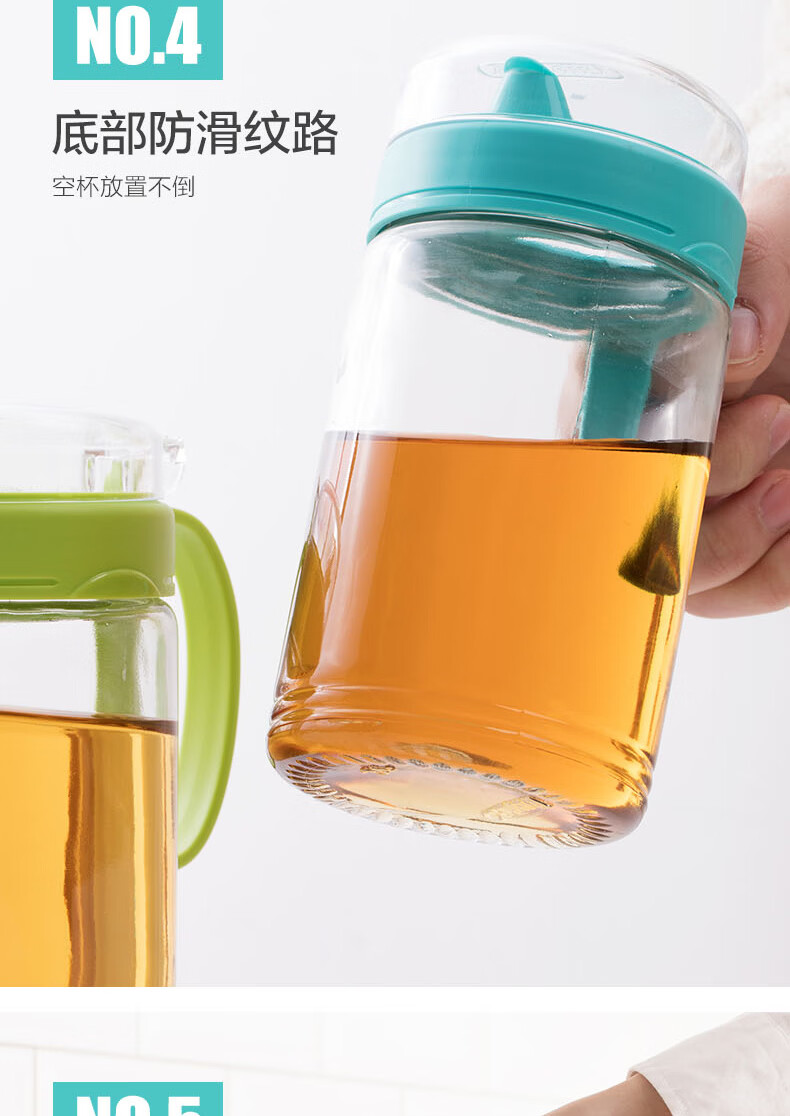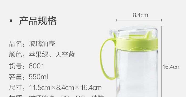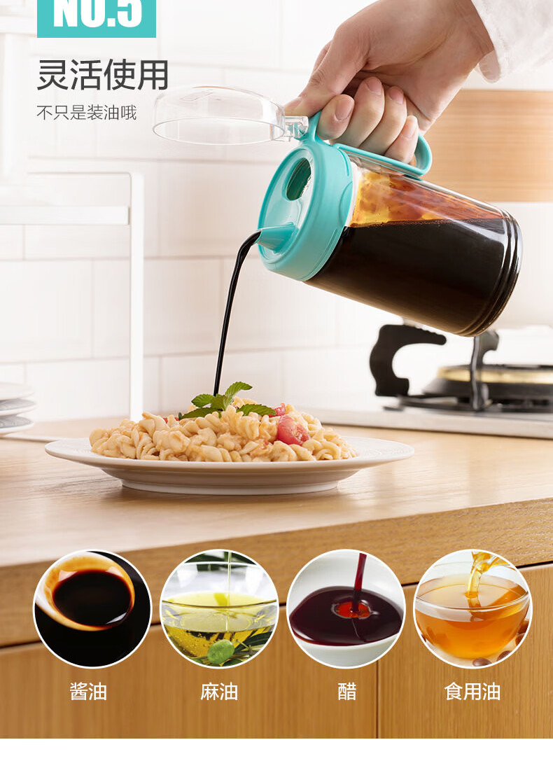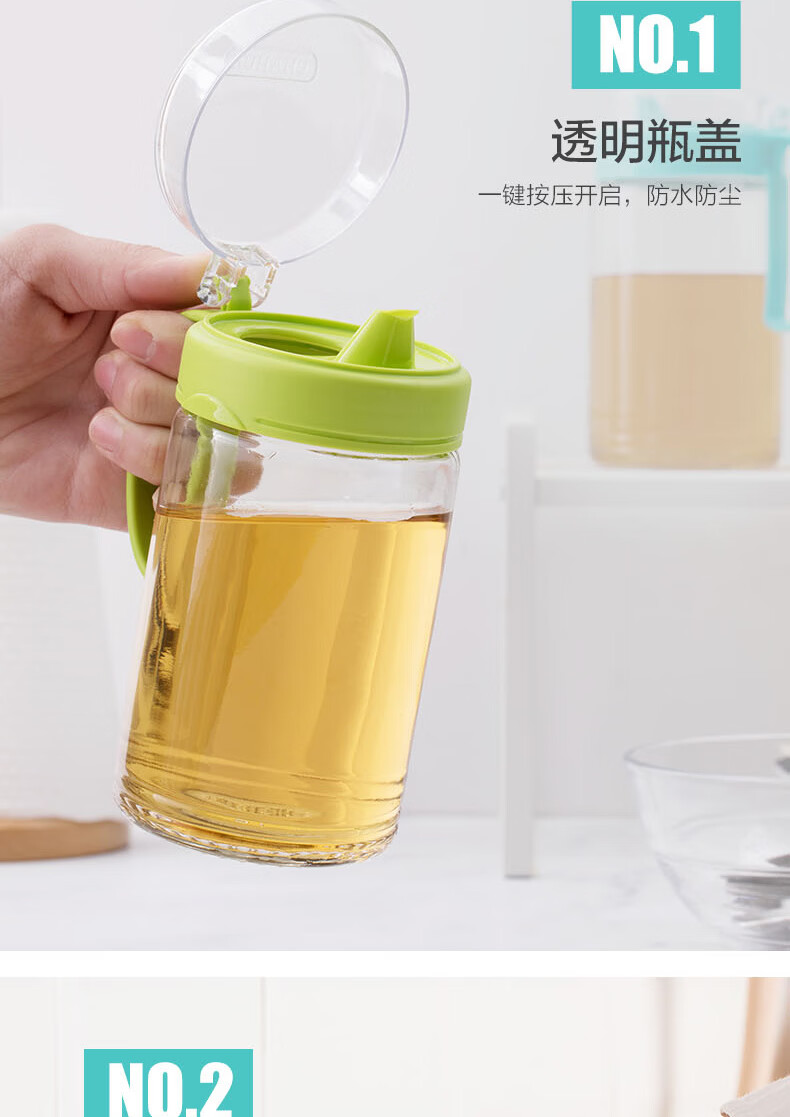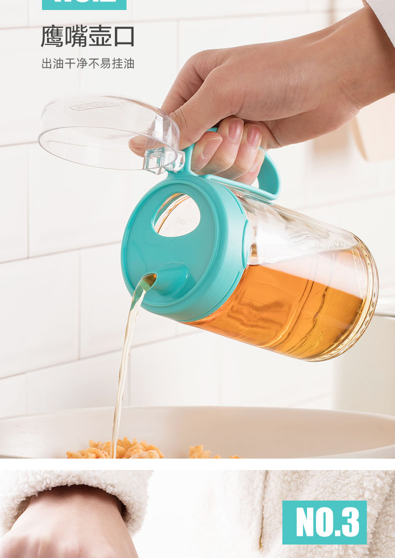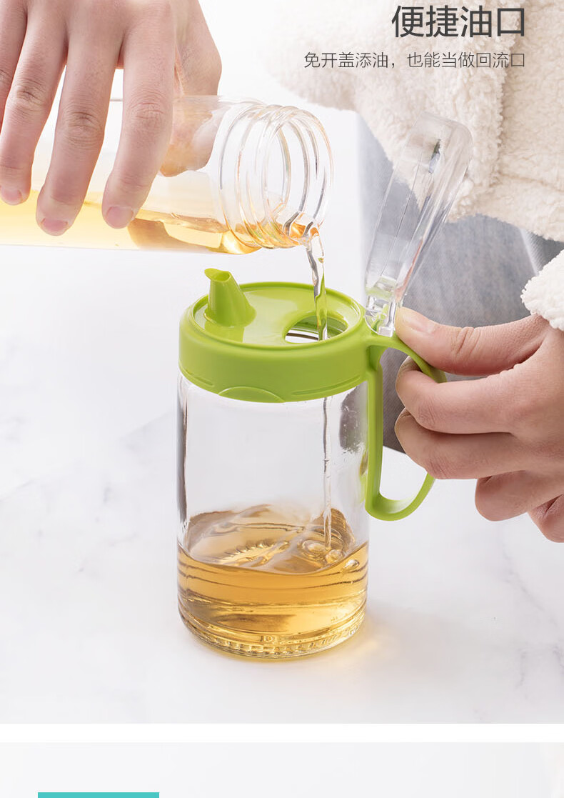 茶花(CHAHUA)油壶玻璃厨房欧式家用塑料油罐酱油瓶醋瓶醋壶装倒大号油瓶 绿色 倒油壶 550ml