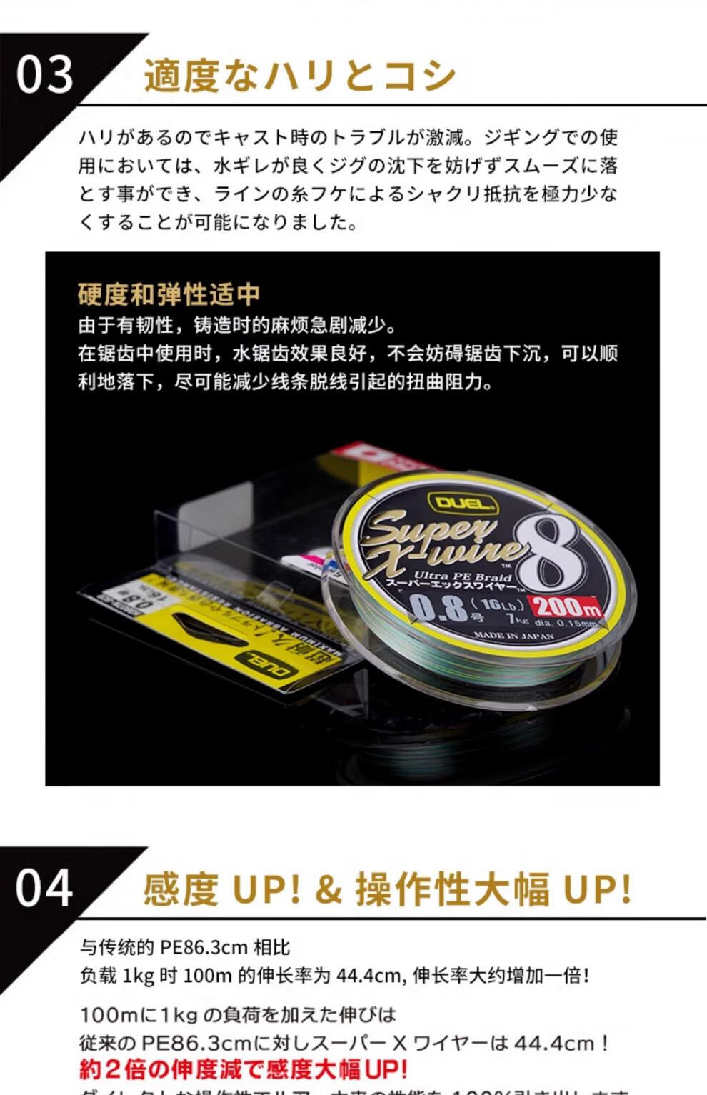 日本杜尔乐进口PE线DUEL杜尔乐8编PE线路亚线西子进出口渔具鱼线 TX8绿色200米 0.8号