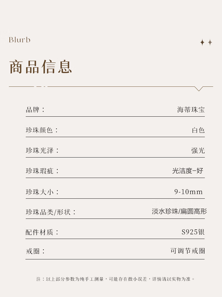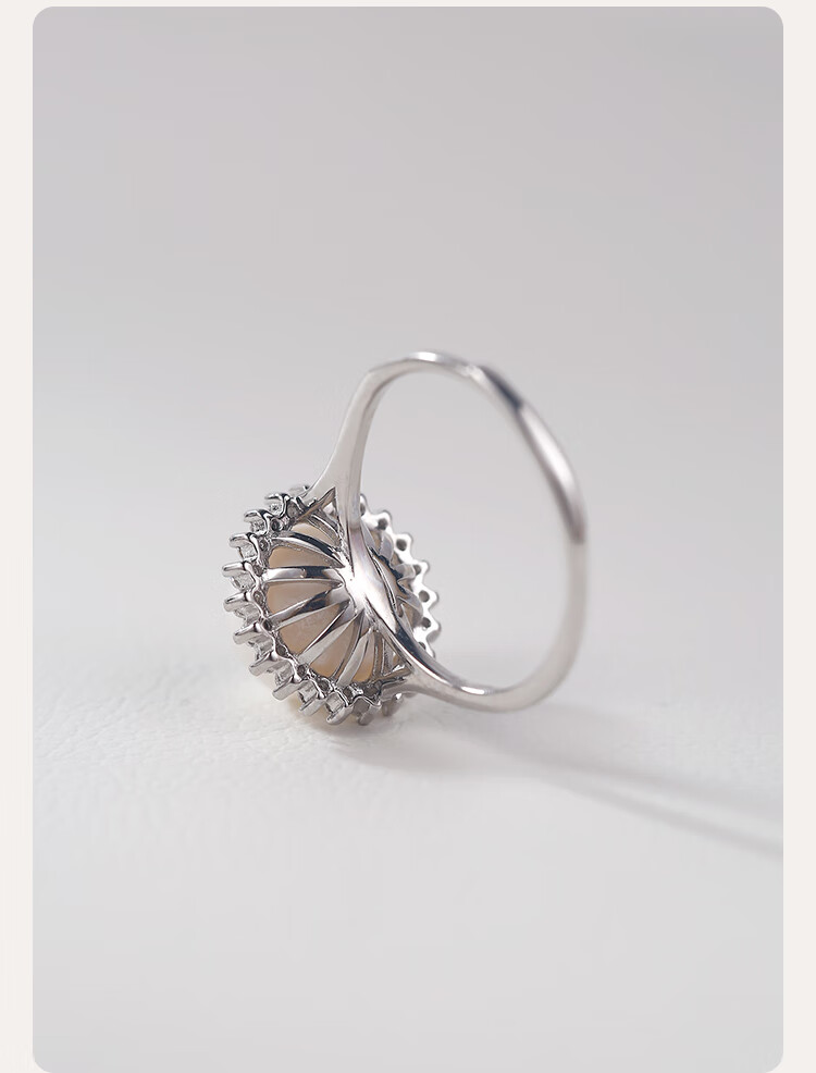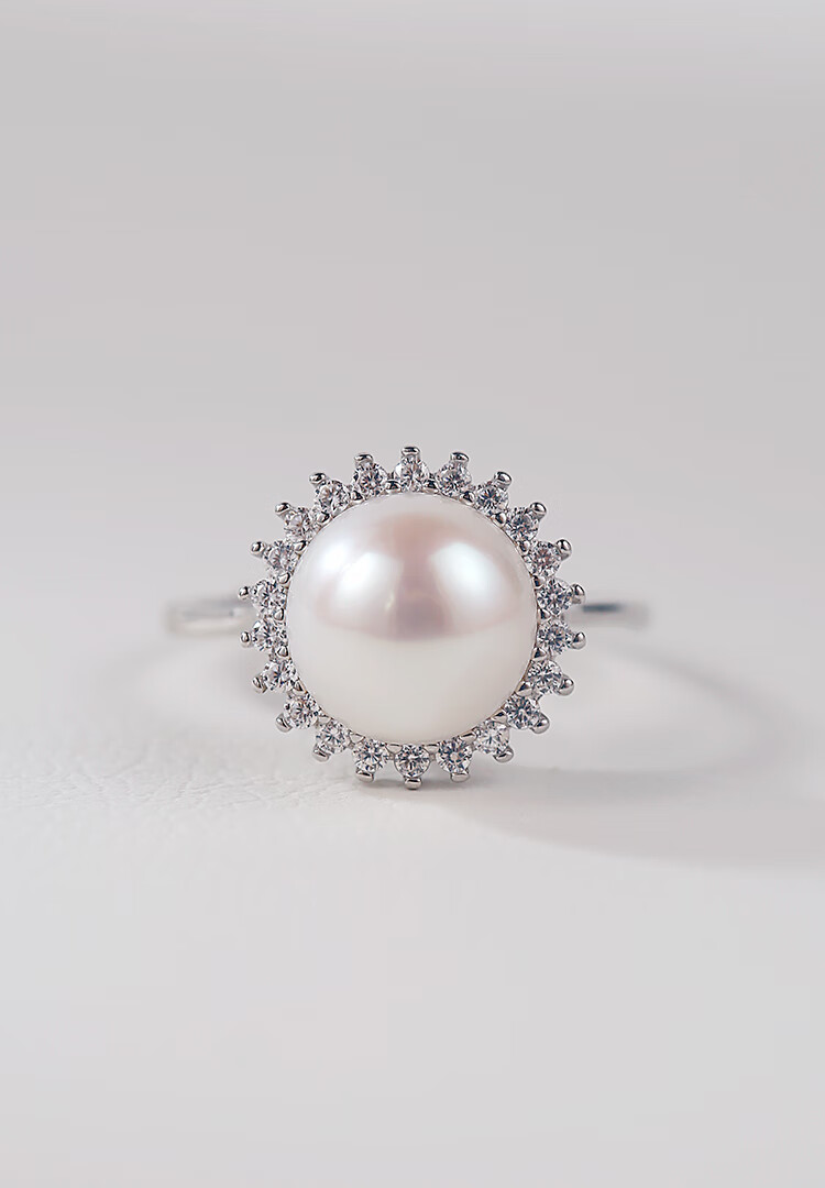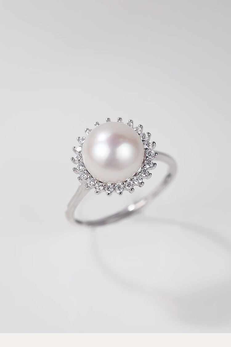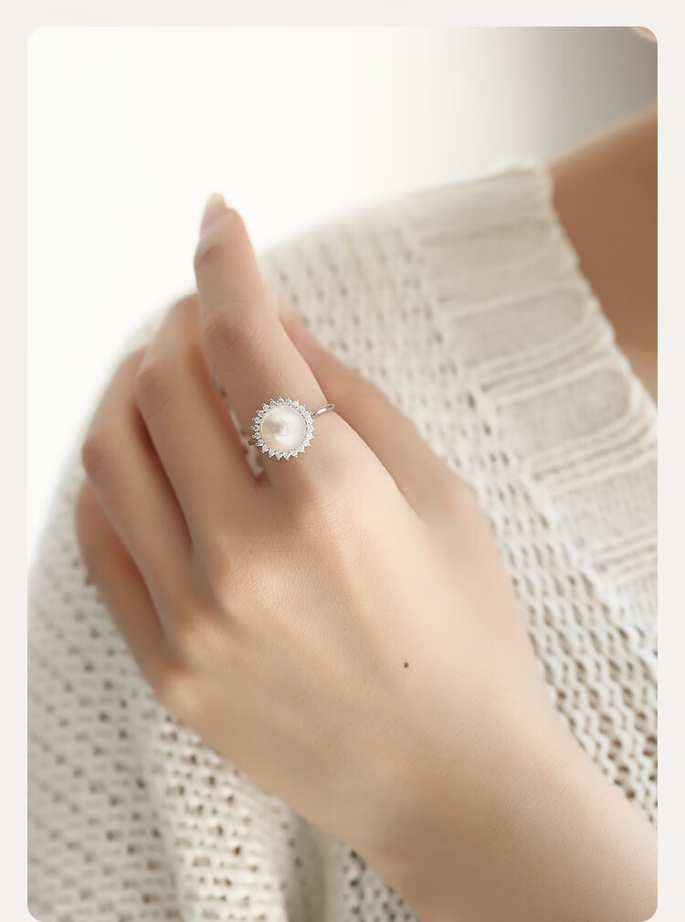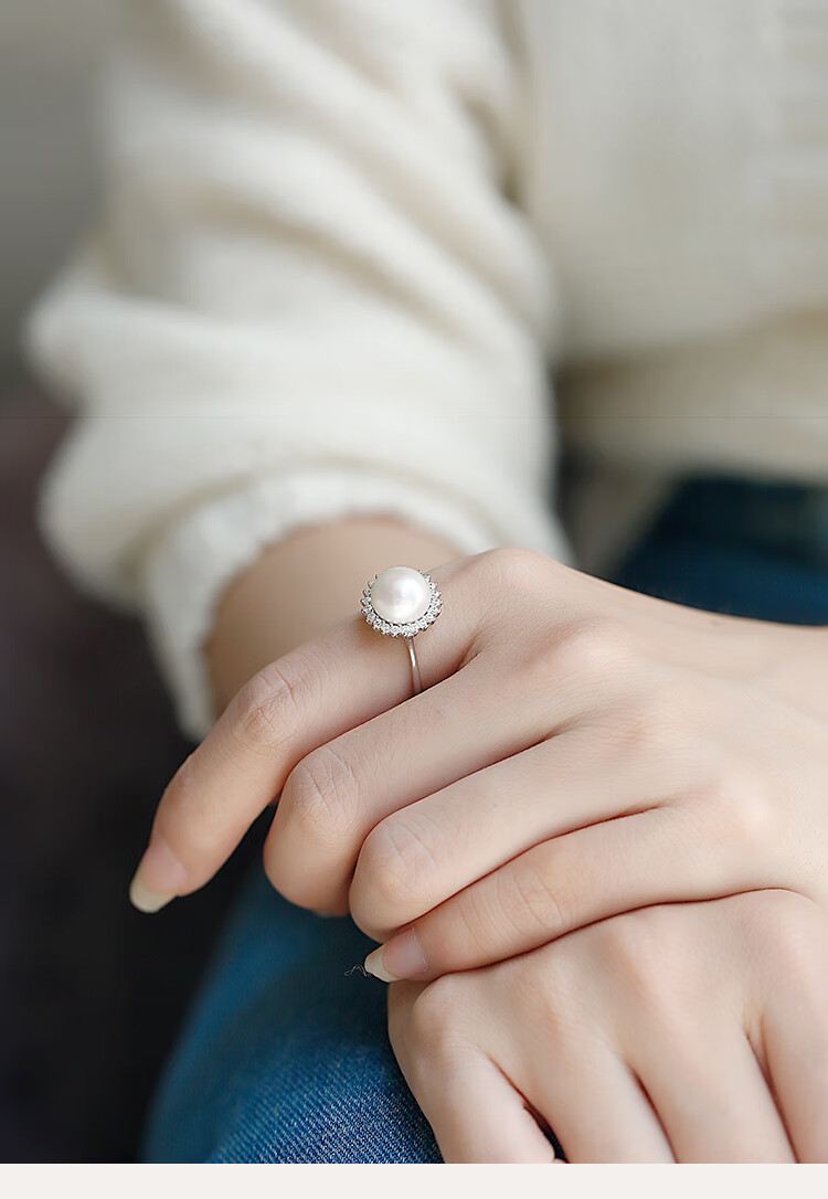 海蒂 9-10mm淡水珍珠戒指女S925银可调节送女友生日礼物附证书
